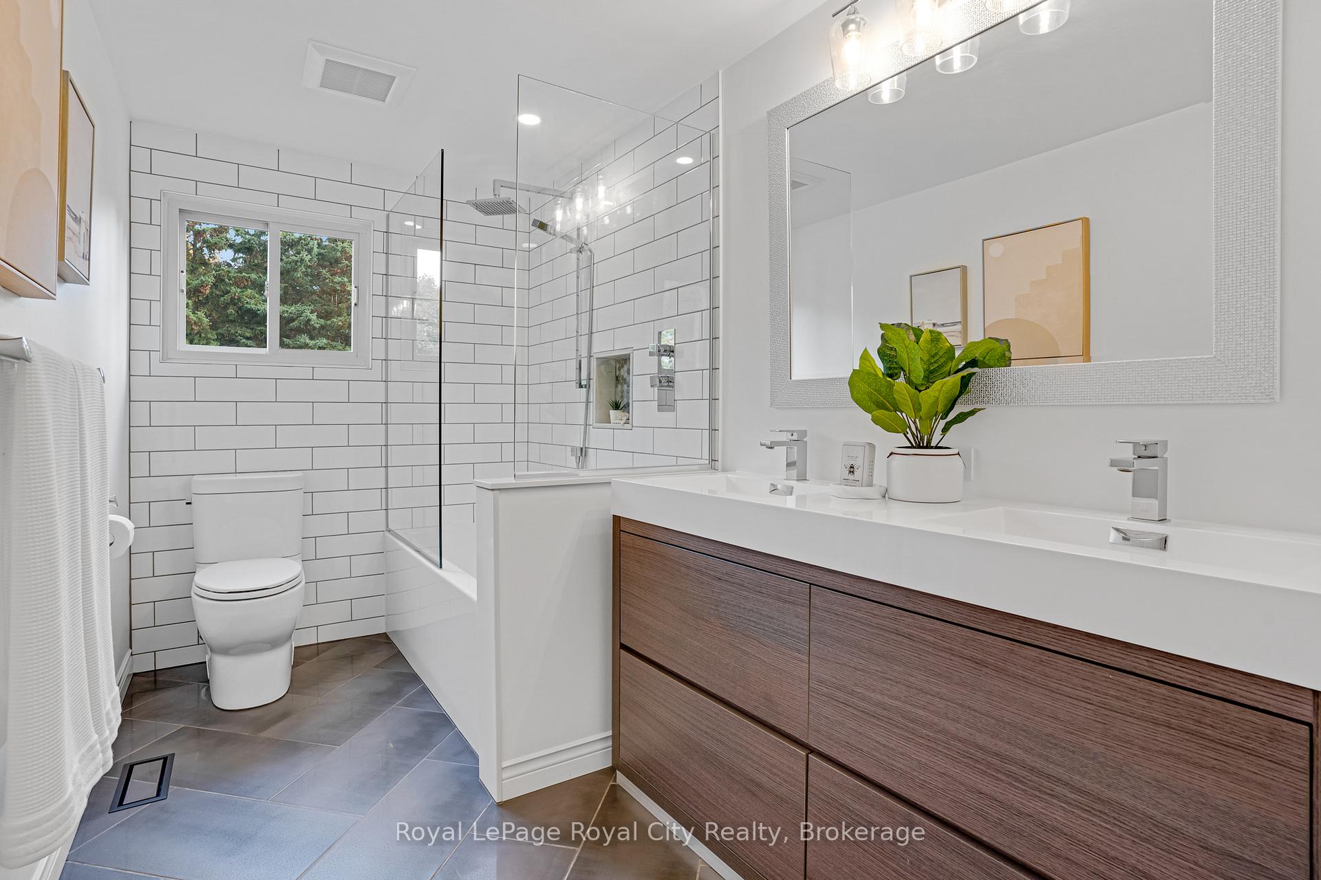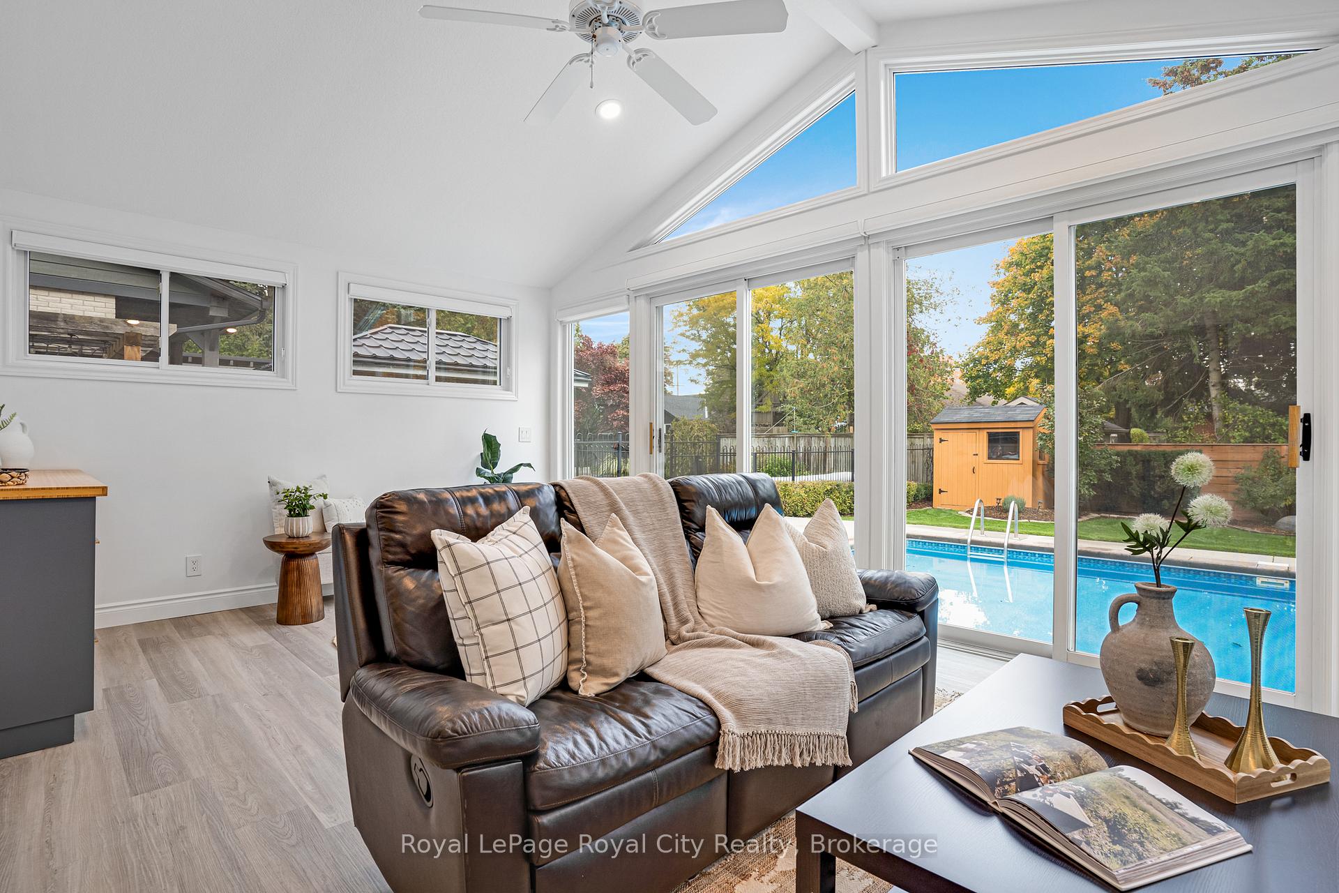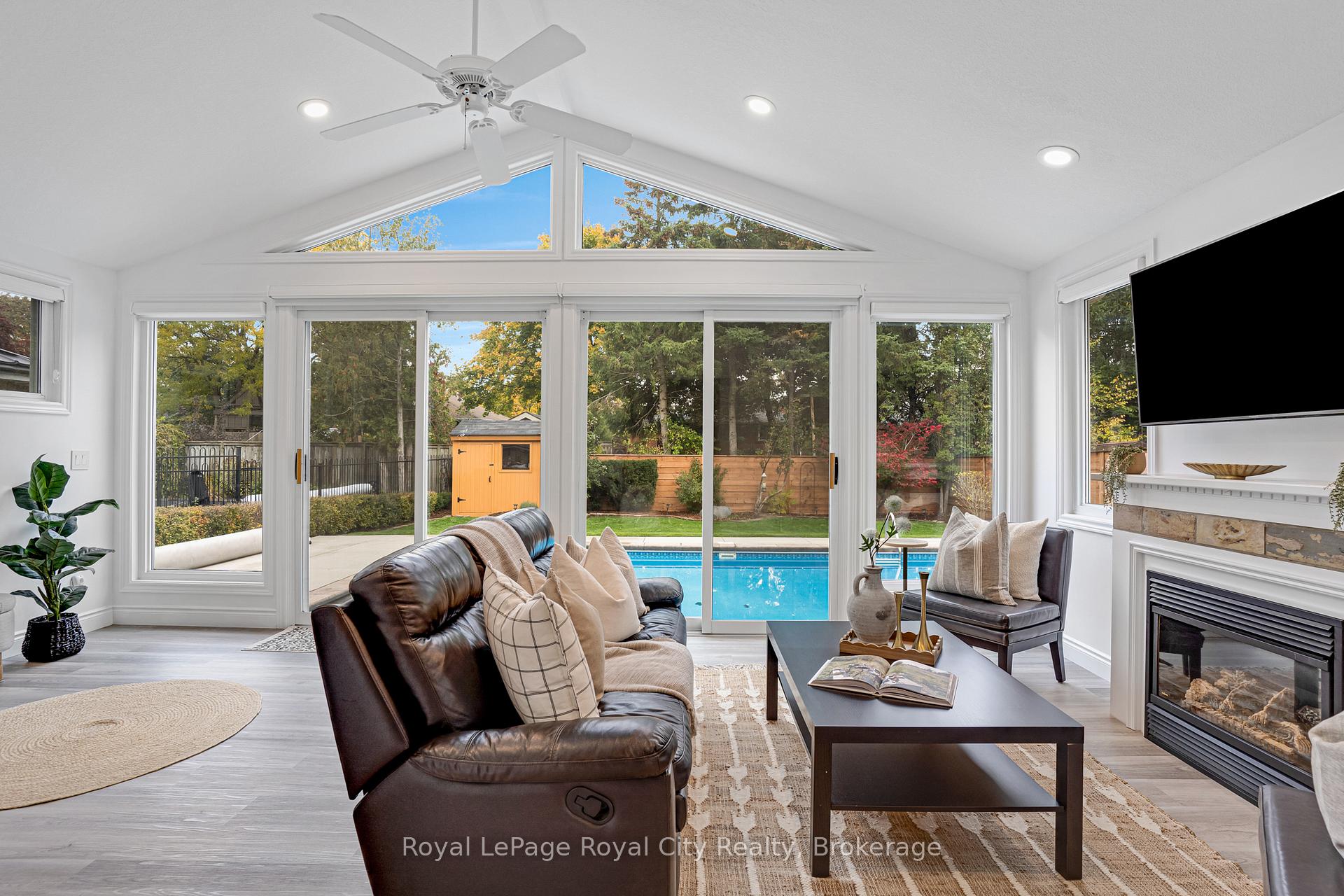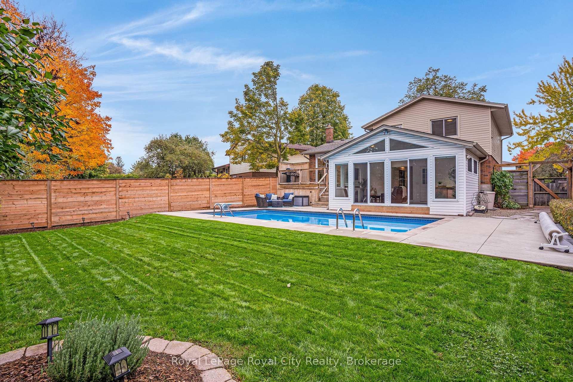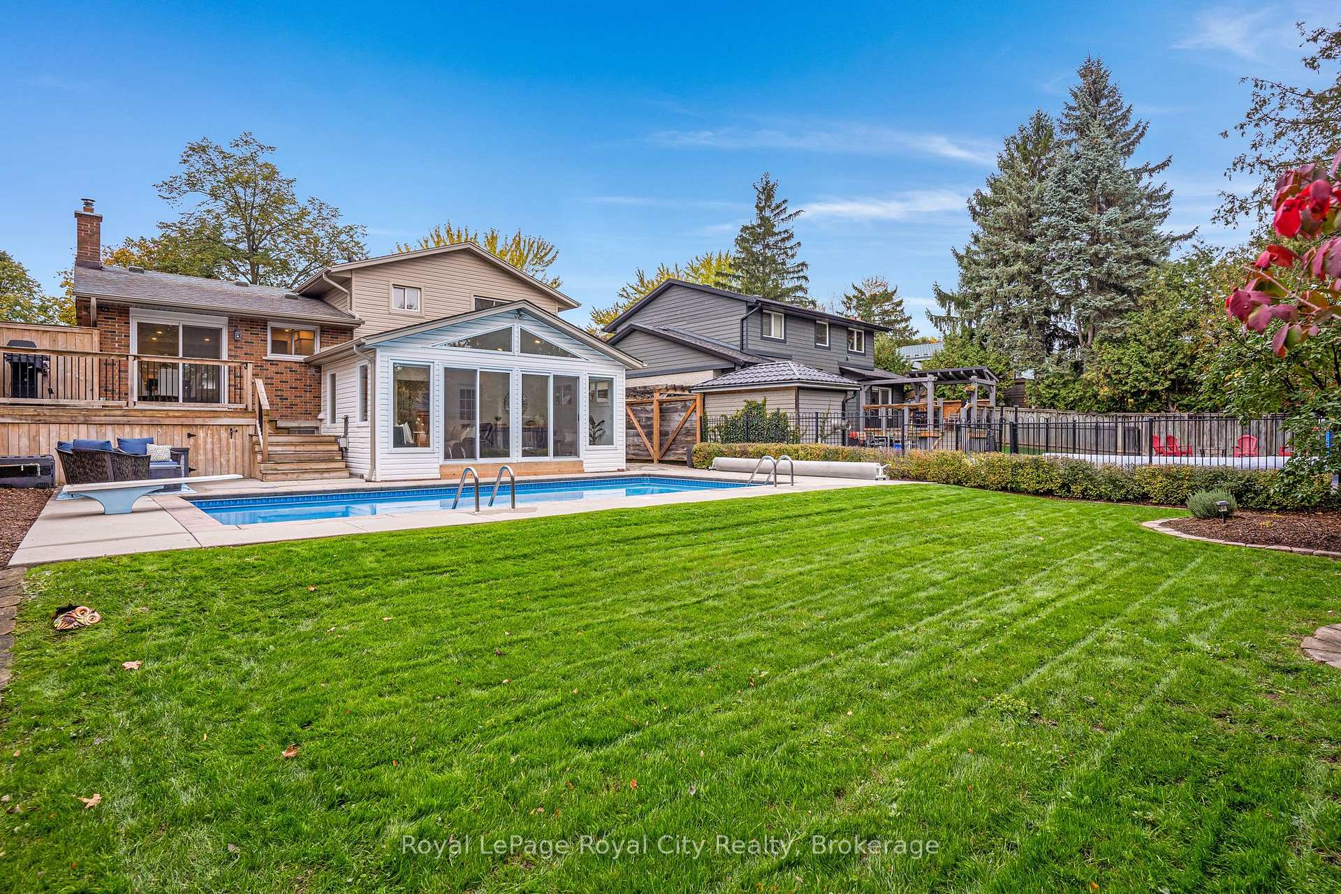 Tucked away at the back of Lambert Crescent, this tastefully updated sidesplit is move-in ready. From the moment you walk in the door the bright sunroom immediately catches your eye, offering vaulted ceilings, a cozy gas fireplace and heated floors, all with a view of the 16 x 32 heated inground pool. The main floor will continue to impress you with the open layout highlighted by a modern white kitchen, a dining space that opens to the deck with pool views, and a comfortable living area designed for relaxing or entertaining. The upper level includes 3 bedrooms and an updated 5-piece bathroom featuring a stunning tiled glass shower, double sinks, and in-floor heating. Built-in dresser drawers and shelving have been added to the primary bedroom, combining style with smart storage solutions. The finished basement provides yet another versatile living space that could serve as a family room, workout area, or home office. This level also showcases a fully renovated 3-piece bathroom. Whether it’s summer pool parties or quiet evenings by the fire, this home offers the perfect setting for making memories.