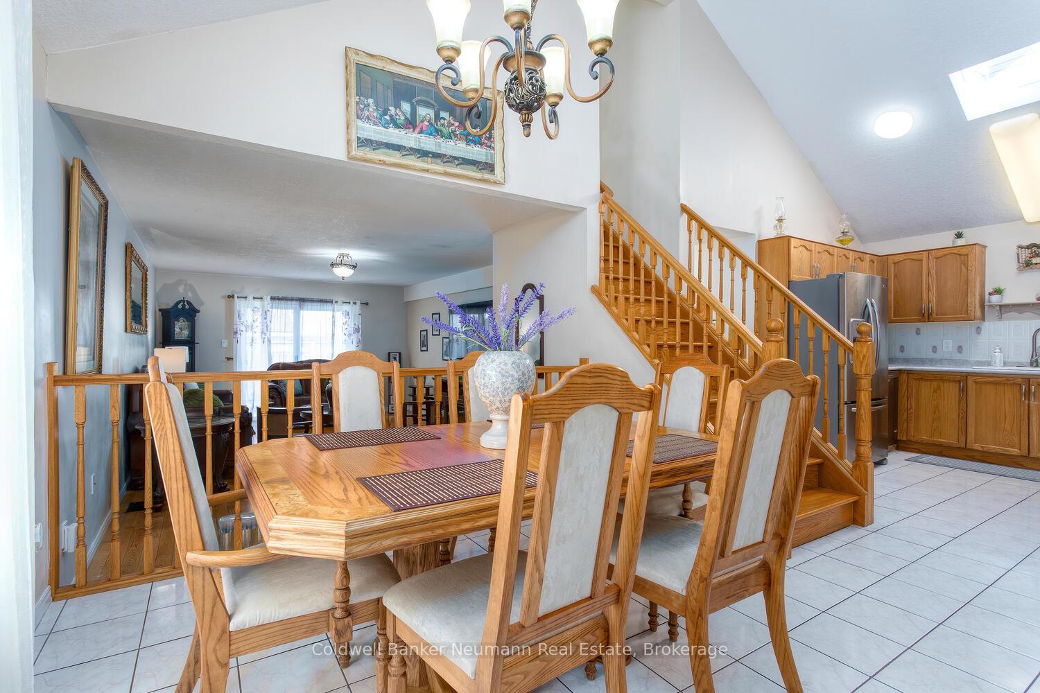 Welcome to this back-split home, nestled in the highly sought-after and mature West End of Guelph. With over 2000 square feet of thoughtfully designed living space, this home creates a truly inviting atmosphere. Perfect for families, multigenerational living, or those seeking a property with tremendous versatility, this home offers an abundance of features that are sure to impress. As you step into the bright and airy main floor, you’ll be immediately captivated by the hardwood and ceramic floors. A formal living room invites you to relax and unwind, while the large oak kitchen, offering extensive amount of cupboard space, provides the ideal setting for culinary creations. The adjoining dining area makes entertaining easy, and the spacious family room offers plenty of room for gatherings, boasting sliding glass patio doors to the maintained and fully fenced backyard. A full 3-piece bath and a sizable bedroom complete the main level, providing comfort and convenience for family or guests The upper floor features 3 additional bedrooms, including a master suite, offering ample closet space and a serene retreat. The large 4-pc bath is highlighted by a skylight that fills the space with natural light. The fully finished basement which is also accessible via a separate entrance through the garage offers high ceilings. Featuring a fifth bedroom and an expansive recreation room, it can easily be transformed into a home office, an entertainment hub, or even a private suite for extended family or guests. The basement’s layout also offers significant potential for those looking to create an income-generating space, with a completely separate entrance providing privacy and convenience. This home offers a newer roof and skylights (2015), garage door (2015), Samsung washer & dryer (2024), hot water tank rental(2024), and a garage door opener (2022). Conveniently located by schools, the Hanlon Expressway, Zehrs, Costco. Book your viewing today and you will not be disappointed!