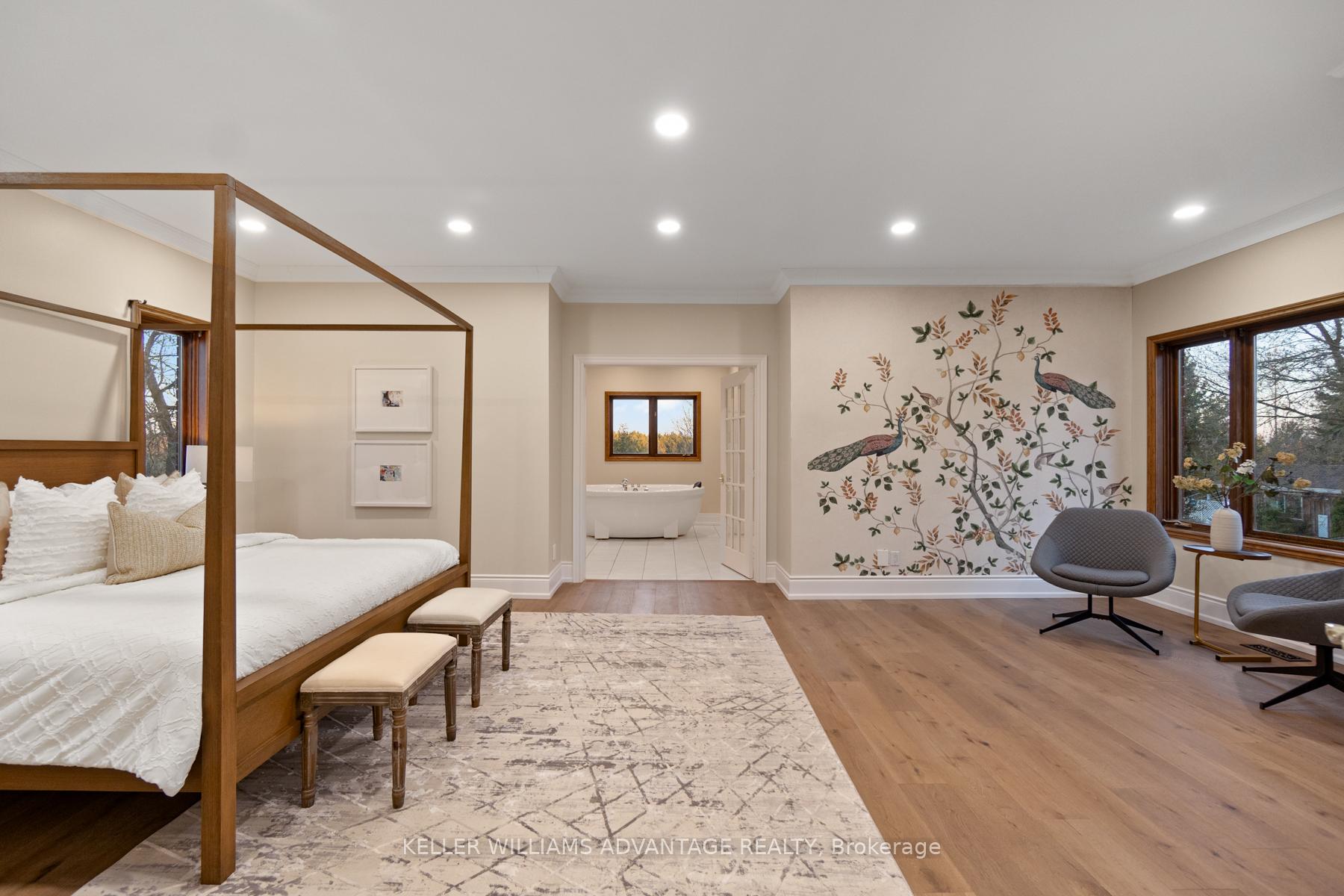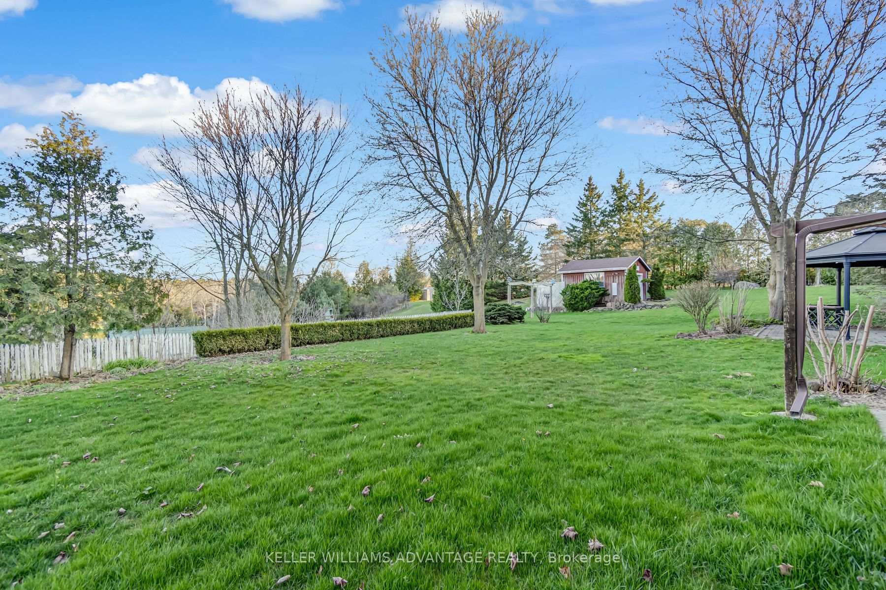Set on 7.5 acres of picturesque countryside, this impressive 7,325 sq ft estate combines timeless elegance with modern comfort. Spread across two expansive levels, the home features engineered oak hardwood floors, a stunning herringbone foyer, grand arched entryways, and freshly painted interiors throughout. Upgrades include new bathroom countertops, sinks, and stylish hardware finishes for a contemporary touch. With 9-foot ceilings on both levels, the open-concept layout offers exceptional versatility-featuring 6 bedrooms, 6 bathrooms, 2 full kitchens, and 2 laundry rooms. The fully finished walkout basement is its own self-contained living space with a private kitchen, laundry, and multiple separate entrances-ideal for rental income, multigenerational living, or an in-law suite. Designed for those who love indoor-outdoor living, the home offers multiple walkouts leading to a wraparound deck overlooking the grounds. The property also includes a 24′ x 40′ outbuilding (ideal for shop/garage space), three storage sheds, a charming gazebo, and a peaceful pond complete with a paddleboat. A perfect blend of sophistication and rural tranquillity-your private retreat awaits.