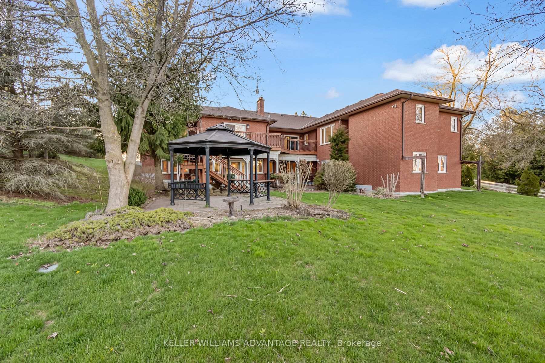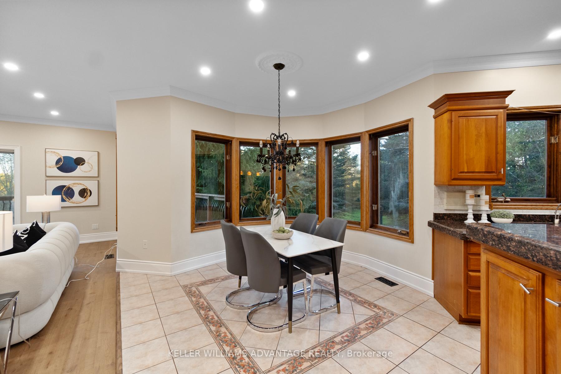 Nestled on 7.5 acres of stunning landscape, this spacious estate offers 7,325 sq ft of refined living across two levels. Designed for comfort and style, it features engineered oak hardwood floors, a striking herringbone-patterned foyer, grand arched doorways, and freshly painted interiors. Upgrades include new bathroom countertops, sinks, and sleek hardware finishes throughout. With 9-foot ceilings on both levels, this serene retreat offers 6 bedrooms, 6 bathrooms, 2 kitchens, and 2 laundry rooms in an open-concept layout. The fully finished walkout basement comes complete with its own kitchen, private laundry, and multiple separate entrances perfect for rental income or an in-law suite. Enjoy seamless indoor-outdoor living with a wraparound deck and multiple walkouts. The property also includes a 24×40 outbuilding, three sheds, a charming gazebo, and a large pond with a paddleboat. A rare blend of elegance and country charm your private escape awaits!