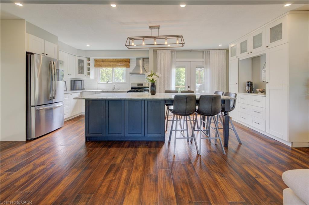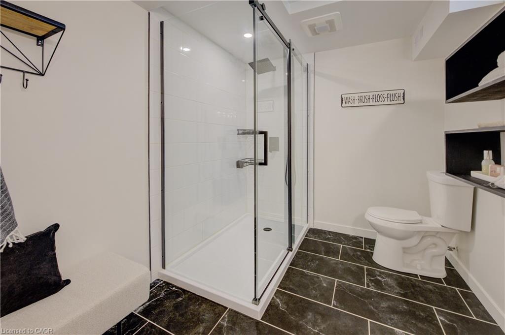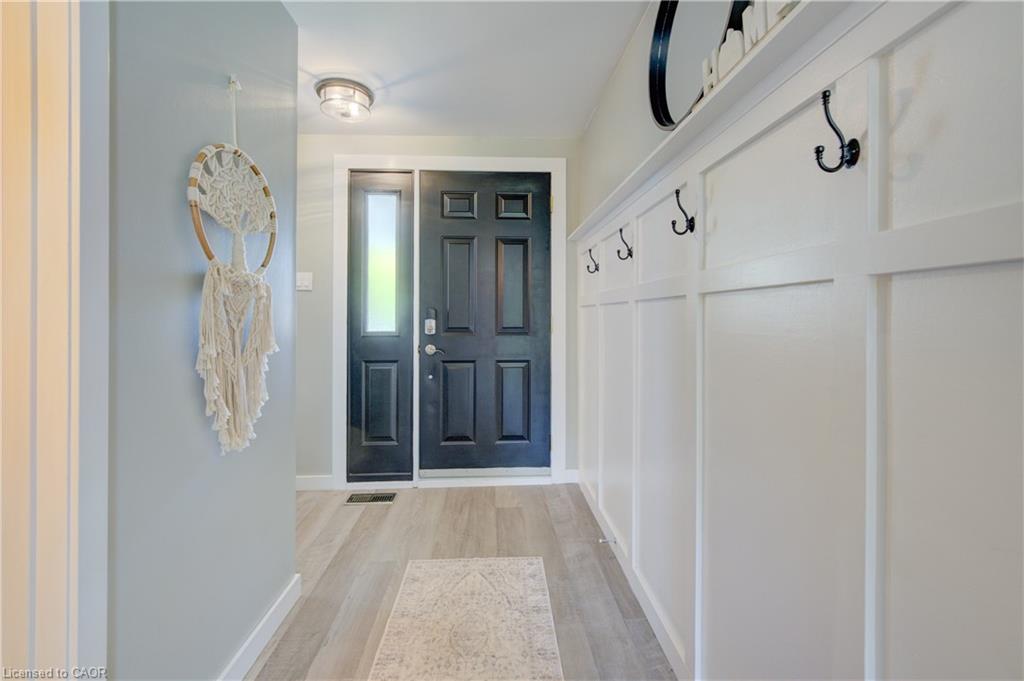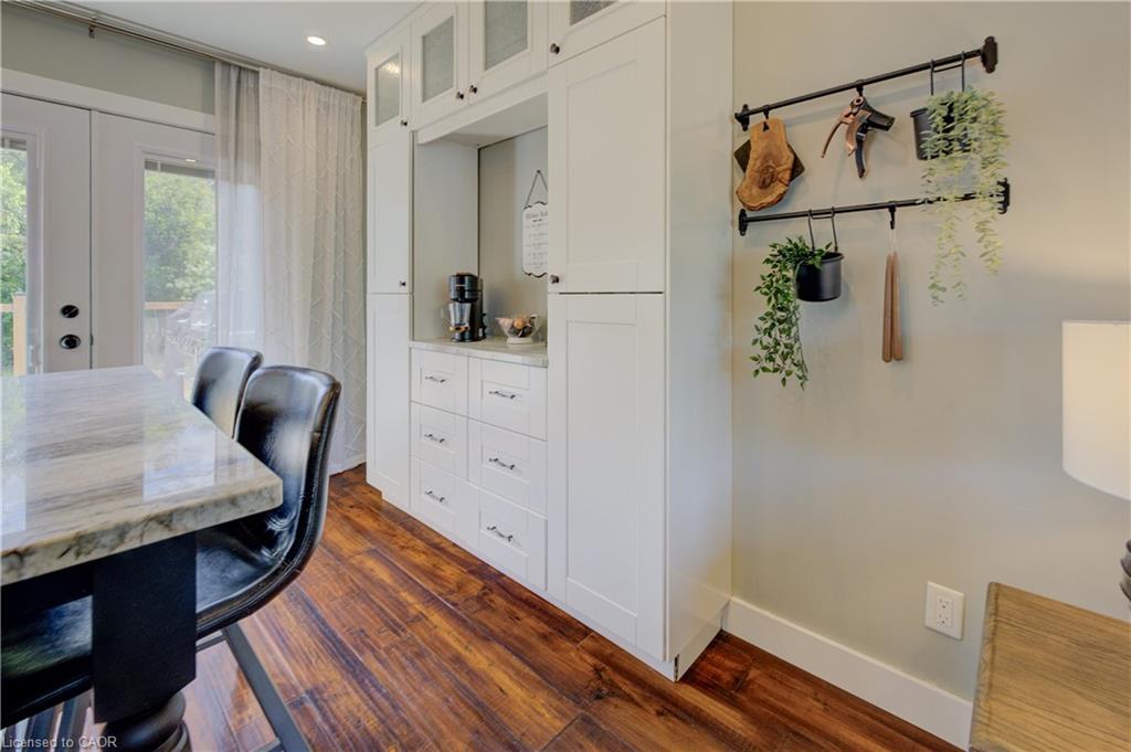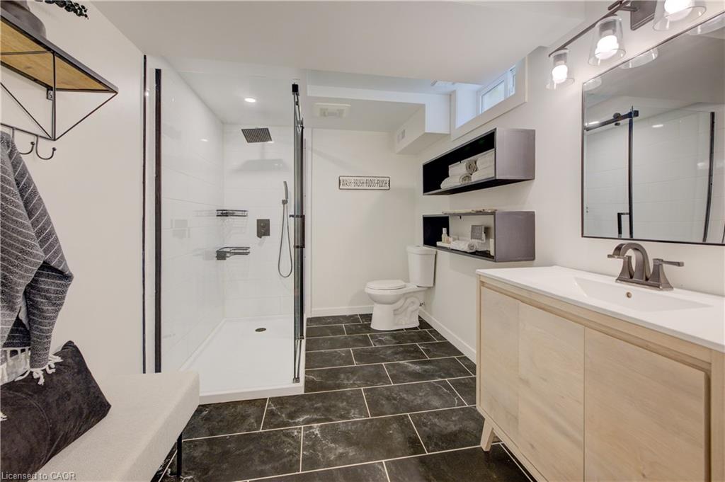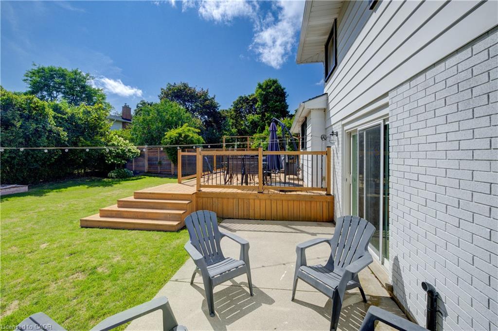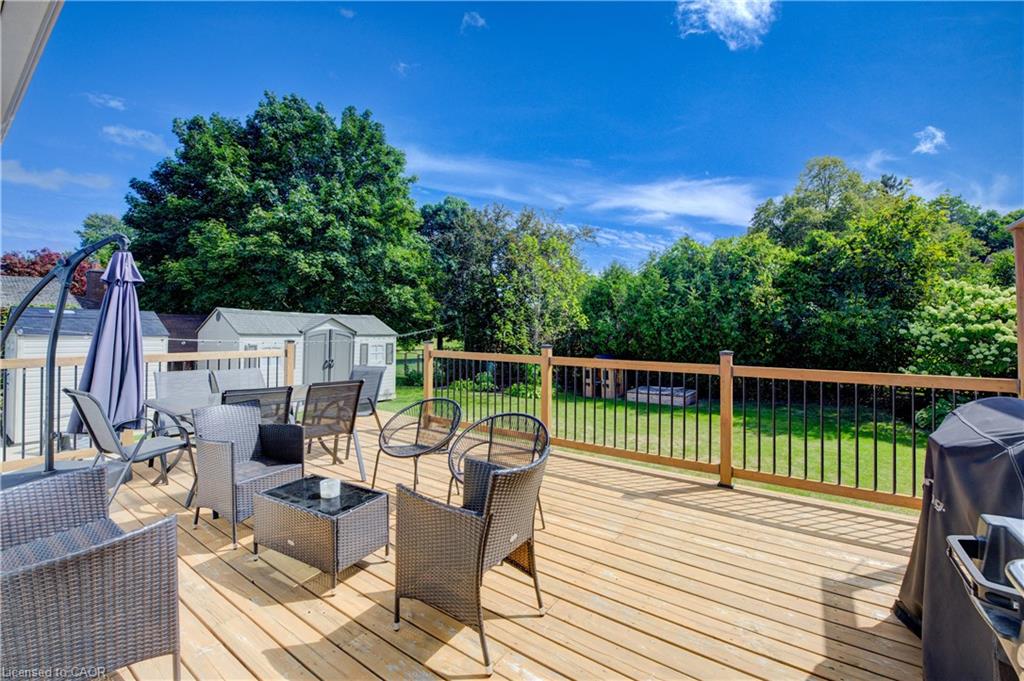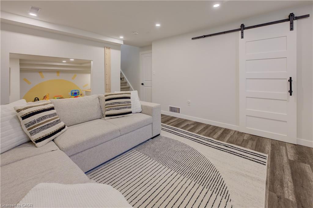 Stunning, Move-In Ready Sidesplit! This beautifully updated sidesplit combines stylish design with smart functionality, offering the perfect blend of comfort and convenience for modern family living. Step inside to find engineered hardwood flooring throughout the main living spaces and a bright, open-concept layout. The heart of the home is the stunning kitchen, featuring a 10-ft island with quartz counters, stainless steel appliances, white subway tile backsplash, a coffee bar, and a shiplap accent wall — all open to the spacious living area, perfect for entertaining or relaxing with family. Just a few steps down, the lower-level dining room boasts a gorgeous white brick surround wood-burning fireplace and direct access to the fully fenced backyard through patio doors. The yard includes two sheds, one with full electricity and lighting (Live Electric, 2021), making it ideal for a workshop or studio. Upstairs, you’ll find three generously sized bedrooms — all with ceiling fans and new pot lights (2025) — and a beautifully renovated 5-piece bathroom (2021) featuring a new double vanity, updated flooring, and fresh paint. One bedroom also includes custom wainscoting (2024) for a stylish touch. The fully finished basement (2022) adds versatile living space with a cozy electric fireplace, built-in entertainment cabinetry, and a stunning 3-piece bathroom with a glass shower and modern finishes. A finished crawl space offers a perfect kids’ playroom or quiet reading nook. Additional updates and features include: New carpet on stairs (2020), family-friendly layout with multiple living areas, full electrical update including new panel (Live Electric, 2022), exterior brick stained and trim/doors painted (180 Transformations, 2023), new roof (Panda Roofing, 2023), fresh sod in front and back yards (2021), and a spacious laundry room with sink, cabinetry, and ample storage. This home is move-in ready with all the major updates already completed — just unpack and enjoy!