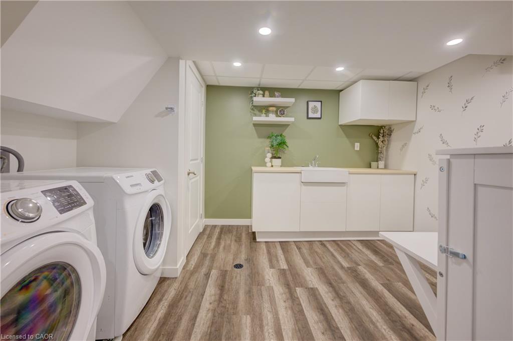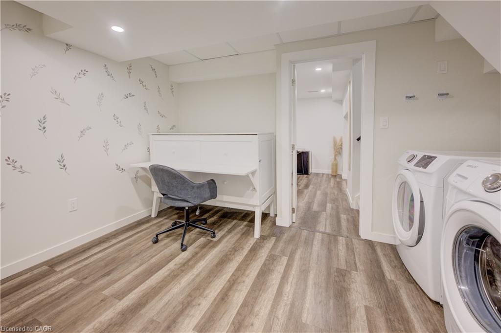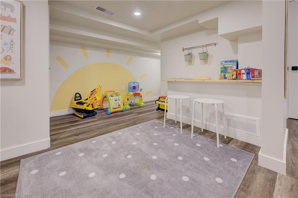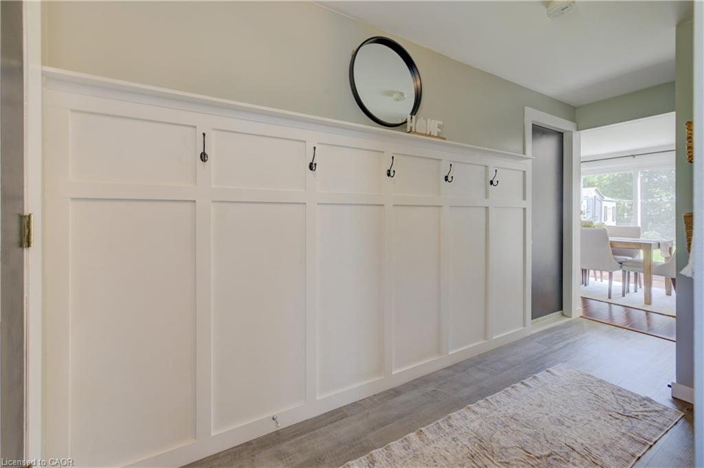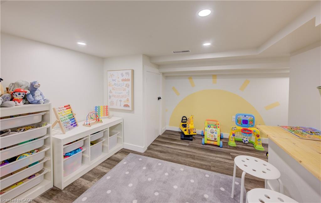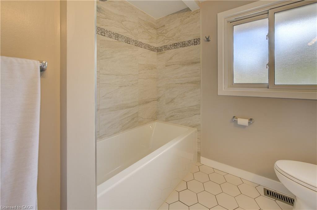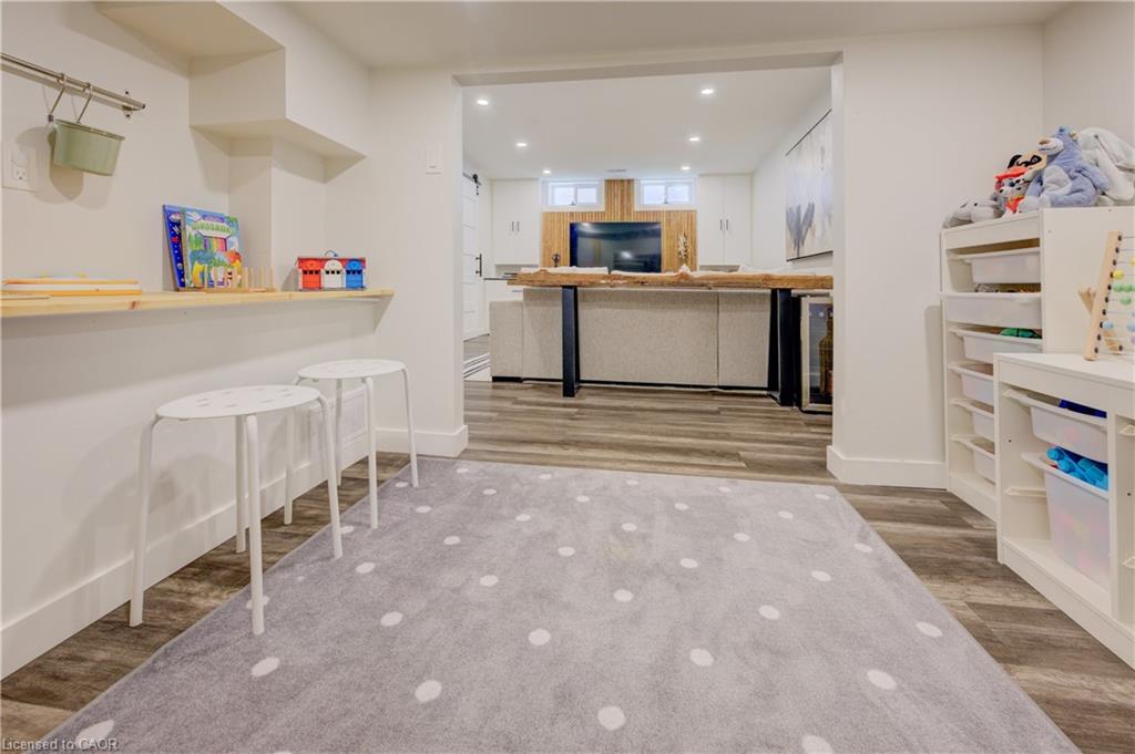 Stunning, Move-In Ready Sidesplit! This beautifully updated sidesplit combines stylish design with smart functionality, offering the perfect blend of comfort and convenience for modern family living. Step inside to find engineered hardwood flooring throughout the main living spaces and a bright, open-concept layout. The heart of the home is the stunning kitchen, featuring a 10-ft island with quartz counters, stainless steel appliances, white subway tile backsplash, a coffee bar, and a shiplap accent wall — all open to the spacious living area, perfect for entertaining or relaxing with family. Just a few steps down, the lower-level dining room boasts a gorgeous white brick surround wood-burning fireplace and direct access to the fully fenced backyard through patio doors. The yard includes two sheds, one with full electricity and lighting (Live Electric, 2021), making it ideal for a workshop or studio. Upstairs, you’ll find three generously sized bedrooms — all with ceiling fans and new pot lights (2025) — and a beautifully renovated 5-piece bathroom (2021) featuring a new double vanity, updated flooring, and fresh paint. One bedroom also includes custom wainscoting (2024) for a stylish touch. The fully finished basement (2022) adds versatile living space with a cozy electric fireplace, built-in entertainment cabinetry, and a stunning 3-piece bathroom with a glass shower and modern finishes. A finished crawl space offers a perfect kids’ playroom or quiet reading nook. Additional updates and features include: New carpet on stairs (2020), family-friendly layout with multiple living areas, full electrical update including new panel (Live Electric, 2022), exterior brick stained and trim/doors painted (180 Transformations, 2023), new roof (Panda Roofing, 2023), fresh sod in front and back yards (2021), and a spacious laundry room with sink, cabinetry, and ample storage. This home is move-in ready with all the major updates already completed — just unpack and enjoy!