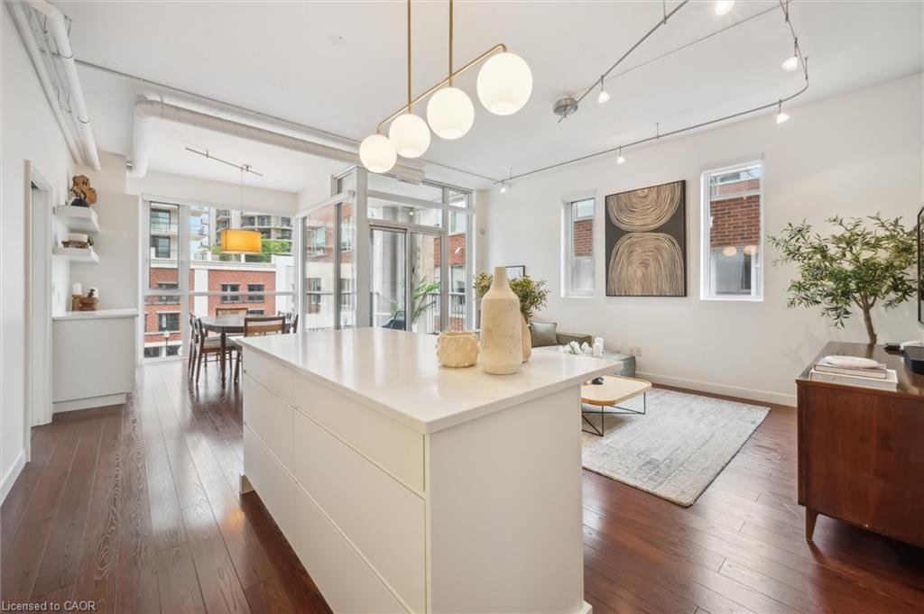 Welcome home to the Bauer Lofts in vibrant Uptown Waterloo. This executive unit is offered to those looking for an upscale and convenient lifestyle in the region’s trendiest neighbourhood. With 1274 sq. ft. of living space, this 2 bedrooms, 2 bathrooms corner unit offers a smart floor plan with an abundance of light through two walls of floor-to-ceiling windows. The newly renovated kitchen offers full-sized appliances, soft close cabinetry, large island and Quarts countertops and backsplash. You will find new laundry machines in-unit and plenty of closet storage.