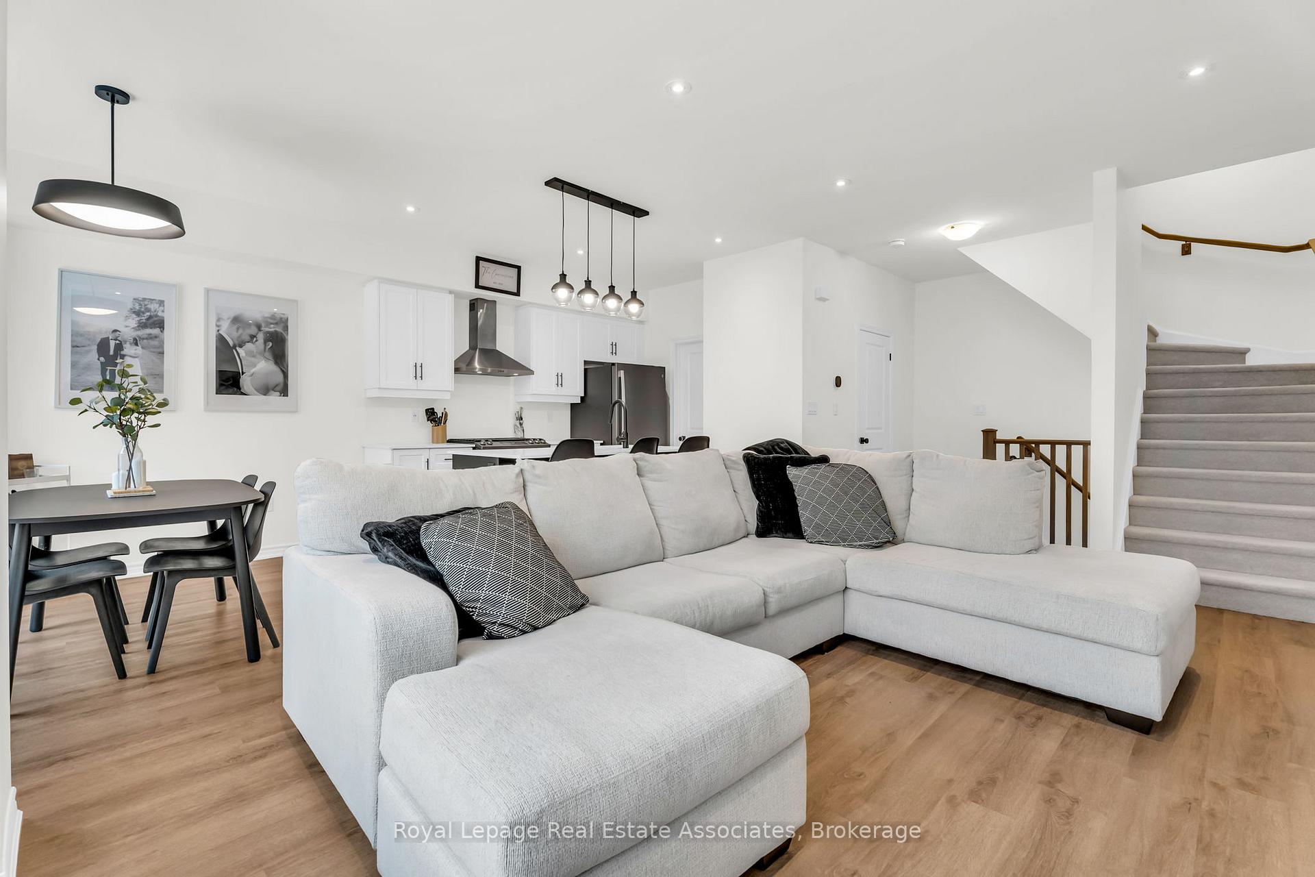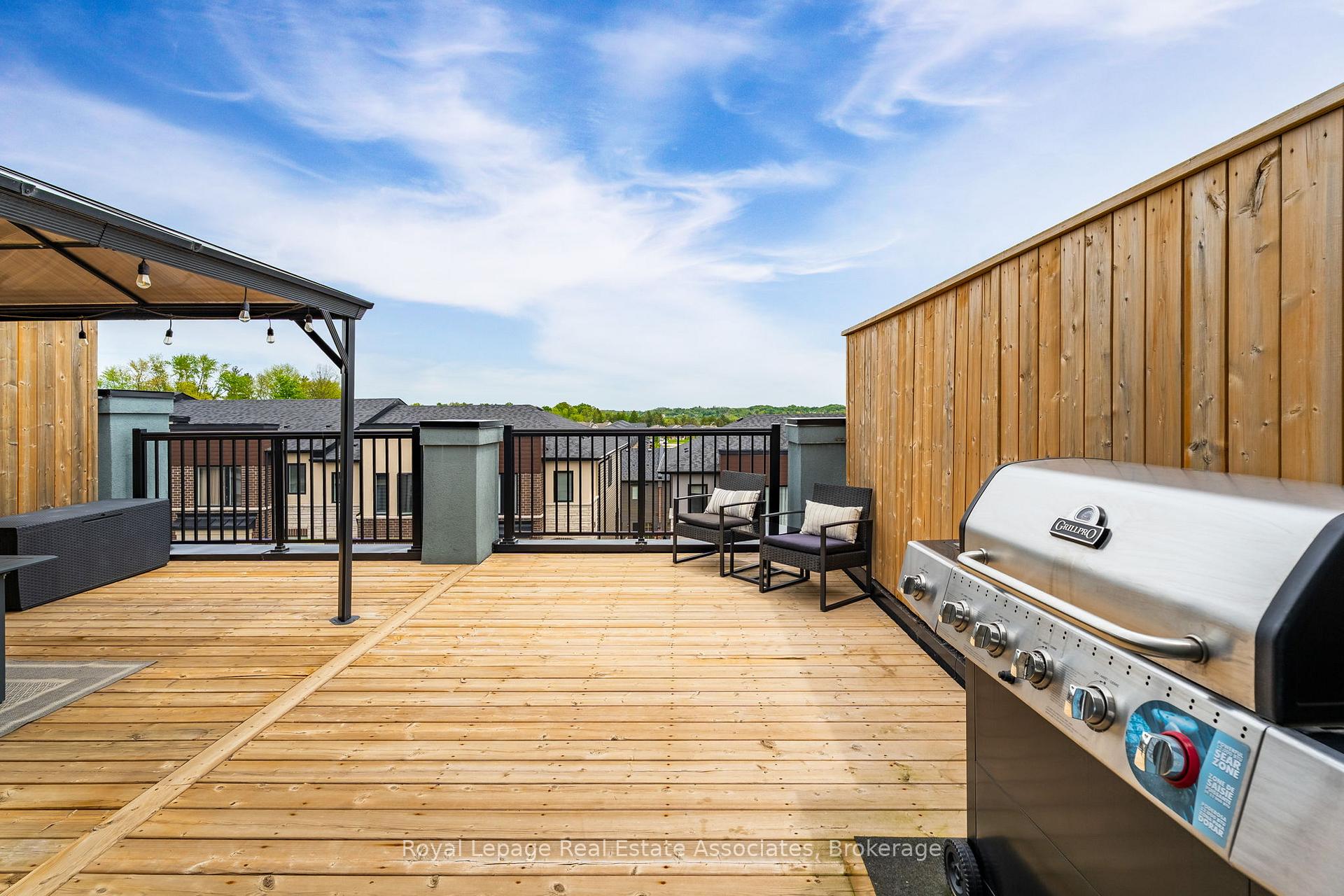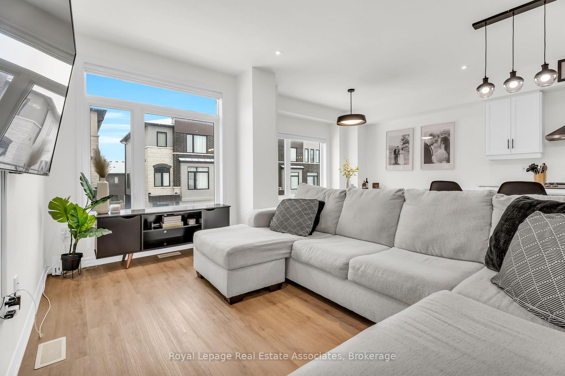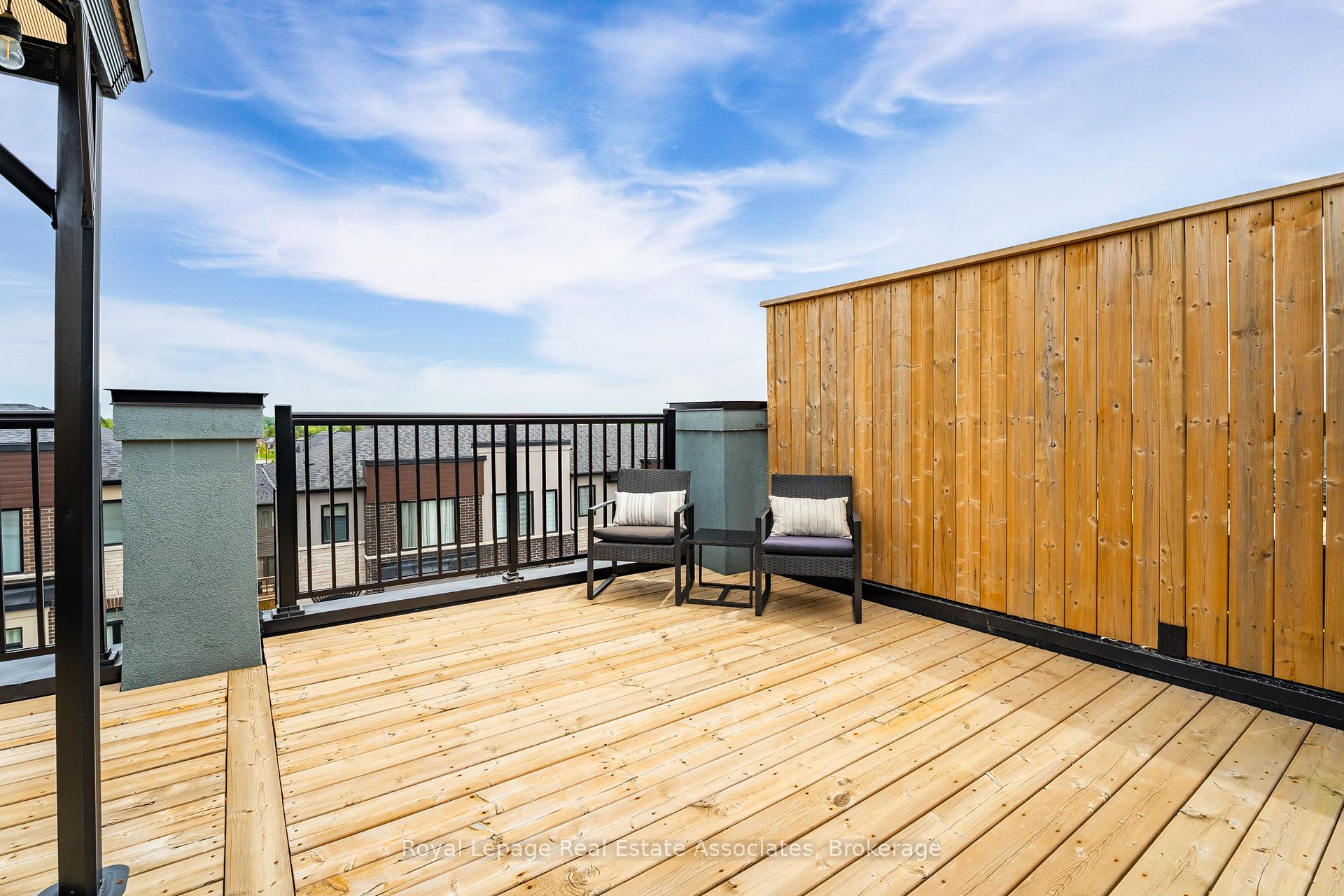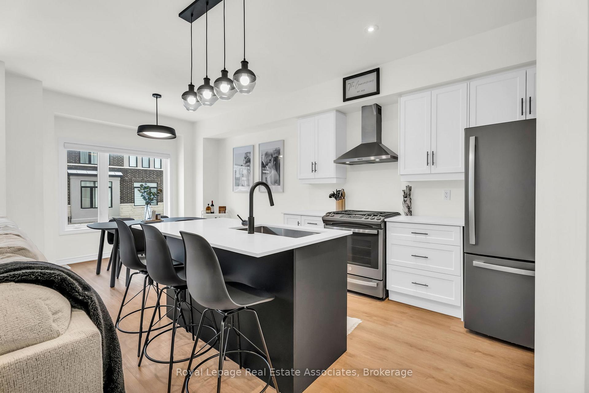 This beautifully upgraded 2+1 bedroom, 3-storey townhome offers a perfect blend of modern finishes and smart design. Enjoy upgraded light fixtures, sleek hardware, and durable luxury vinyl flooring. The open-concept layout is bright and spacious, ideal for entertaining or relaxing at home. The standout feature? A private rooftop terrace perfect for summer lounging, entertaining guests, or enjoying your morning coffee with a view. With parking for 2 vehicles, convenience is top of mind. Located just steps from a park and less than 10 minutes to Highway 401 and the countless amenities of Hespeler Road, this location is unbeatable for commuters and those seeking easy access to shopping, dining, and everyday essentials. This move-in-ready home offers low-maintenance living in a thriving Cambridge neighbourhood. Don’t miss your chance to own in this sought-after community!