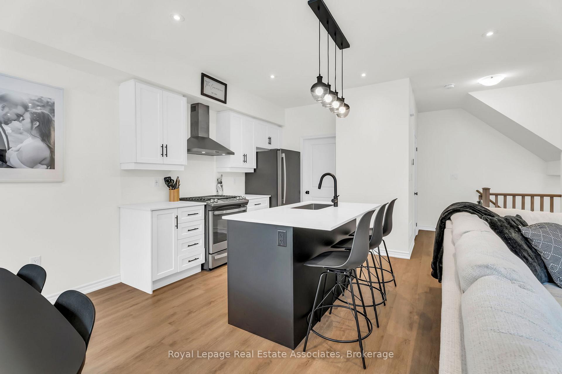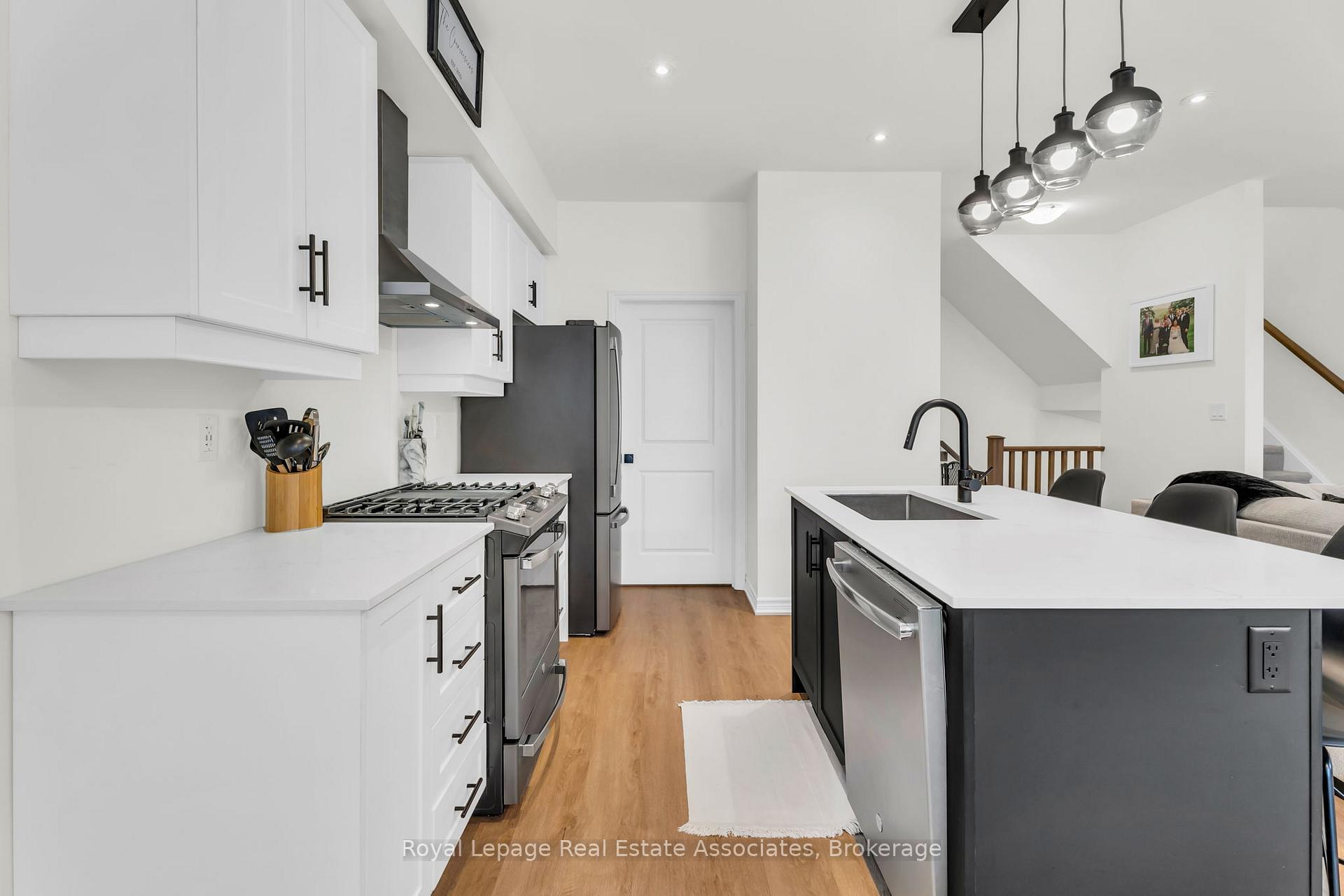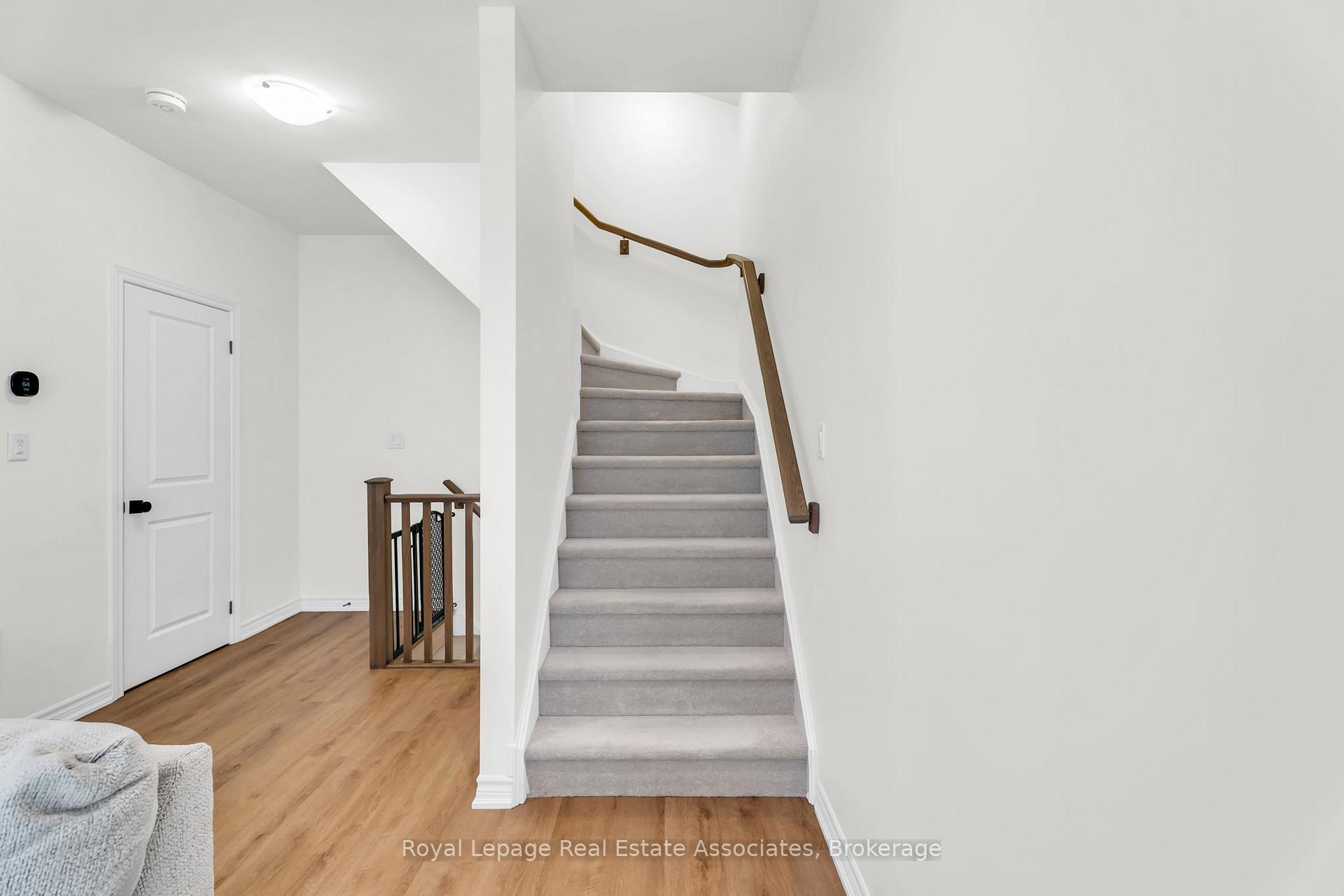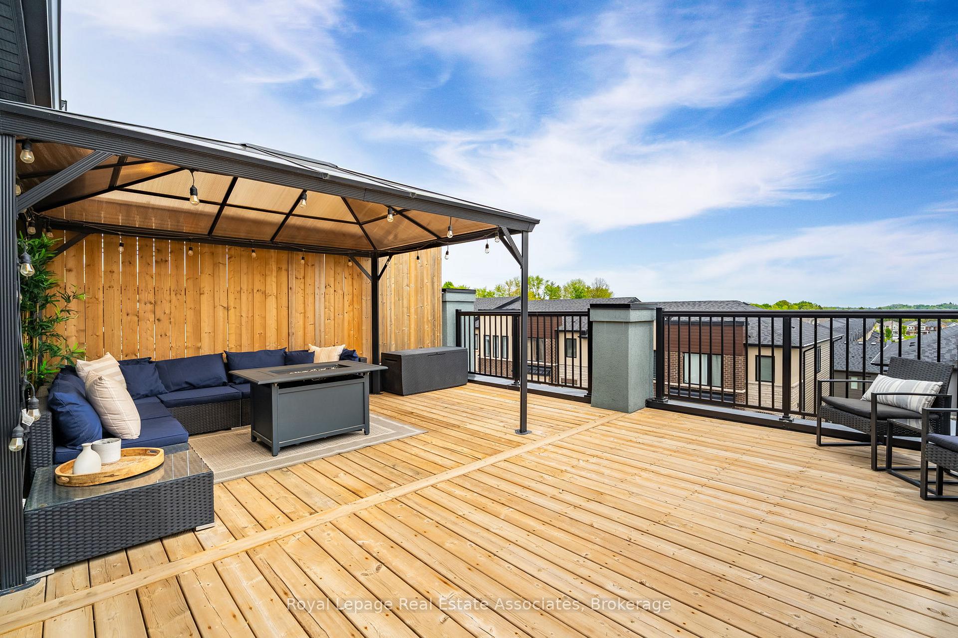 This beautifully upgraded 2+1 bedroom, 3-storey townhome offers a perfect blend of modern finishes and smart design. Enjoy upgraded light fixtures, sleek hardware, and durable luxury vinyl flooring. The open-concept layout is bright and spacious, ideal for entertaining or relaxing at home. The standout feature? A private rooftop terrace perfect for summer lounging, entertaining guests, or enjoying your morning coffee with a view. With parking for 2 vehicles, convenience is top of mind. Located just steps from a park and less than 10 minutes to Highway 401 and the countless amenities of Hespeler Road, this location is unbeatable for commuters and those seeking easy access to shopping, dining, and everyday essentials. This move-in-ready home offers low-maintenance living in a thriving Cambridge neighbourhood. Don’t miss your chance to own in this sought-after community!