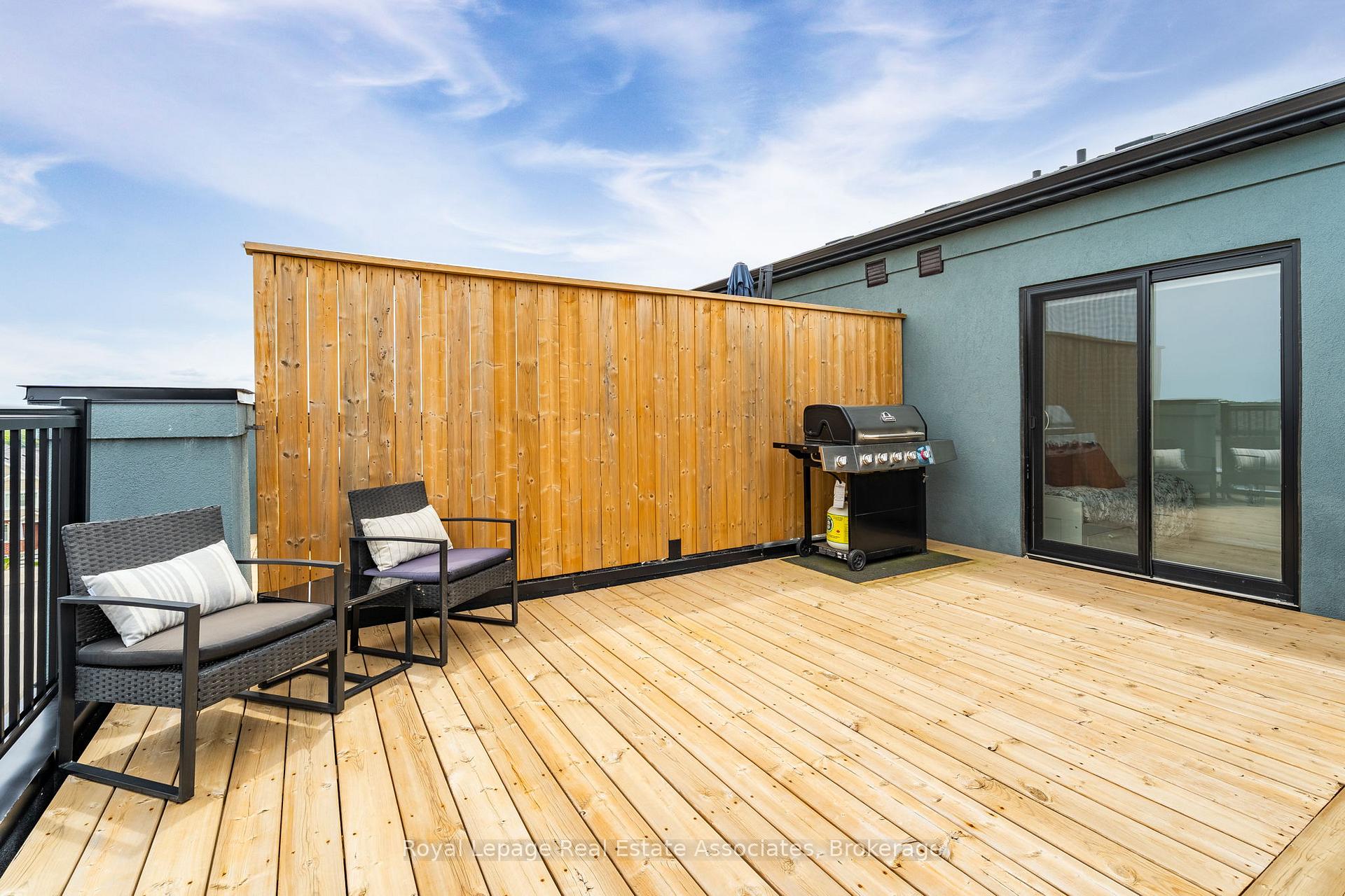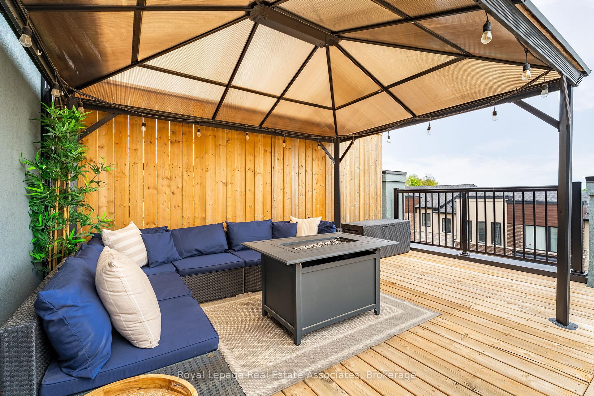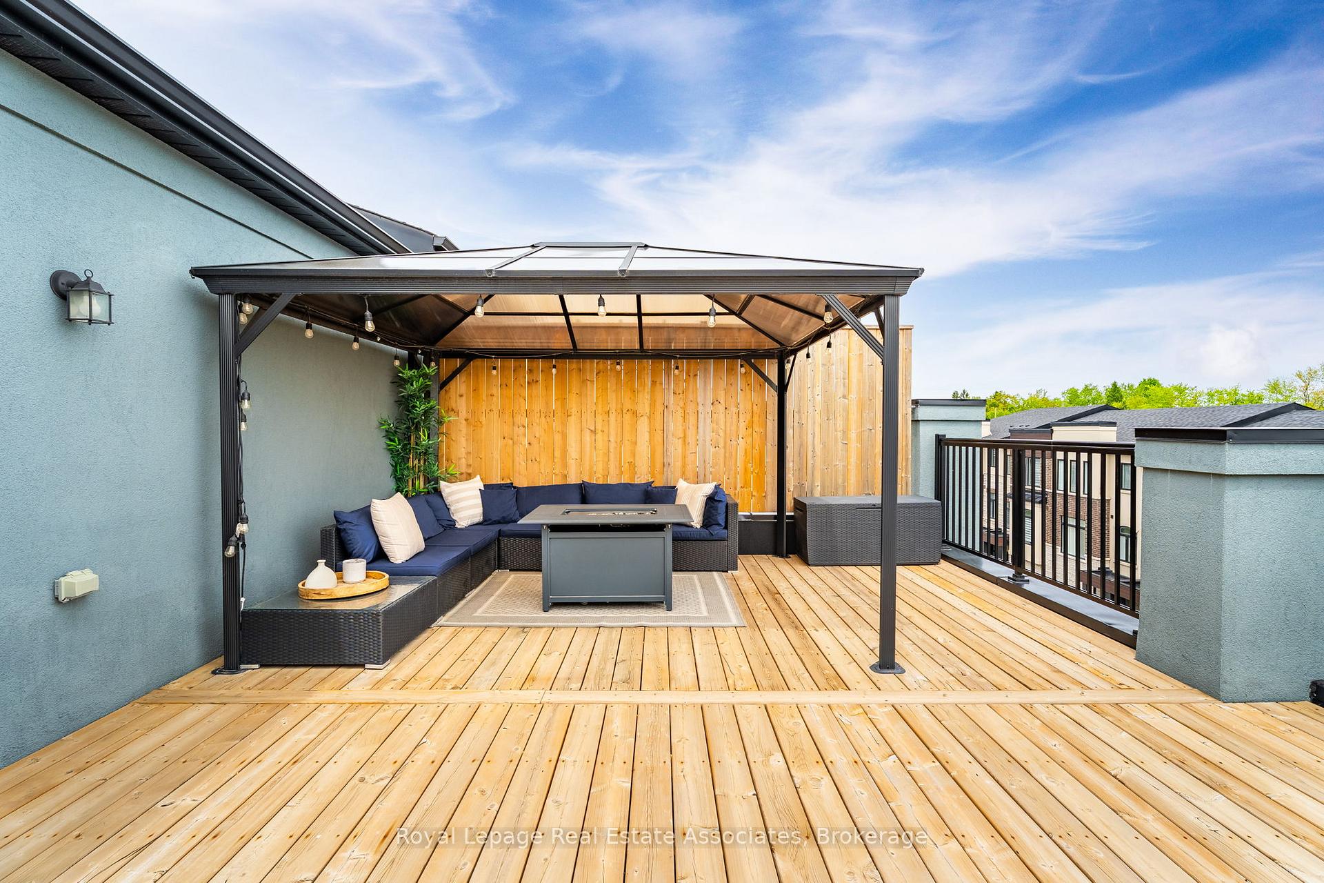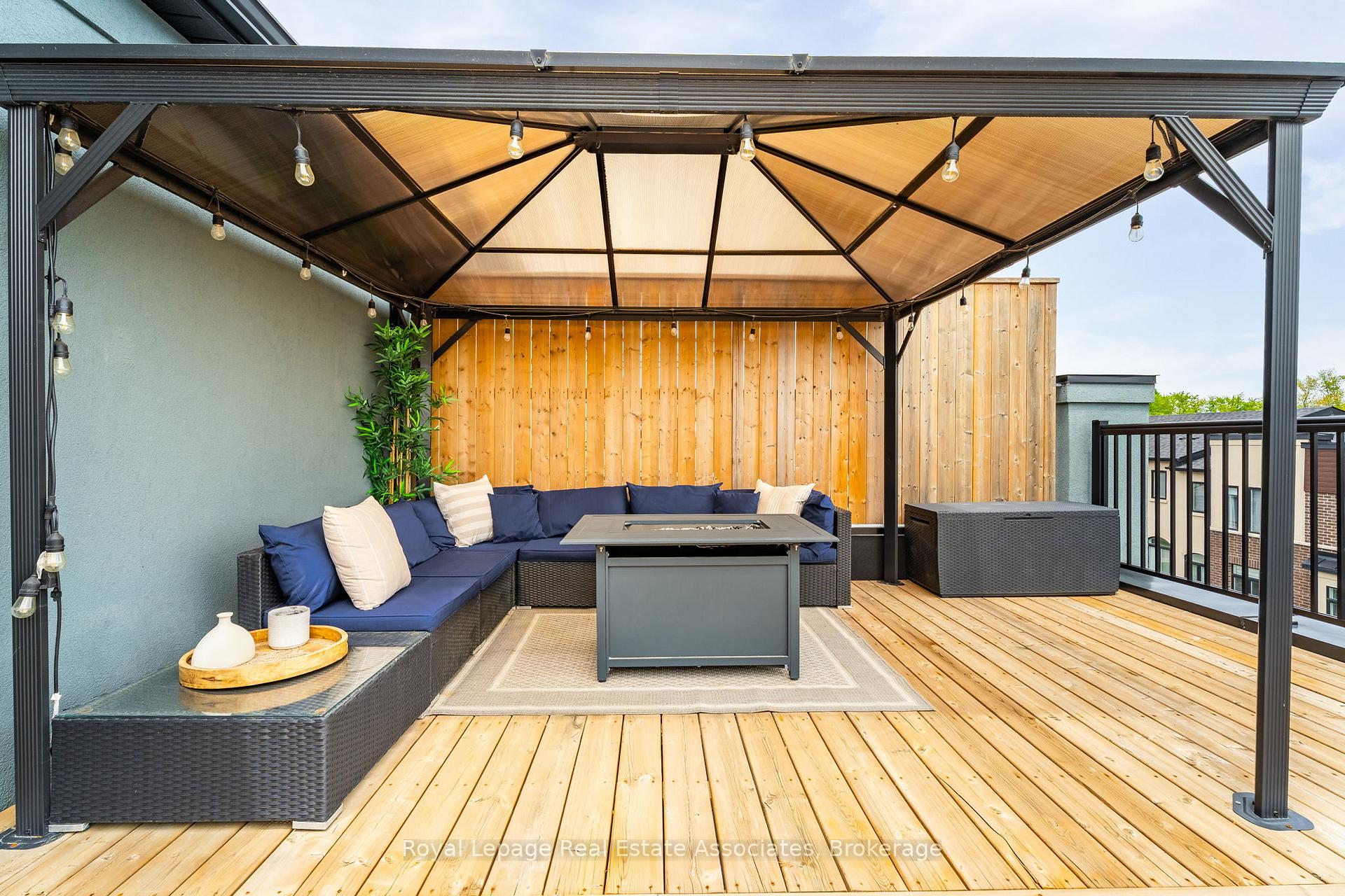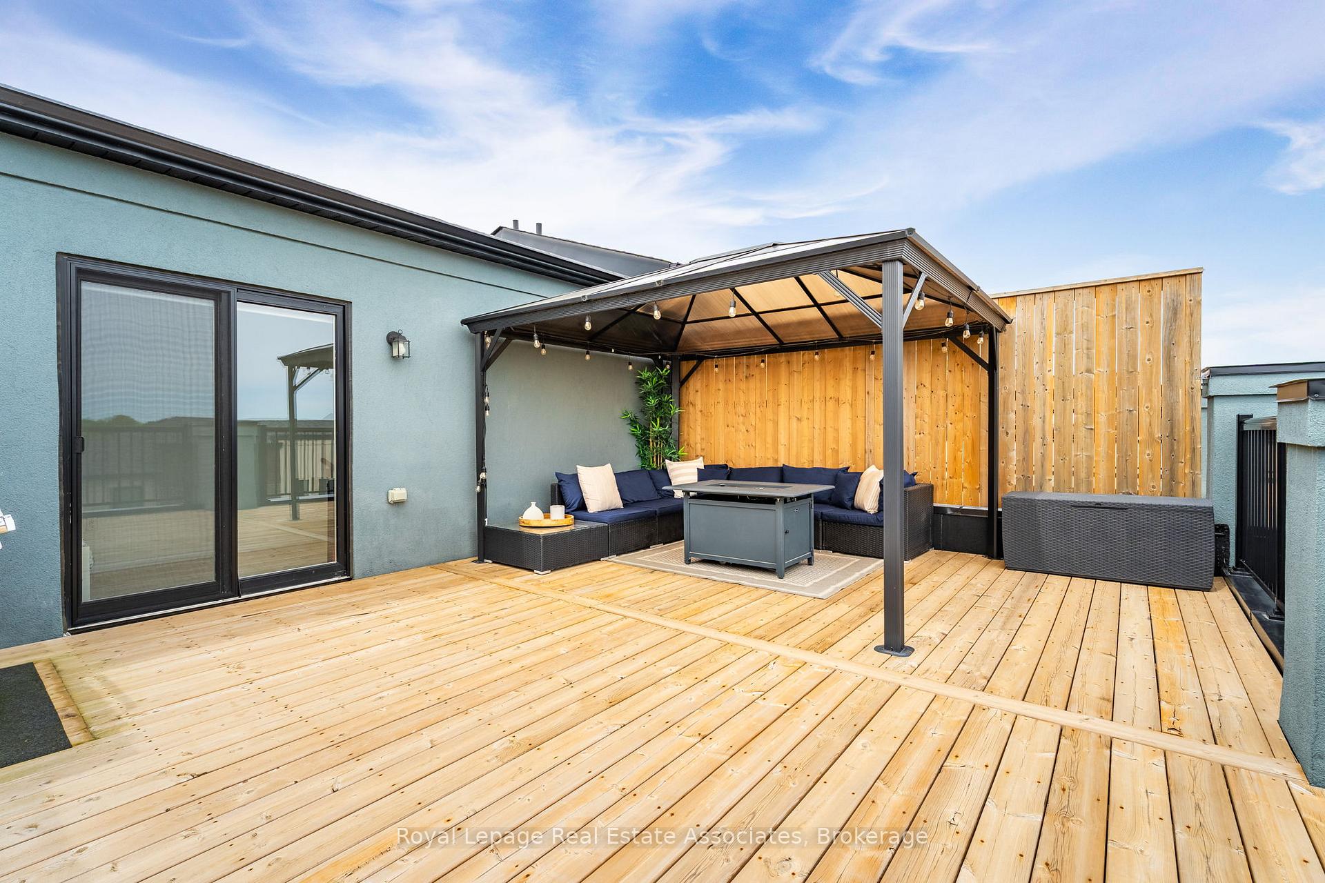 This beautifully upgraded 2+1 bedroom, 3-storey townhome offers a perfect blend of modern finishes and smart design. Enjoy upgraded light fixtures, sleek hardware, and durable luxury vinyl flooring. The open-concept layout is bright and spacious, ideal for entertaining or relaxing at home. The standout feature? A private rooftop terrace perfect for summer lounging, entertaining guests, or enjoying your morning coffee with a view. With parking for 2 vehicles, convenience is top of mind. Located just steps from a park and less than 10 minutes to Highway 401 and the countless amenities of Hespeler Road, this location is unbeatable for commuters and those seeking easy access to shopping, dining, and everyday essentials. This move-in-ready home offers low-maintenance living in a thriving Cambridge neighbourhood. Don’t miss your chance to own in this sought-after community!