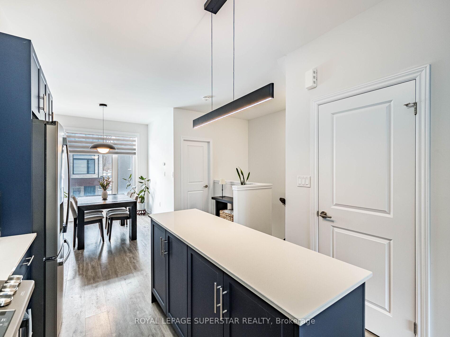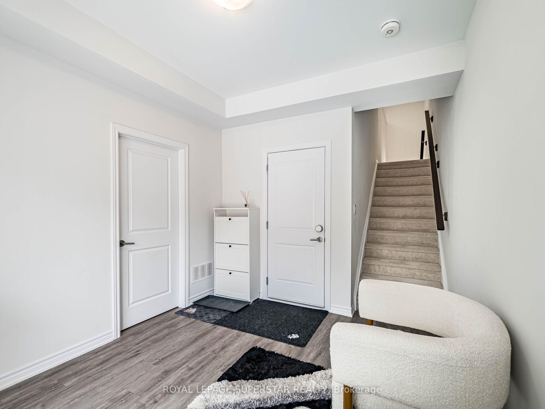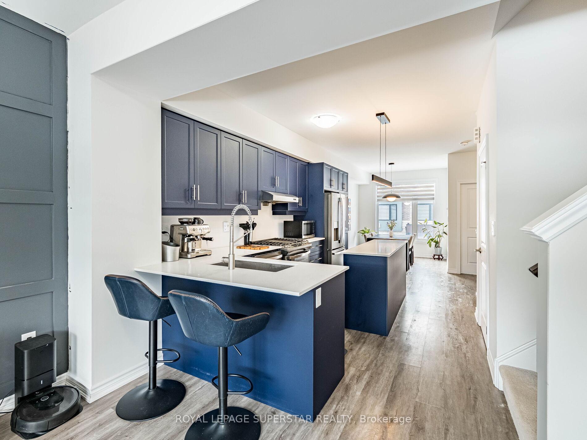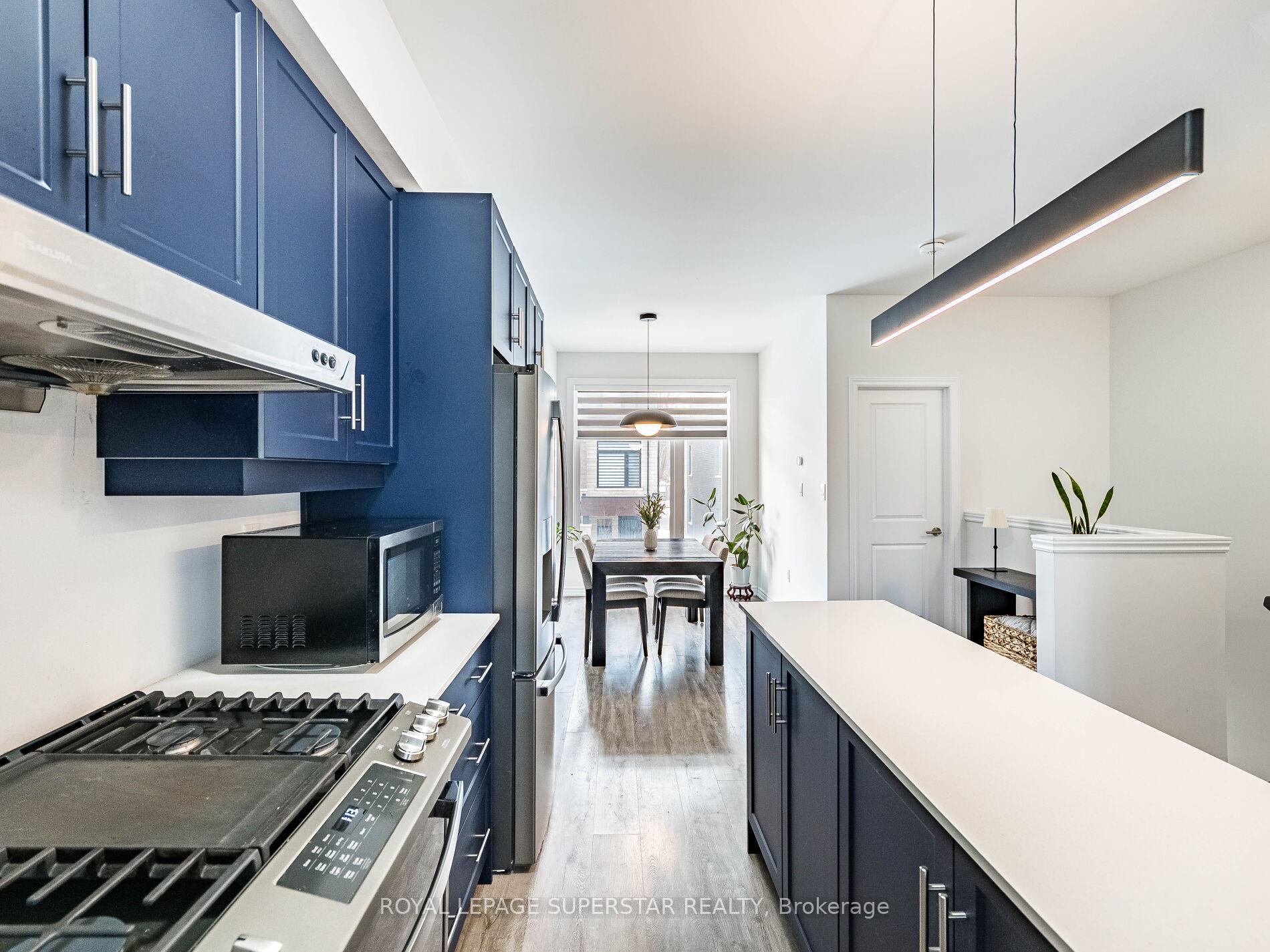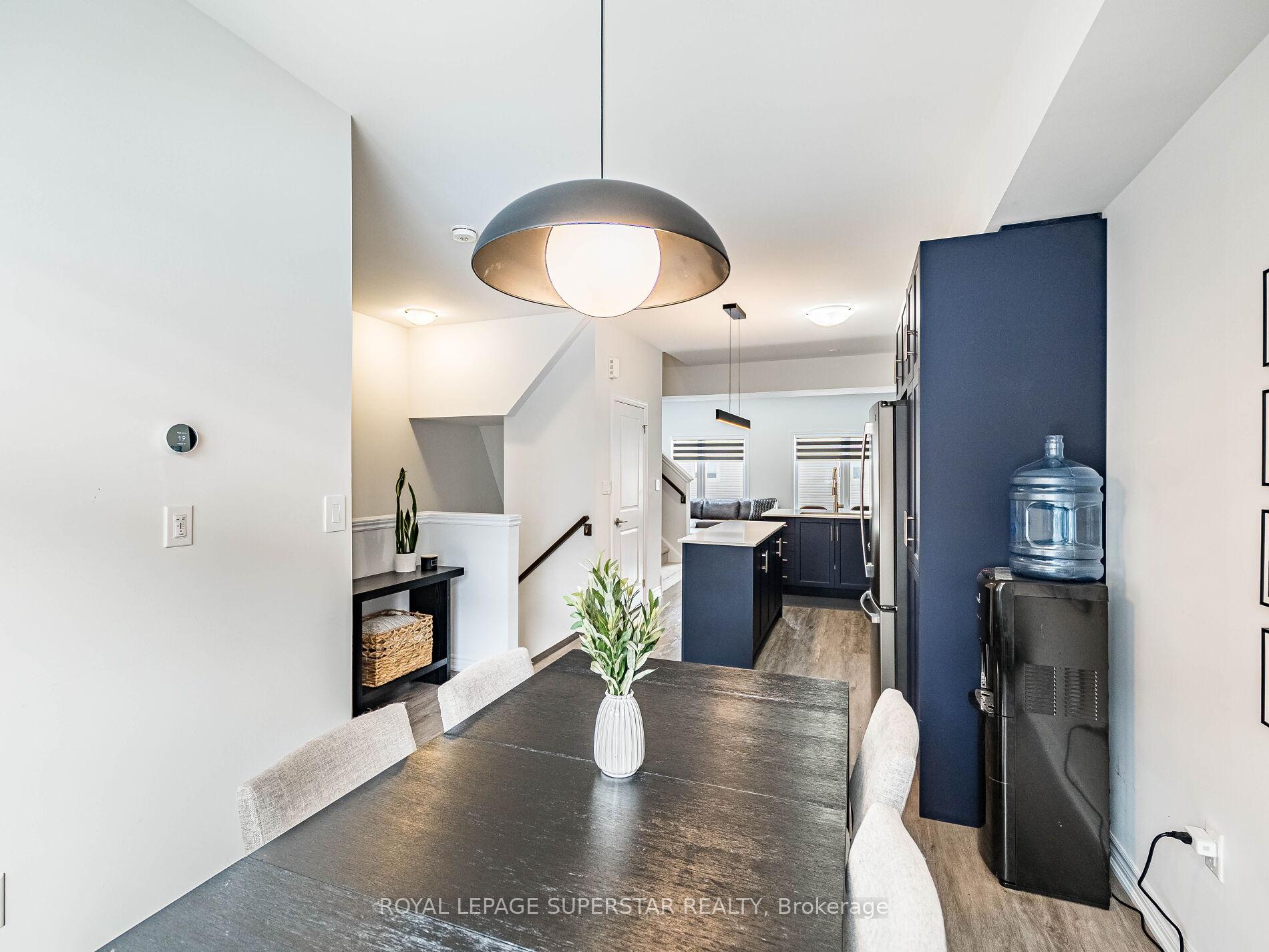 Welcome to this beautifully upgraded, modern-style 3-bedroom plus den townhome that is truly move-in ready and offers exceptional value for families. The main floor features a versatile den that can be used as a home office or entertainment room. The second floor showcases a bright open-concept layout with a stunning upgraded kitchen complete with hard-surface countertops, a large island, gas stove, stainless steel appliances, ample cabinetry, and an eat-in area, flowing into a spacious living room highlighted by a custom media wall and a convenient large size powder room. The third floor offers a generous primary bedroom with a walk-in closet and upgraded ensuite, along with two other well-sized bedrooms and another full bathroom. Recent upgrades include smart switches and dimmers, upgraded carpet, and upgraded tiles in the washrooms. With its beautiful exterior curb appeal and prime location close to amenities, schools, and highway access, this home is a must-see home ideal for young families and first-time buyers.