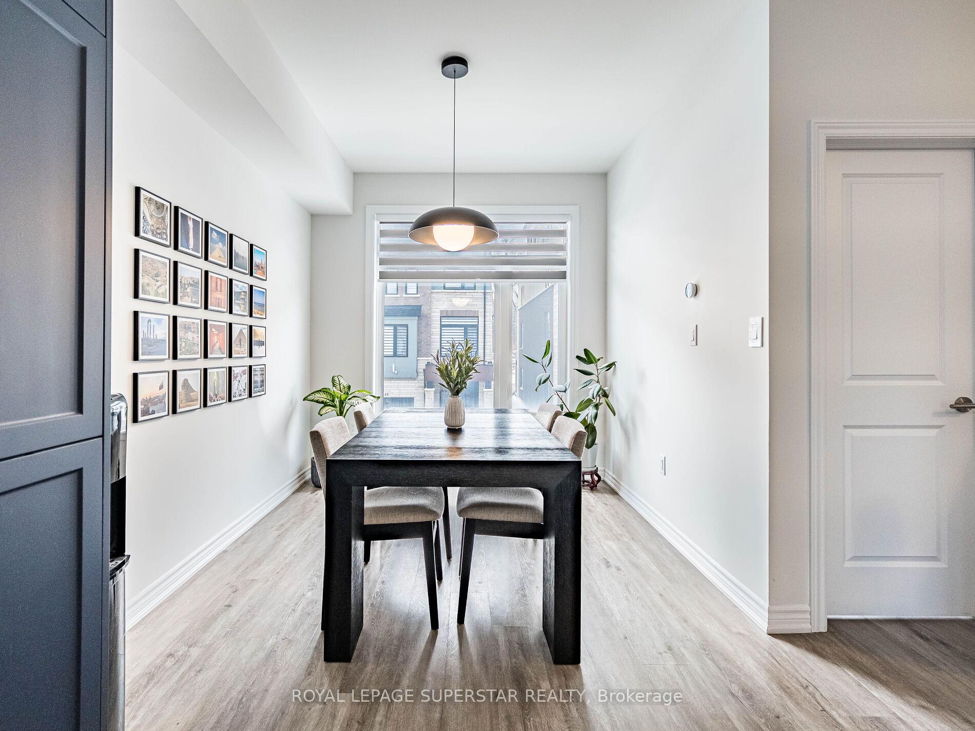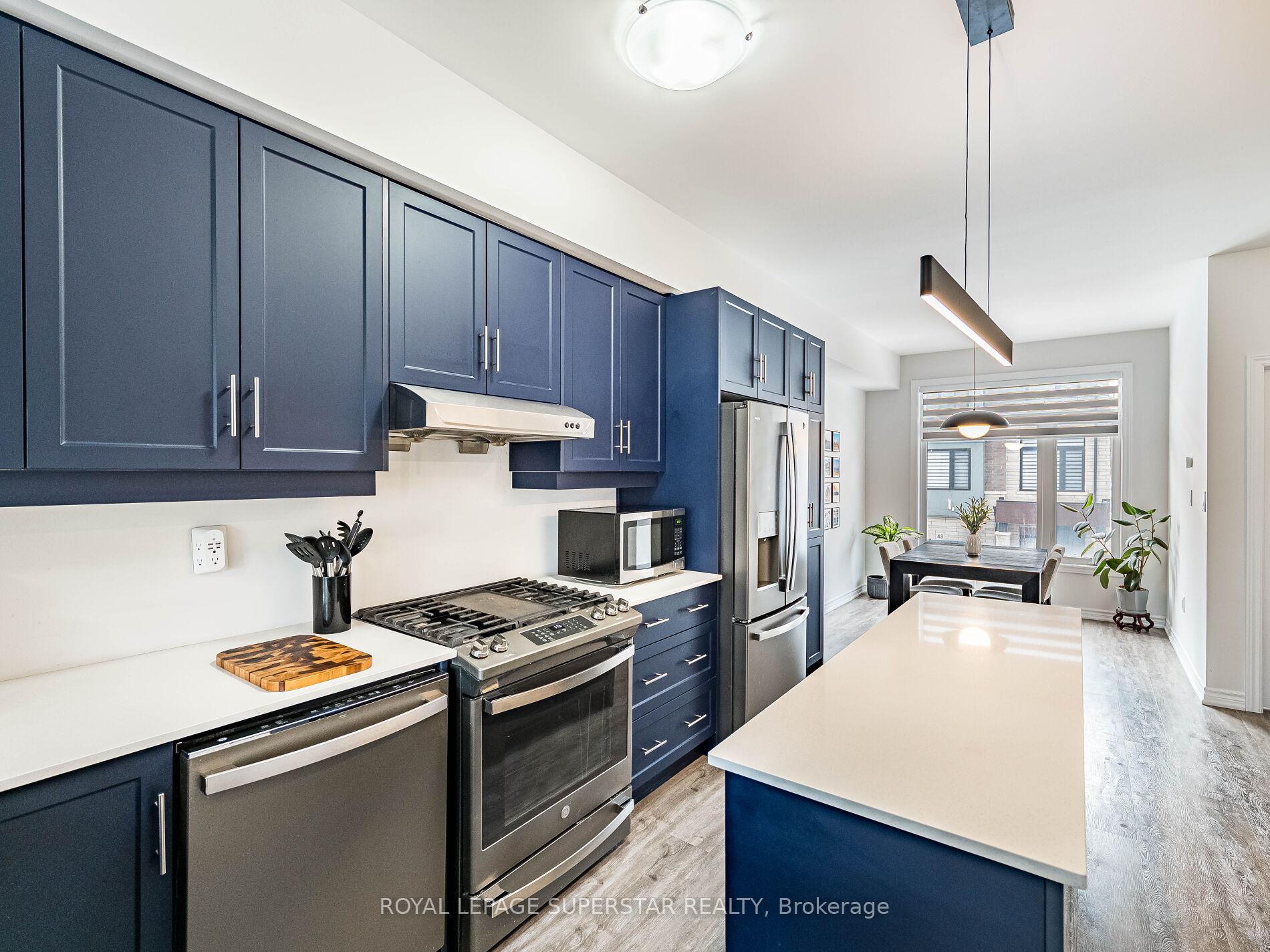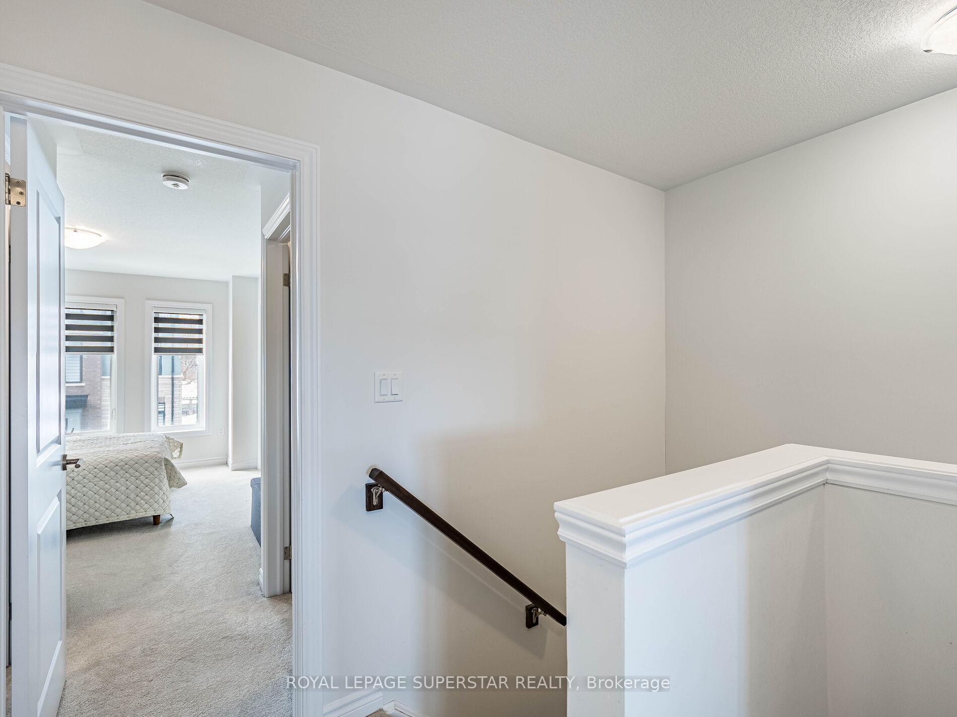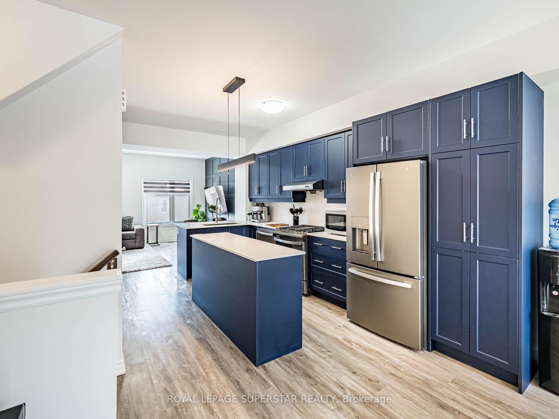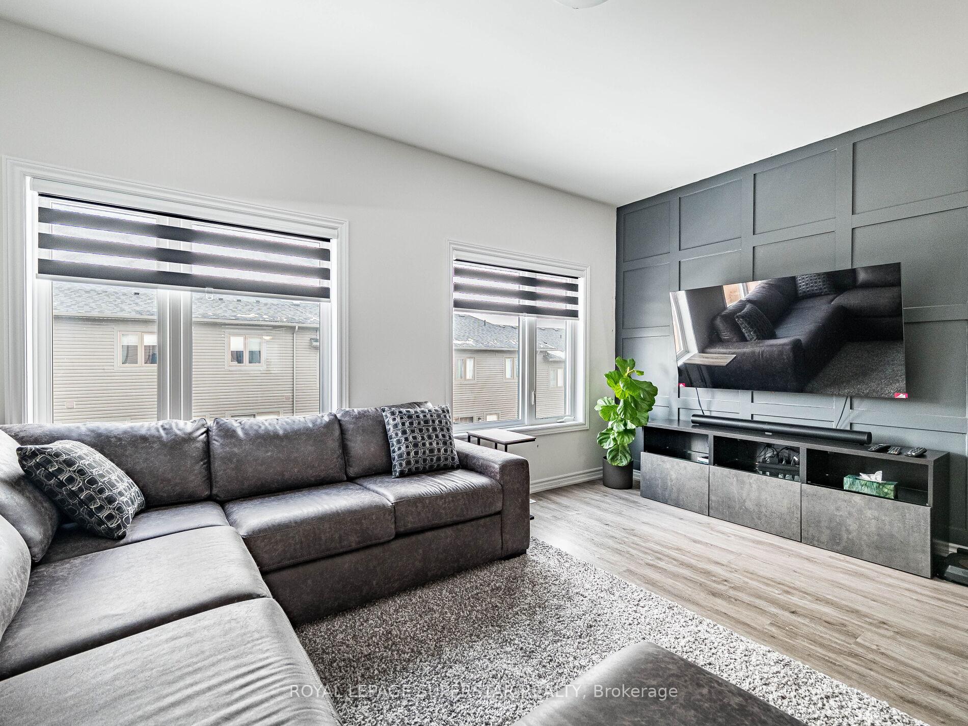 Welcome to this beautifully upgraded, modern-style 3-bedroom plus den townhome that is truly move-in ready and offers exceptional value for families. The main floor features a versatile den that can be used as a home office or entertainment room. The second floor showcases a bright open-concept layout with a stunning upgraded kitchen complete with hard-surface countertops, a large island, gas stove, stainless steel appliances, ample cabinetry, and an eat-in area, flowing into a spacious living room highlighted by a custom media wall and a convenient large size powder room. The third floor offers a generous primary bedroom with a walk-in closet and upgraded ensuite, along with two other well-sized bedrooms and another full bathroom. Recent upgrades include smart switches and dimmers, upgraded carpet, and upgraded tiles in the washrooms. With its beautiful exterior curb appeal and prime location close to amenities, schools, and highway access, this home is a must-see home ideal for young families and first-time buyers.