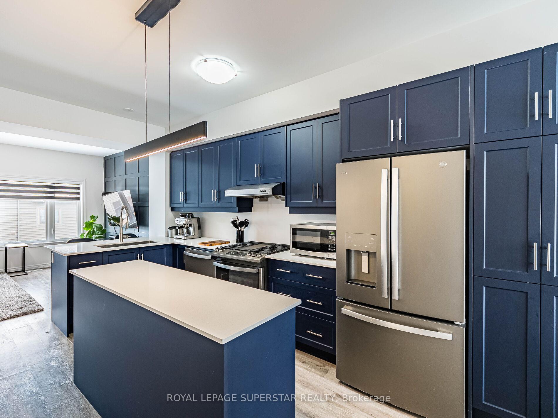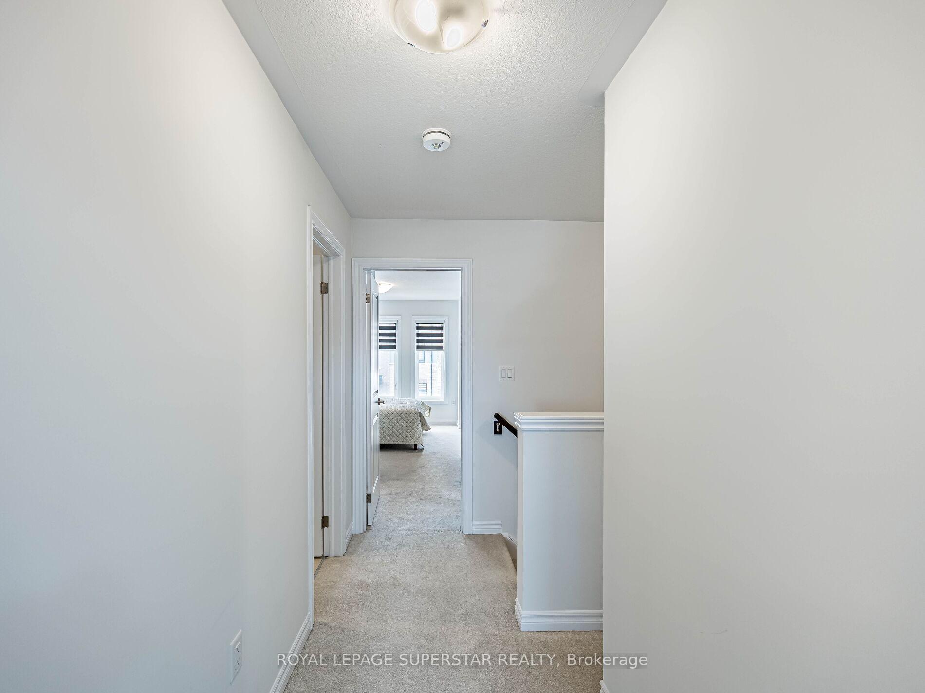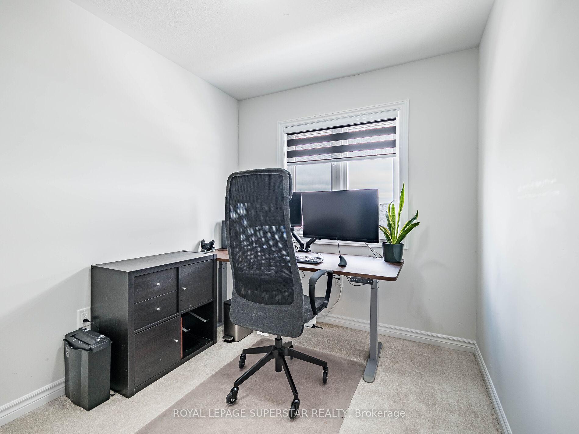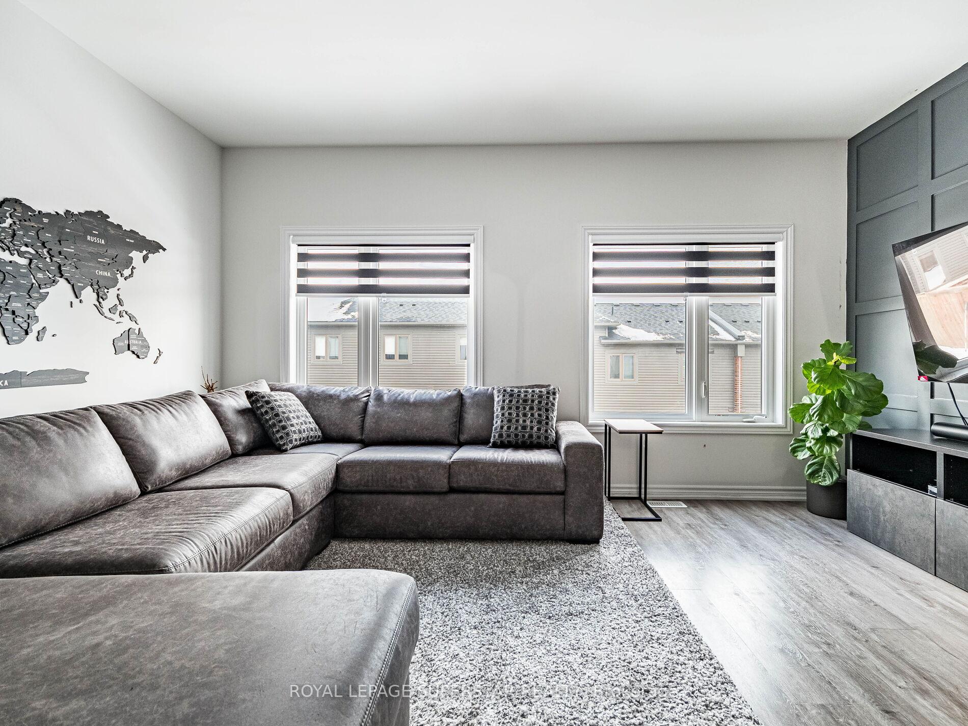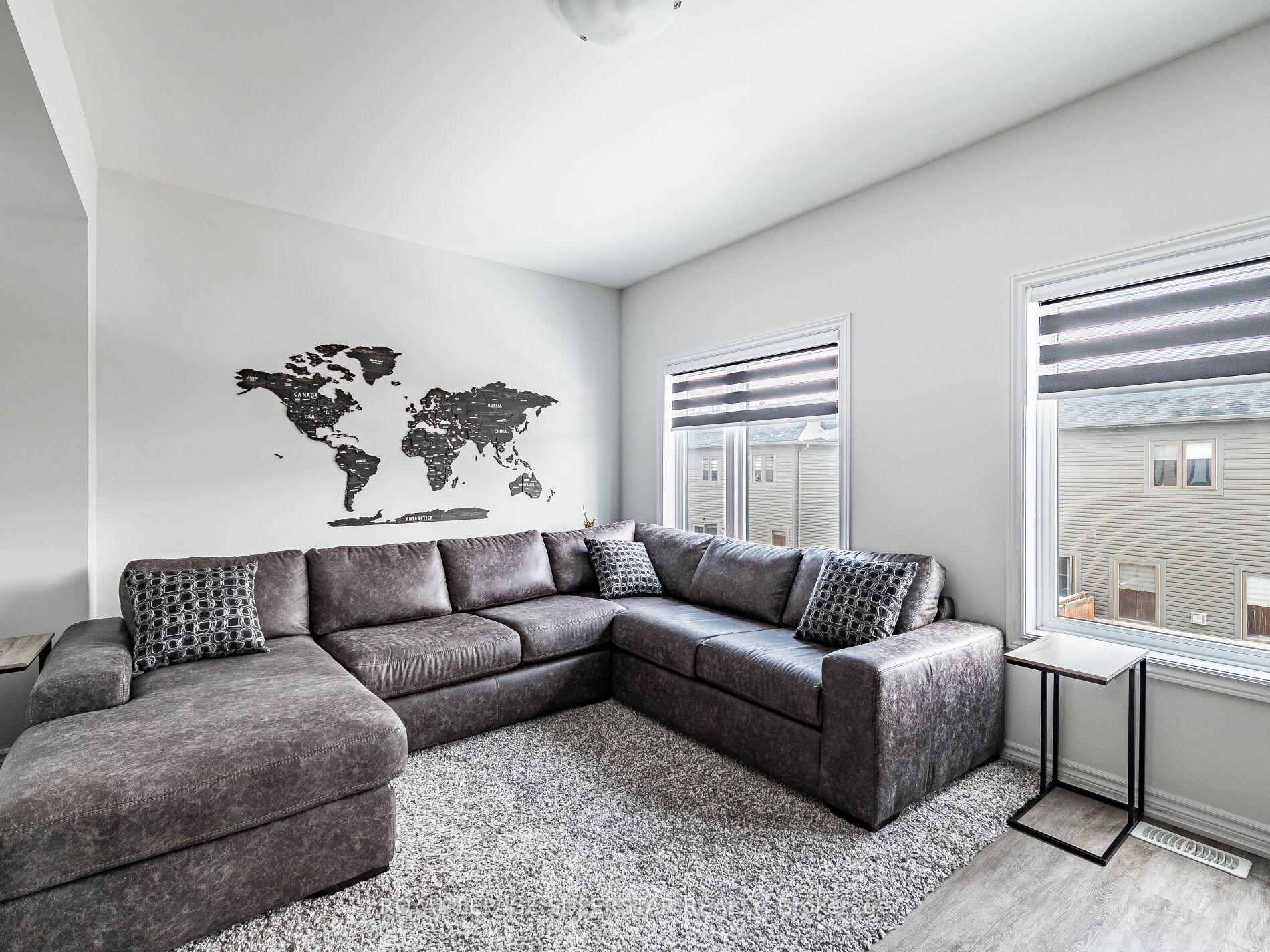 Welcome to this beautifully upgraded, modern-style 3-bedroom plus den townhome that is truly move-in ready and offers exceptional value for families. The main floor features a versatile den that can be used as a home office or entertainment room. The second floor showcases a bright open-concept layout with a stunning upgraded kitchen complete with hard-surface countertops, a large island, gas stove, stainless steel appliances, ample cabinetry, and an eat-in area, flowing into a spacious living room highlighted by a custom media wall and a convenient large size powder room. The third floor offers a generous primary bedroom with a walk-in closet and upgraded ensuite, along with two other well-sized bedrooms and another full bathroom. Recent upgrades include smart switches and dimmers, upgraded carpet, and upgraded tiles in the washrooms. With its beautiful exterior curb appeal and prime location close to amenities, schools, and highway access, this home is a must-see home ideal for young families and first-time buyers.