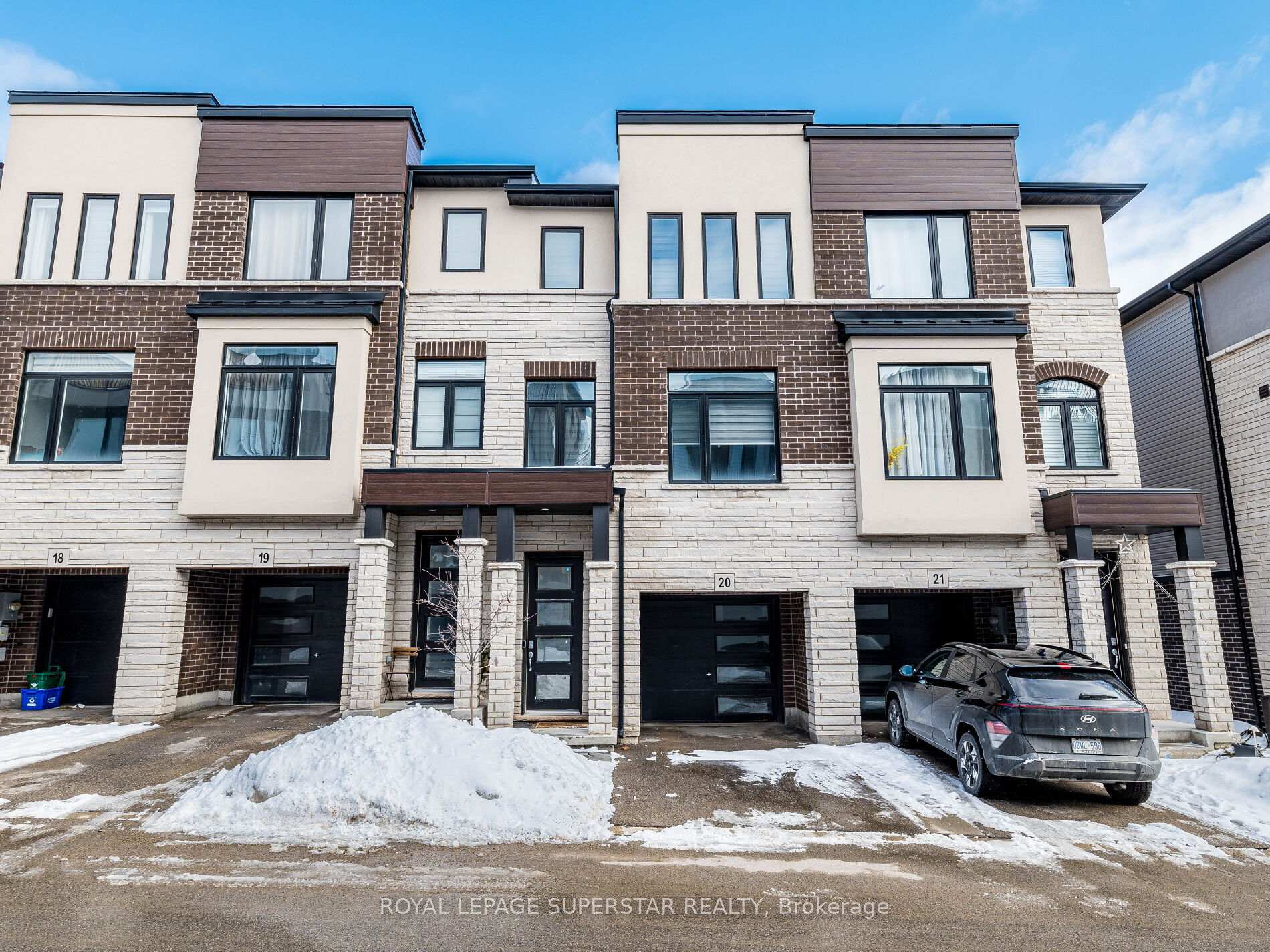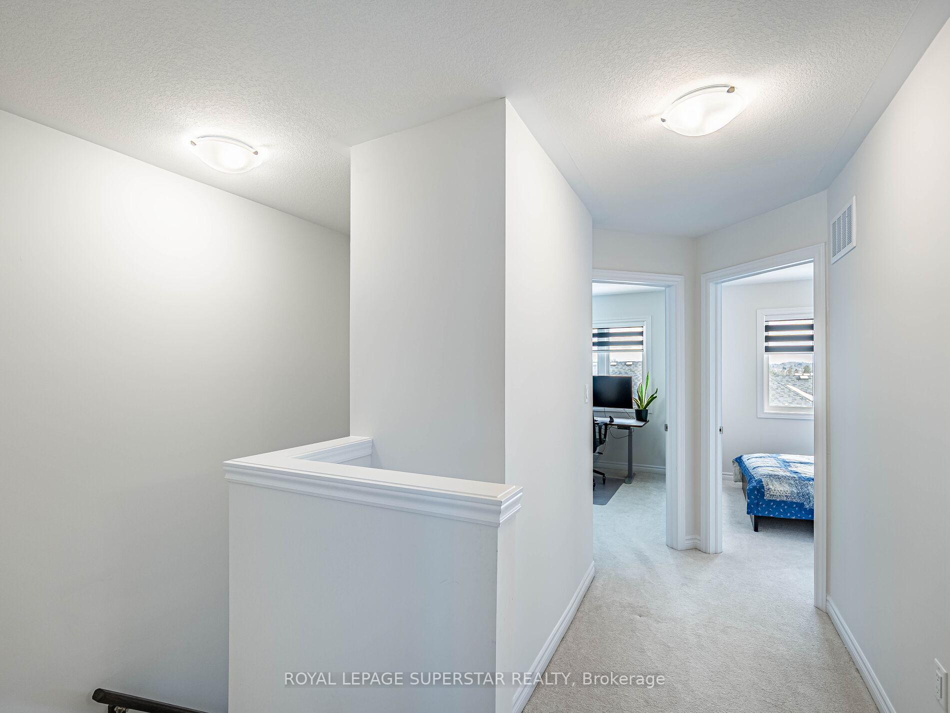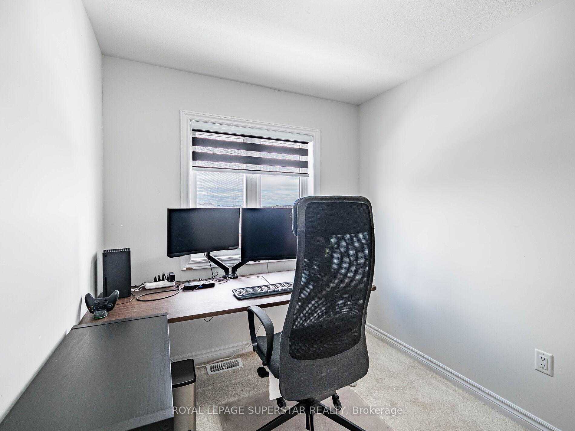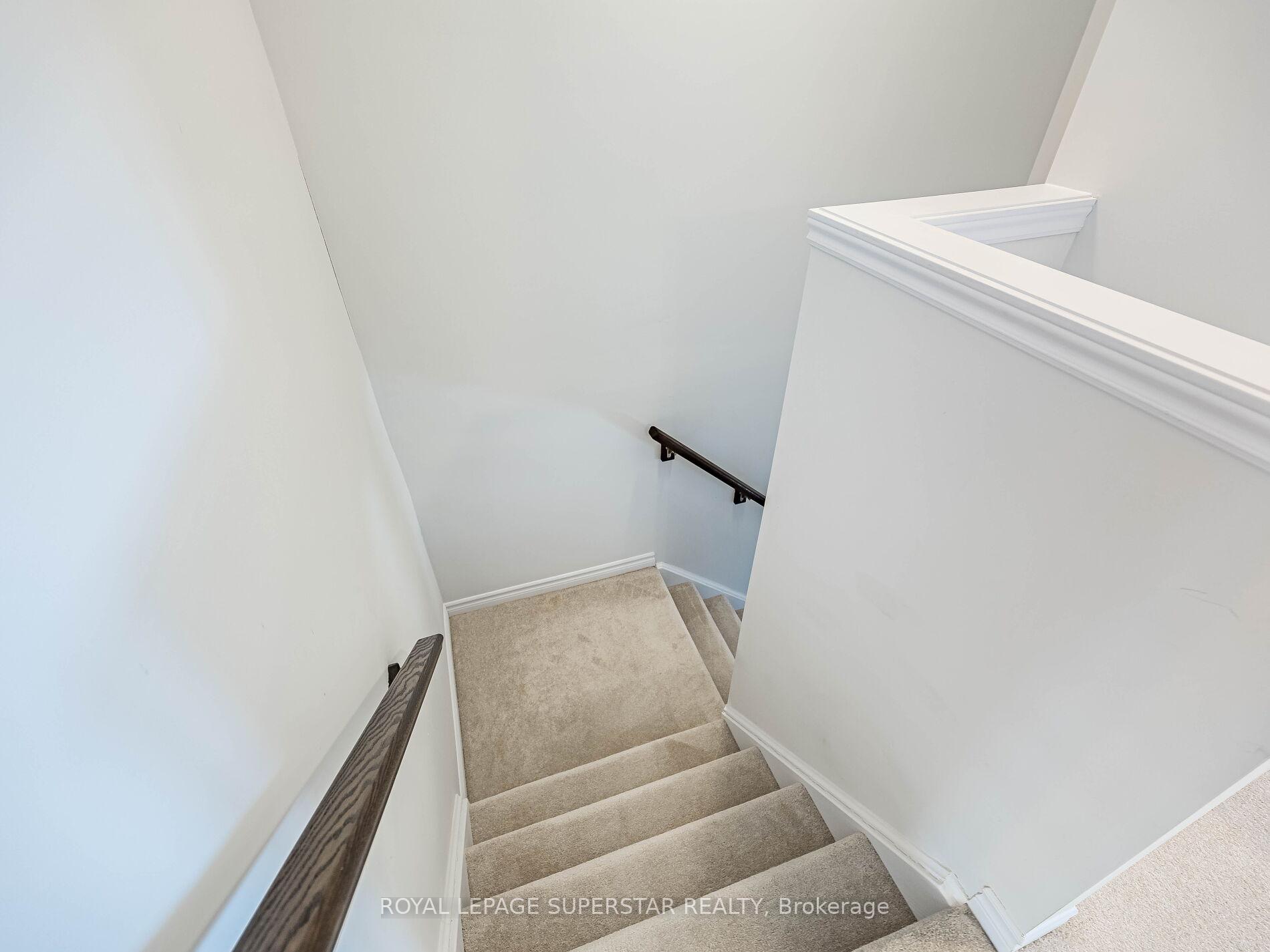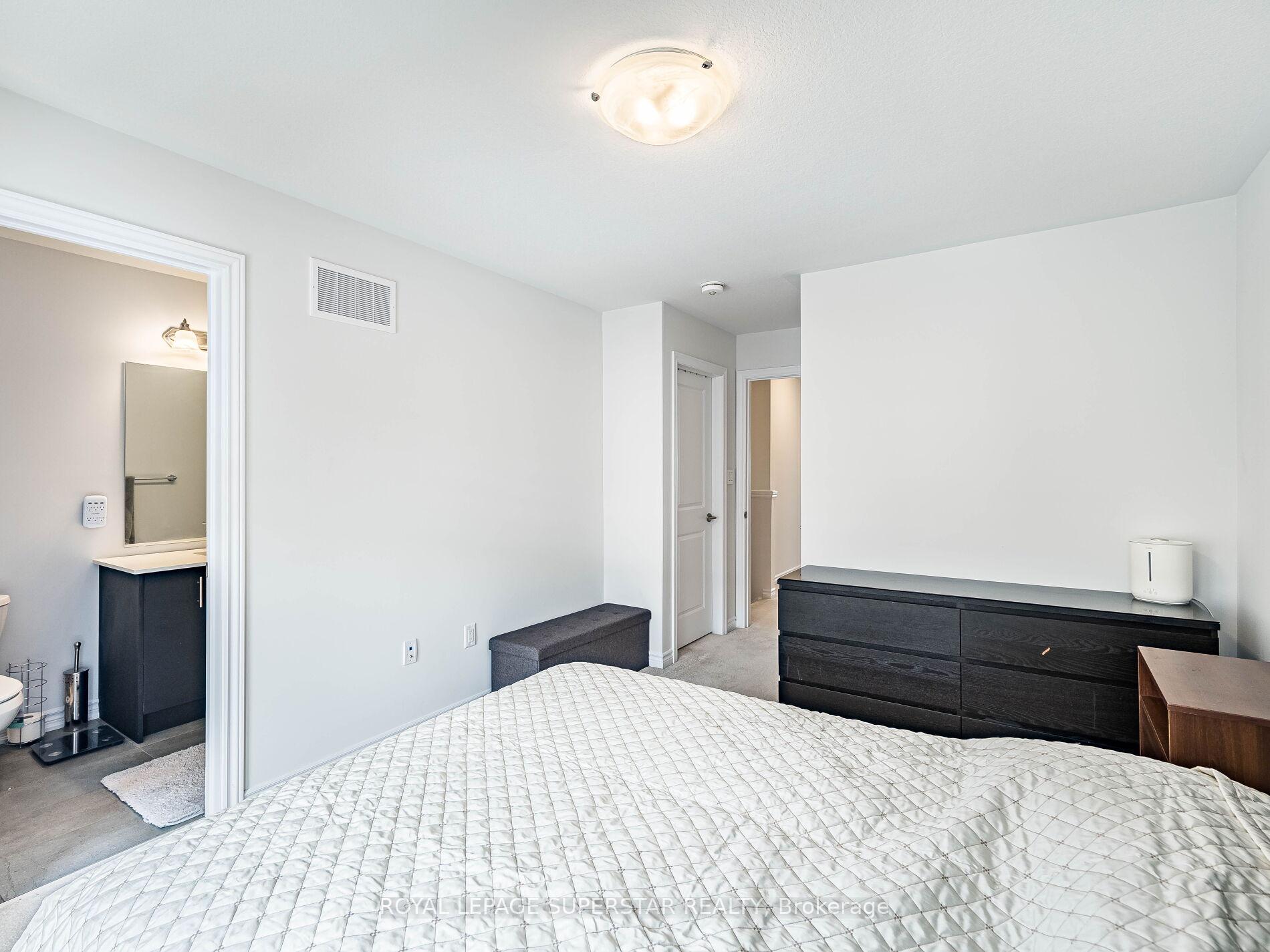Welcome to this beautifully upgraded, modern-style 3-bedroom plus den townhome that is truly move-in ready and offers exceptional value for families. The main floor features a versatile den that can be used as a home office or entertainment room. The second floor showcases a bright open-concept layout with a stunning upgraded kitchen complete with hard-surface countertops, a large island, gas stove, stainless steel appliances, ample cabinetry, and an eat-in area, flowing into a spacious living room highlighted by a custom media wall and a convenient large size powder room. The third floor offers a generous primary bedroom with a walk-in closet and upgraded ensuite, along with two other well-sized bedrooms and another full bathroom. Recent upgrades include smart switches and dimmers, upgraded carpet, and upgraded tiles in the washrooms. With its beautiful exterior curb appeal and prime location close to amenities, schools, and highway access, this home is a must-see home ideal for young families and first-time buyers.