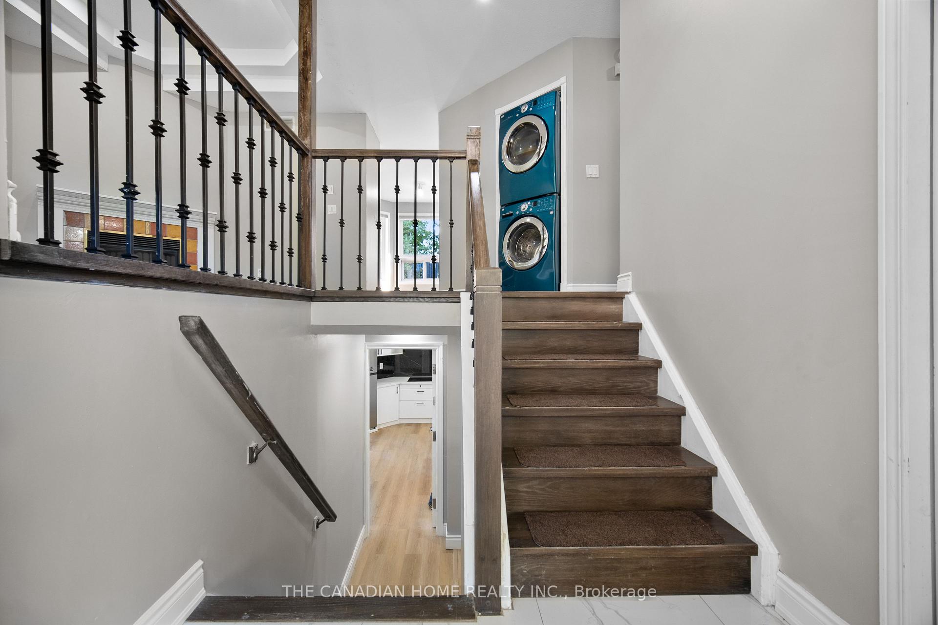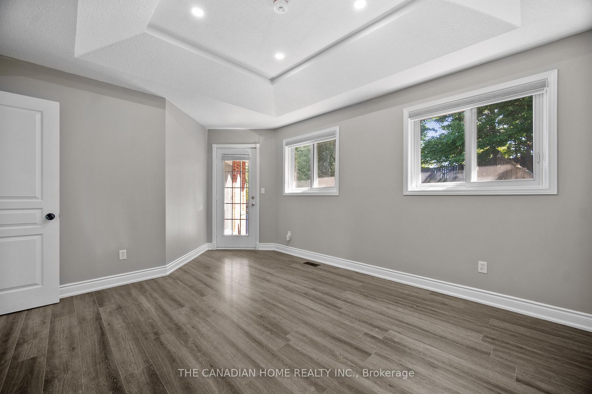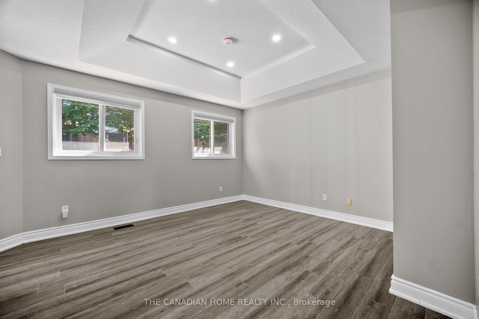 Attention First-Time Home Buyers & Investors! This is a Legal Duplex. Welcome to this beautifully upgraded double-garage home, perfectly situated on a deep lot with mature trees and nestled in a quiet, family-friendly neighborhood. Just steps from schools, transit, and parks, this move-in ready gem boasts a brand-new never-lived-in legal basement apartment-ideal for generating rental income and easing your mortgage. Recent 2025 updates include a fully renovated bathroom, fresh paint throughout, duct cleaning, and a new stove on the main floor. Enjoy modern comforts like, pot lights, roll-up blinds, and a cozy fireplace in the family room, plus added value with newer garage doors, driveway, and roof (2018). The Skylit bathroom, private backyard access from the primary suite, and separate entrance to the finished basement with a bedroom and 3-pc bath make this property a rare find blending style, function, and investment potential.