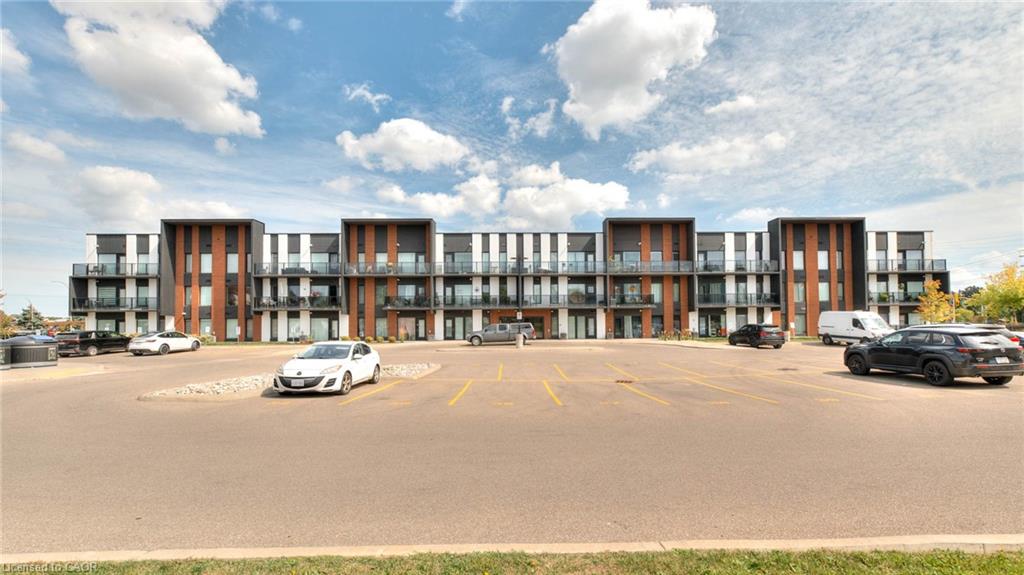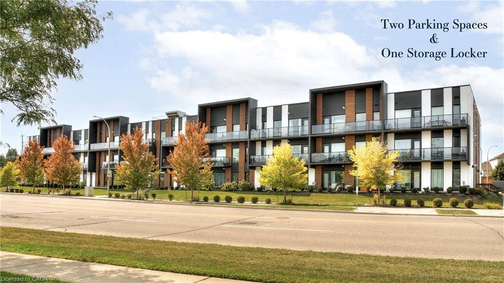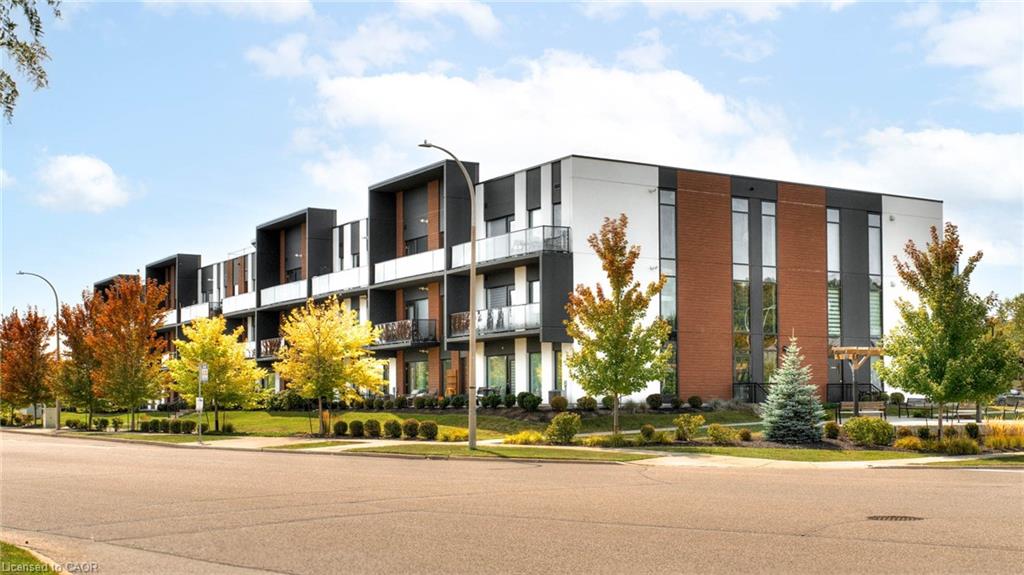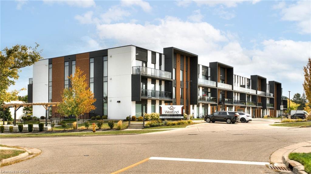 5 Reasons to love this condo:1. Two owned parking spots 2. One owned storage locker 3. Top floor & corner unit 4. Ensuite Laundry 5. Large balcony. Welcome to Unit 318 at 5 Wake Robin Drive a bright 1-bedroom condo built in 2020 offering contemporary finishes and stress-free living. This rare top-floor corner unit features tall ceilings, oversized windows, and a freshly painted interior filled with natural light.The open-concept kitchen showcases quartz countertops, stainless steel appliances, a tile backsplash, and a peninsula with breakfast seating. Wide-plank flooring flows through the main living area to a large private balcony – perfect for morning coffee or evening relaxation.The spacious bedroom offers two big windows and a large closet, while the stylish 4-piece bathroom includes a tiled tub/shower combo and modern vanity. Enjoy the convenience of in-suite laundry, two owned parking spaces, and a storage locker.Condo fees include private garbage removal, building insurance, property management, snow and lawn care, plus roof and window maintenance – leaving you with truly worry-free ownership. Residents also enjoy a community BBQ area.Ideally located close to Sunrise Plaza, major highway access, shopping, and everyday amenities, this bright, move-in-ready condo combines style, comfort, and convenience in one of Kitcheners most desirable locations.