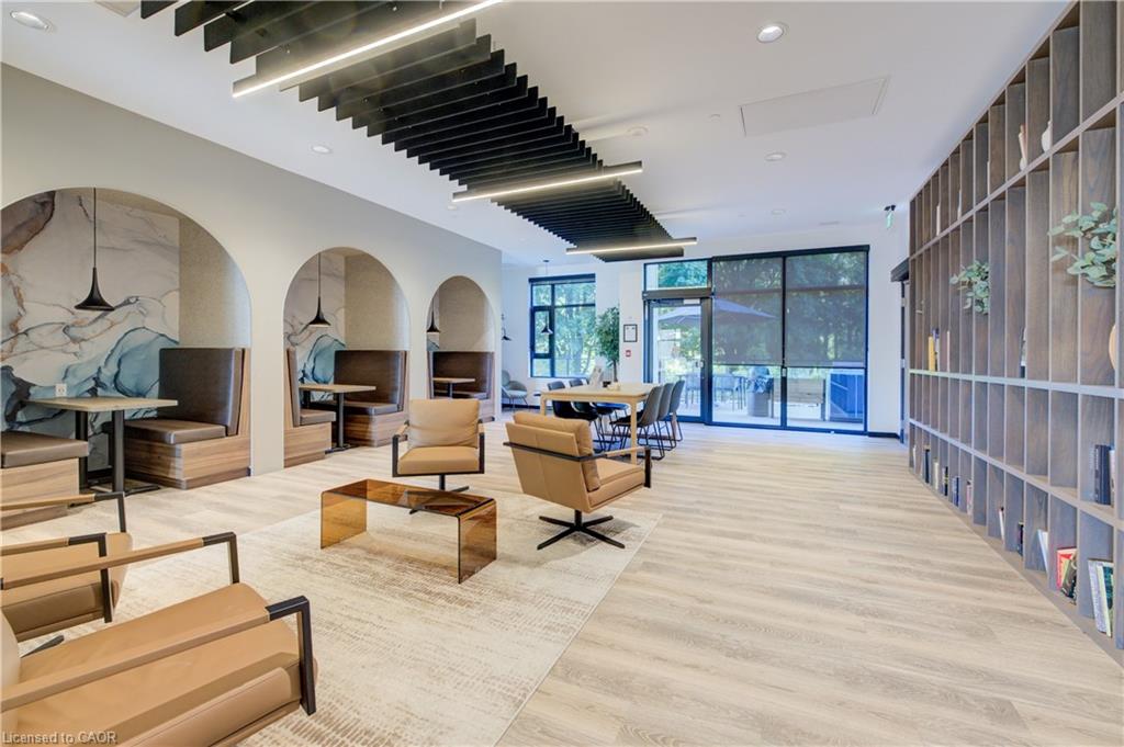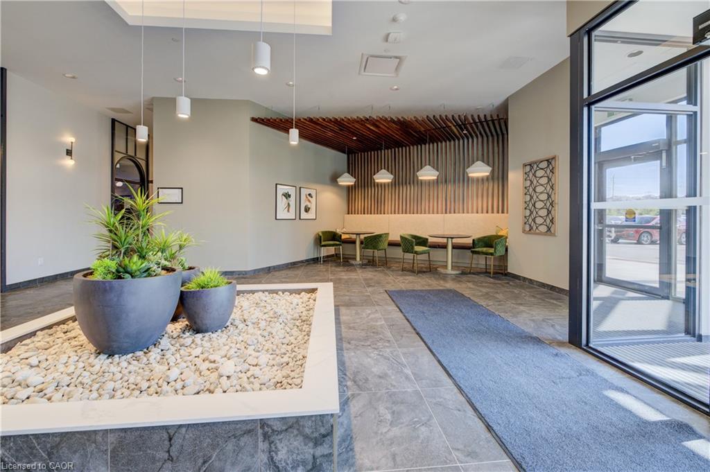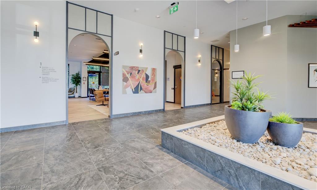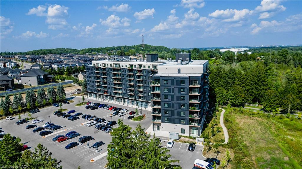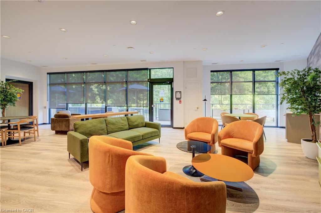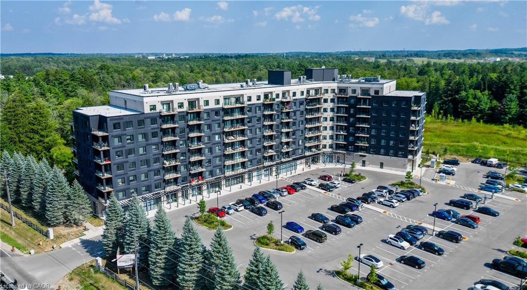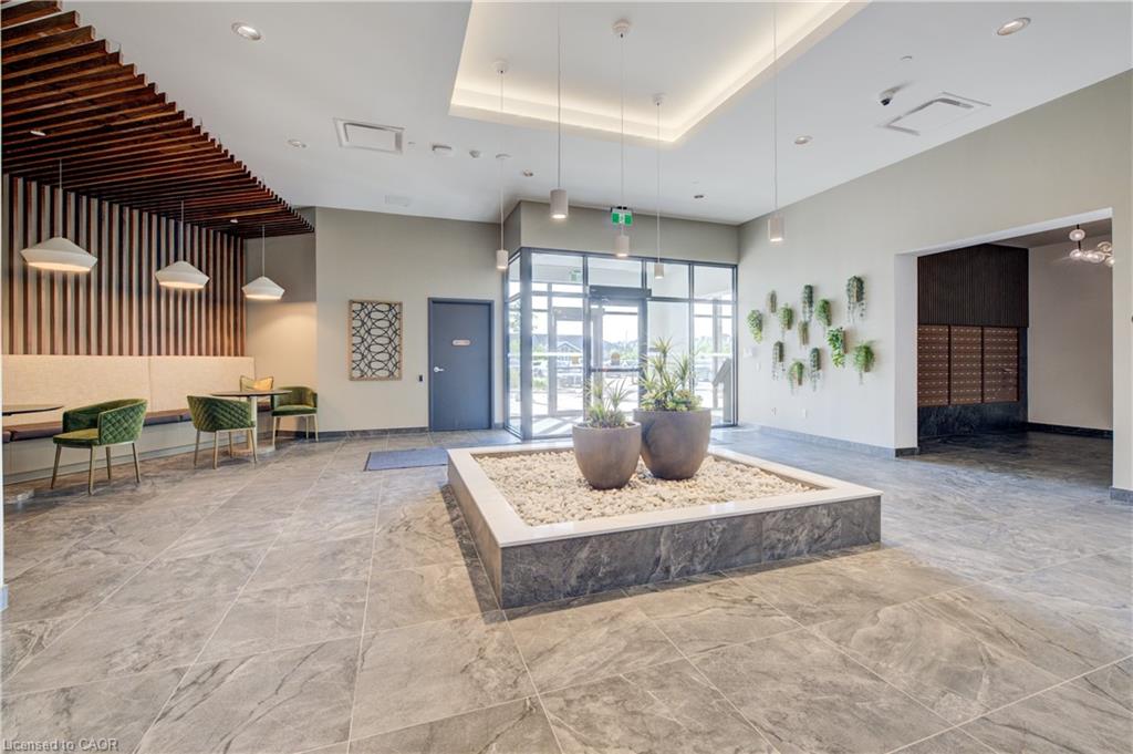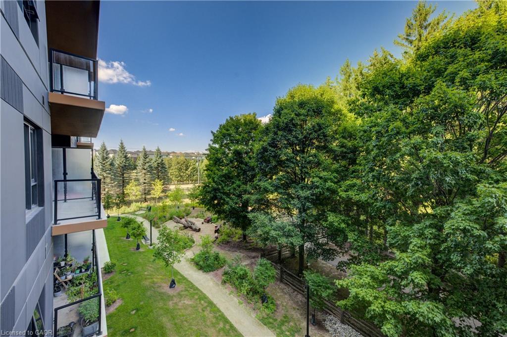 Welcome to this stunning 1-bedroom, 1-bathroom condo offering 679 sq ft of stylish living space, plus a serene outdoor balcony overlooking trees and scenic walking paths. Located just minutes from Highway 401, this beautifully maintained unit features an open-concept layout with a modern kitchen, dining area, and living room perfect for entertaining or relaxing. The generously sized bedroom is complemented by a sleek 3-piece bathroom and convenient in-unit private laundry. Enjoy the exceptional amenities this well-managed building has to offer, including a welcoming lobby lounge, elevator access, a fully equipped gym, yoga room, sauna, library, pet wash station and multiple party rooms with kitchen, TV, pool table, and direct access to a patio with BBQs. Situated beside picturesque Rainbow Lake, you’ll enjoy easy access to the waterfront via the scenic trails right outside your door. This unit includes a private parking spot. Don’t miss out, call your REALTOR today to book a private showing! Photos show unit Digitally Staged.