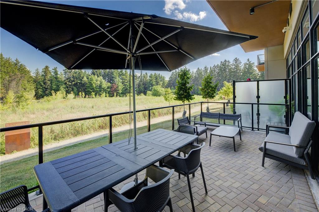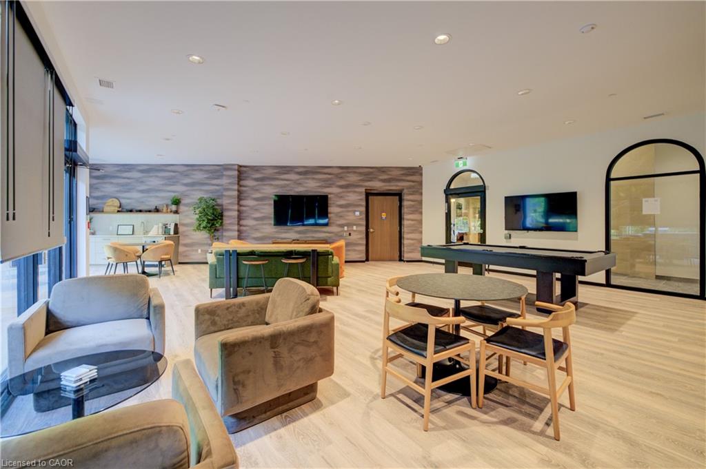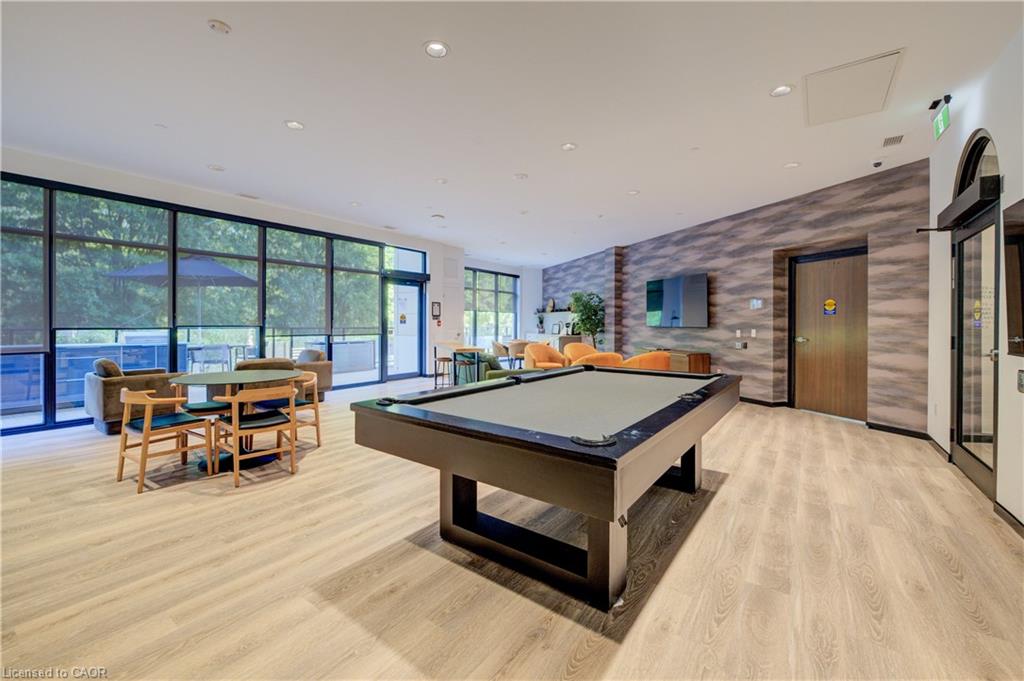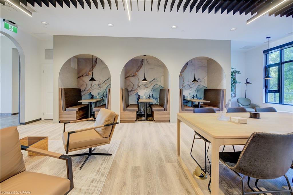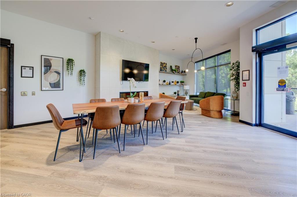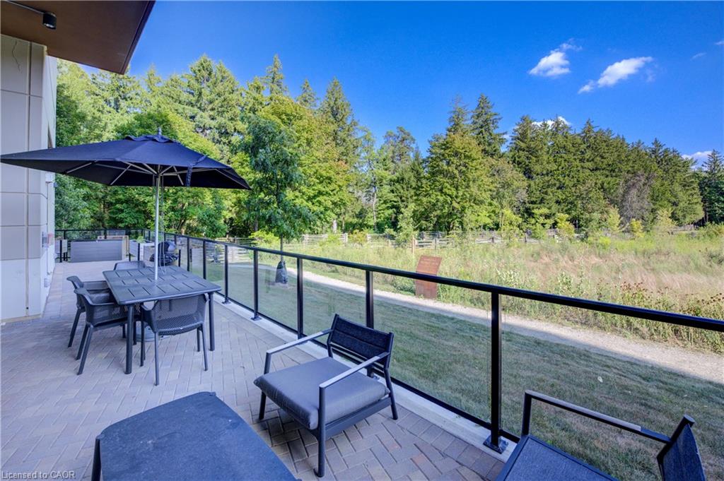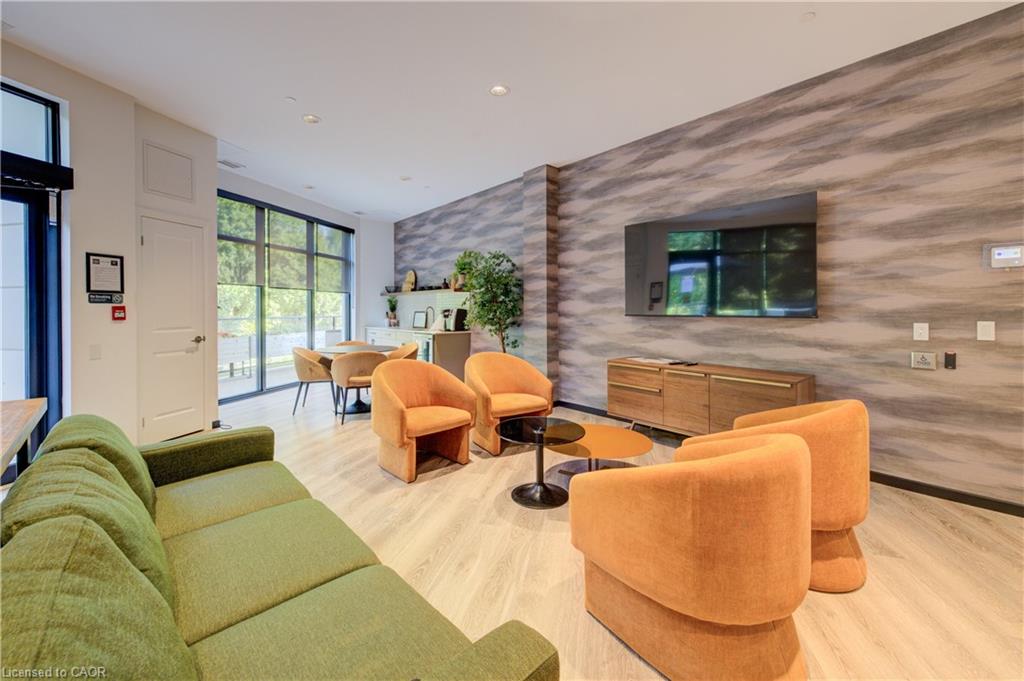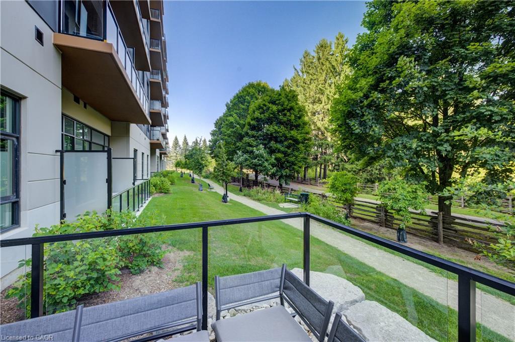 Welcome to this stunning 1-bedroom, 1-bathroom condo offering 679 sq ft of stylish living space, plus a serene outdoor balcony overlooking trees and scenic walking paths. Located just minutes from Highway 401, this beautifully maintained unit features an open-concept layout with a modern kitchen, dining area, and living room perfect for entertaining or relaxing. The generously sized bedroom is complemented by a sleek 3-piece bathroom and convenient in-unit private laundry. Enjoy the exceptional amenities this well-managed building has to offer, including a welcoming lobby lounge, elevator access, a fully equipped gym, yoga room, sauna, library, pet wash station and multiple party rooms with kitchen, TV, pool table, and direct access to a patio with BBQs. Situated beside picturesque Rainbow Lake, you’ll enjoy easy access to the waterfront via the scenic trails right outside your door. This unit includes a private parking spot. Don’t miss out, call your REALTOR today to book a private showing! Photos show unit Digitally Staged.
