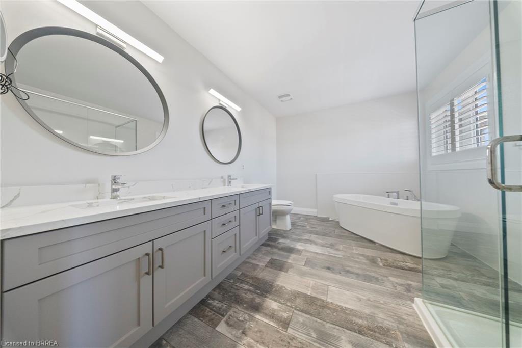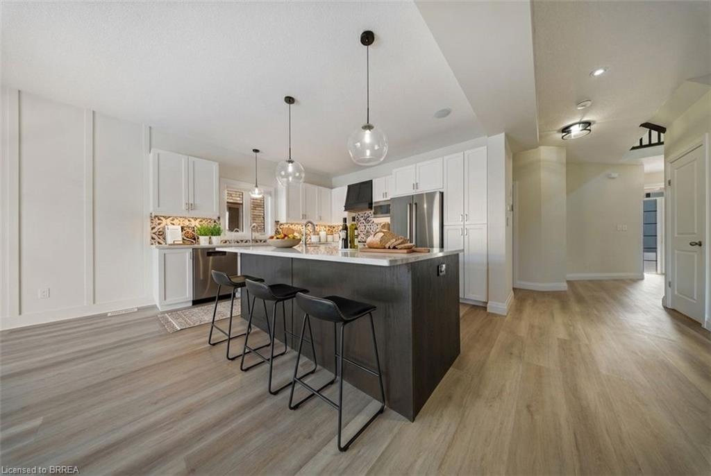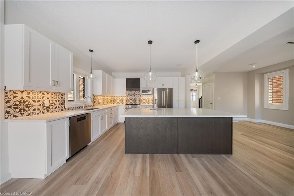 Welcome to 32 Arlington Parkway in the charming town of Paris! Immerse yourself in the highly sought-after Victoria Park neighbourhood, thoughtfully designed for families seeking both comfort and convenience. Pride of ownership radiates throughout this immaculate residence, which artfully blends contemporary design with modern comfort. No detail has been overlooked, showcasing stunning finishes and lavish enhancements across both the interior and exterior. Enjoy a wealth of modern amenities, including a sophisticated water softener, an advanced reverse osmosis system, and elegant California shutters. The custom-designed kitchen and dining area feature a spacious island, gleaming quartz countertops, shaker-style cabinetry, a premium gas stove, a chic tile backsplash, custom range hood, and stylish lighting that adds a touch of opulence to your culinary space. Elevate your living experience with refined features such as recessed pot lights and an integrated speaker system, enhancing the ambiance of the main living area. Gather around the inviting gas fireplace in the living room, perfect for cozy evenings or relaxed get-togethers. Retreat to the upper level, where the large primary bedroom awaits, complete with a walk-in closet and a spa-like ensuite featuring a sumptuous deep soaker tub, a separate shower, and dual vanities. This floor also includes three additional spacious bedrooms, two of which boast a convenient walkthrough ensuite bathroom. Venture down to the lower level to discover a large family room, an additional bedroom, and a conveniently located four-piece bathroom. The backyard serves as an ideal space for unwinding with family and friends, featuring a charming interlocking brick patio and meticulously landscaped grounds. With easy access to the 403, nearby parks, schools, shopping, and all essential amenities, this property harmoniously blends elegance with everyday convenience. Don’t miss your opportunity to make this exceptional home your own!
