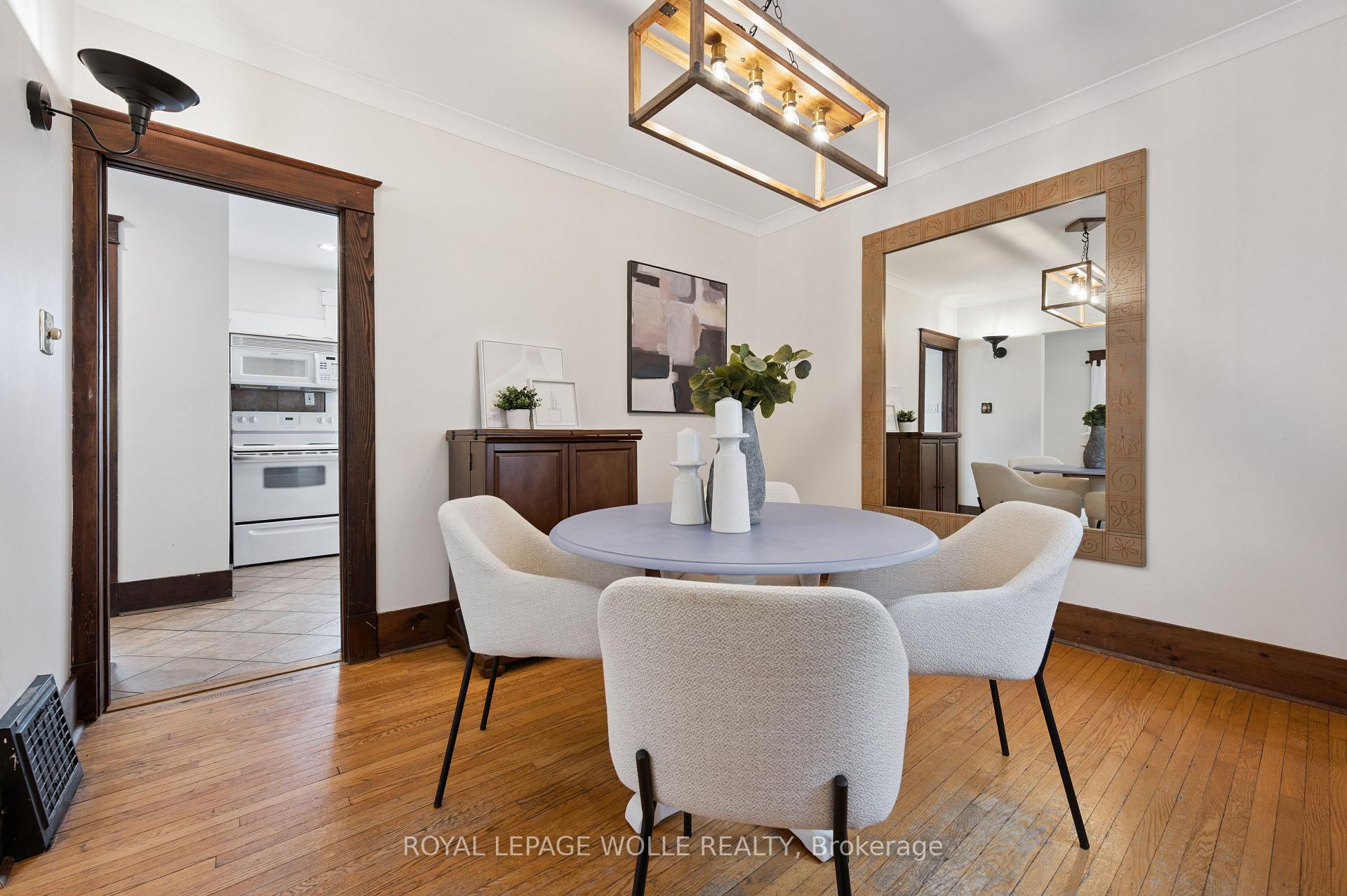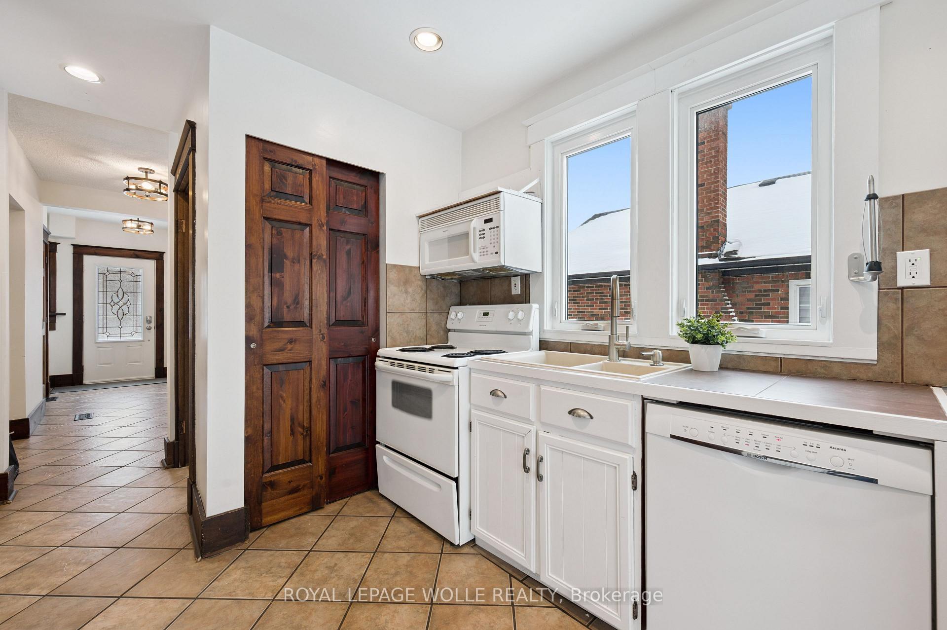 Set on one of Kitchener’s most picturesque and peaceful streets, this classic red brick detached home blends timeless character with thoughtful updates in the heart of the city. Lovingly maintained, this home features rich original woodwork, hardwoods and trim to set the tone of this beautiful century home. Beginning with a spacious front foyer that is perfect for welcoming guests, family and friends, opening up into a bright living room and formal dining room with large windows and stunning wood trim. The large eat-in kitchen offers excellent functionality, two pantries and easy access to the backyard, creating a seamless indoor-outdoor flow for family life and entertaining. Upstairs, you’ll find three well-sized bedrooms, a full bathroom, and the rare convenience of upper-level laundry. Step out onto the updated balcony featuring a DecTec walkable membrane and enjoy serene, unobstructed views overlooking the backyard which offers plenty of grass area for kids to play and beautiful gardens. Additional highlights include a walk-up attic offering excellent storage or future potential, and a cozy finished basement (2018) ideal for movie nights, complete with a full bathroom. A large private driveway adds everyday convenience. With recent updates including windows (2016), furnace (2017), AC (2017), EV plug level 2 for EV charger, spray foamed attic & eat-in kitchen floor, all you need to do is move in! Located in a charming, family-friendly neighbourhood just minutes to the Kitchener Market, Aud, highway, parks, schools, and downtown amenities, this home offers character, space, and an exceptional setting. A truly special home in a fantastic location.