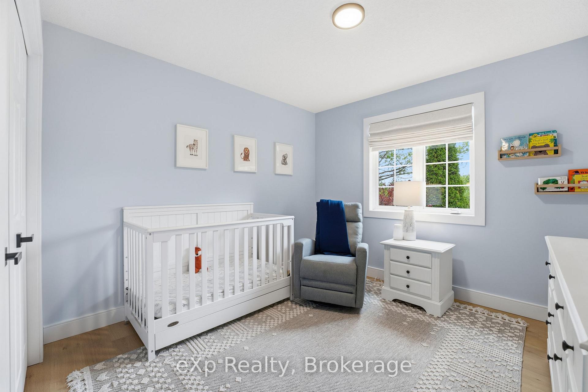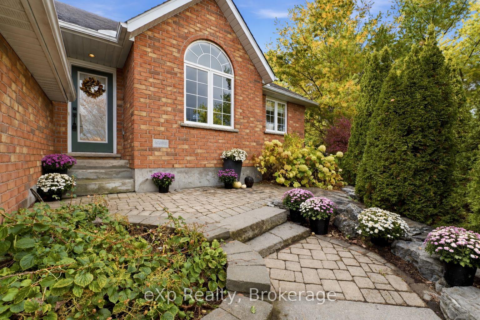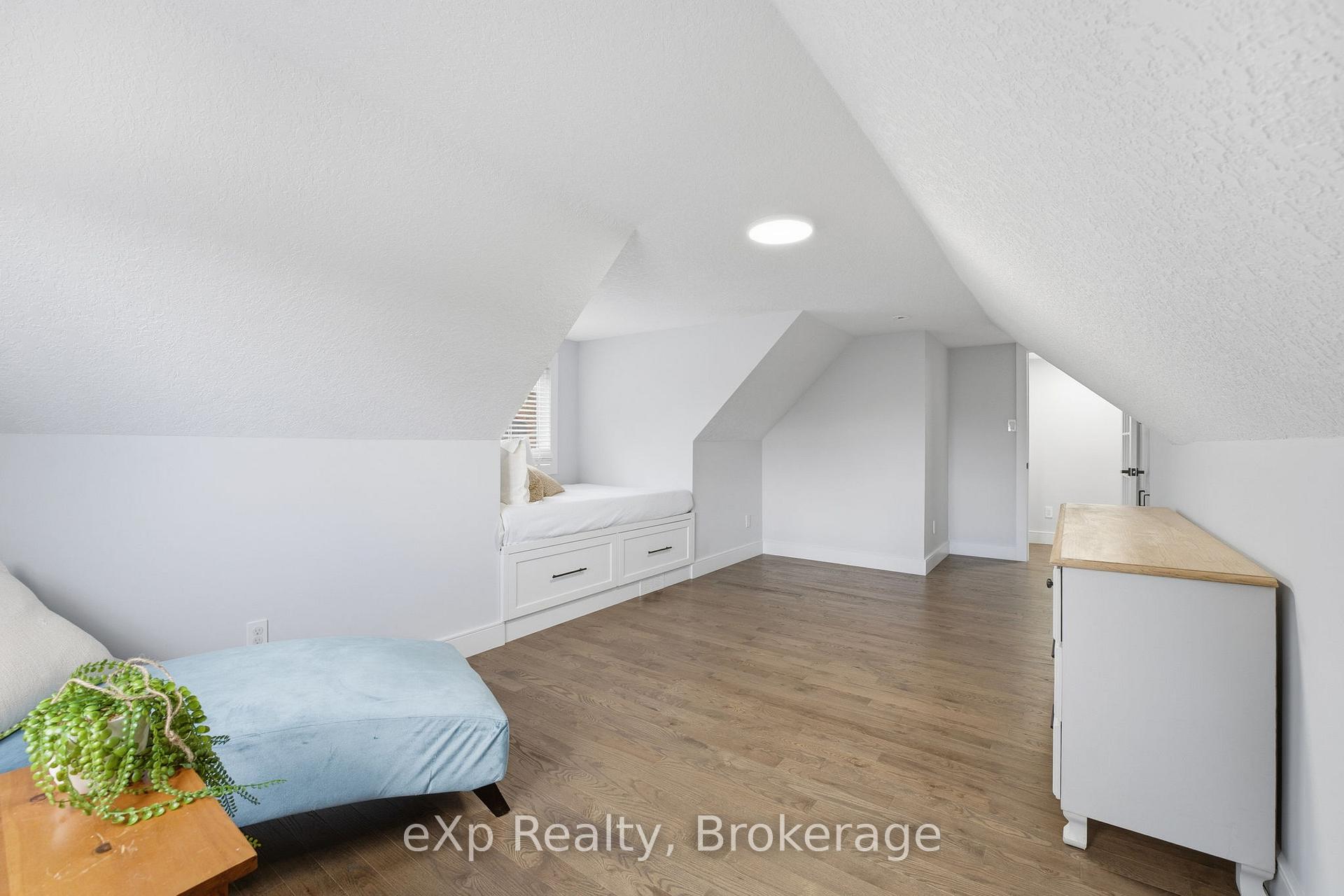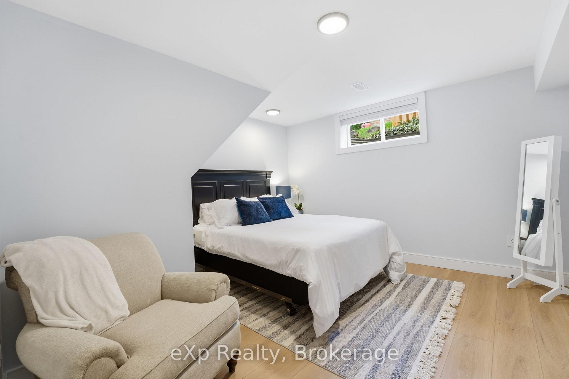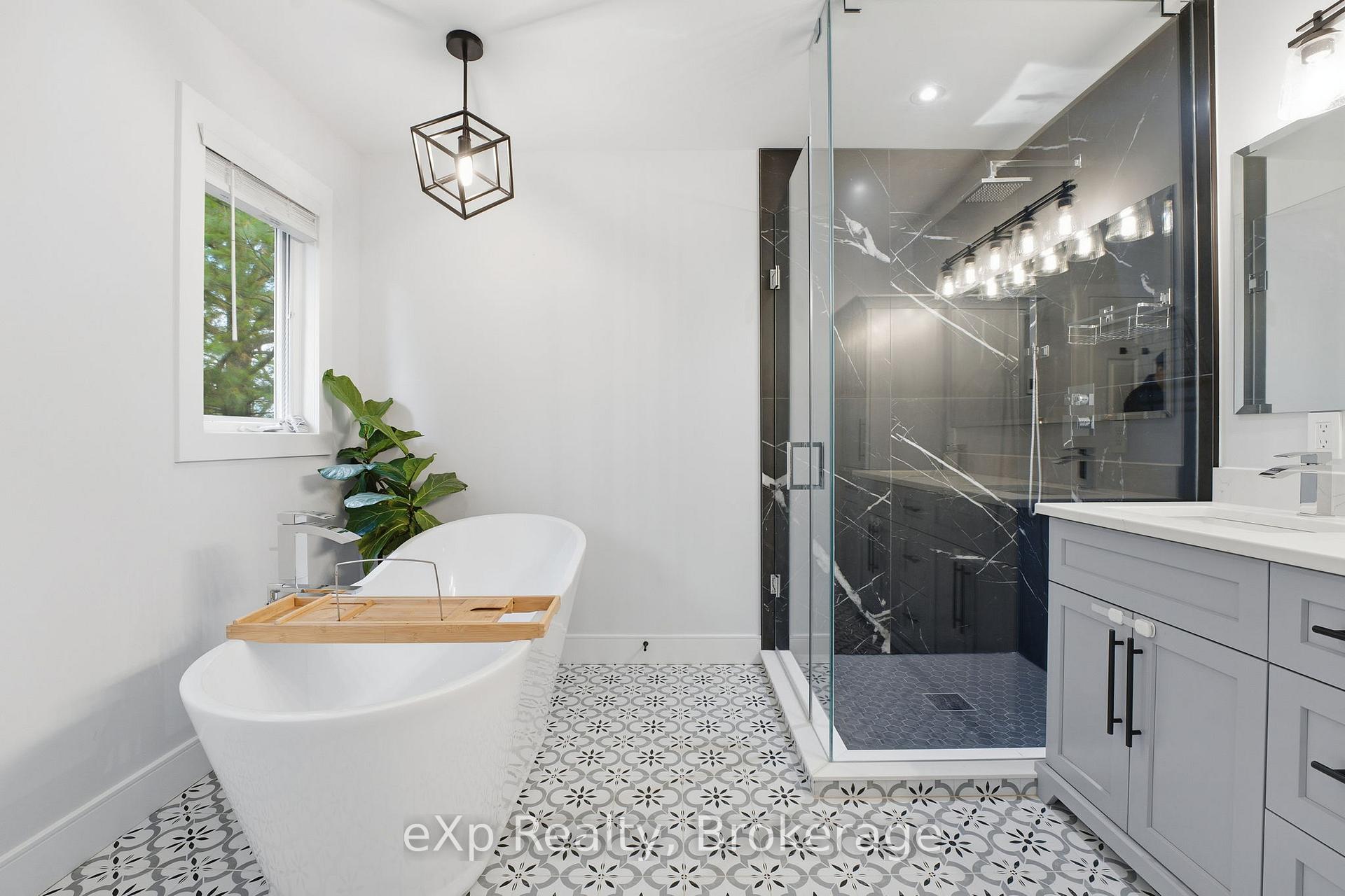 This elegant, fully upgraded raised bungaloft offers over 3,000 sq ft of finished living space, ideally situated on a quiet cul-de-sac in the desirable south end of Elora. Set on a private, mature lot with 108′ of frontage and surrounded by established trees, this home delivers the perfect blend of comfort, space, and location.The open-concept main floor features a modern kitchen with quartz countertops, wide-plank engineered hardwood flooring, and elevated ceilings, all anchored by a cozy gas fireplace (2021). The main level includes three spacious bedrooms, highlighted by a stunning primary suite complete with a 5-piece ensuite, soaker tub, and heated floors.The fully finished lower level offers exceptional versatility with two additional bedrooms, a 3-piece bathroom with heated floors, and generous space for entertaining, a home gym, or family retreat.A bright and functional loft provides endless possibilities, ideal as a sixth bedroom, home office, playroom, or creative space. Professionally landscaped in 2024, the backyard features a lush lawn, a spacious deck (2023), elegant flagstone pathways, custom fencing, and natural stone steps leading toward the pedestrian bridge and downtown. All of this within walking distance to scenic trails, shops, and the charm of downtown Elora.