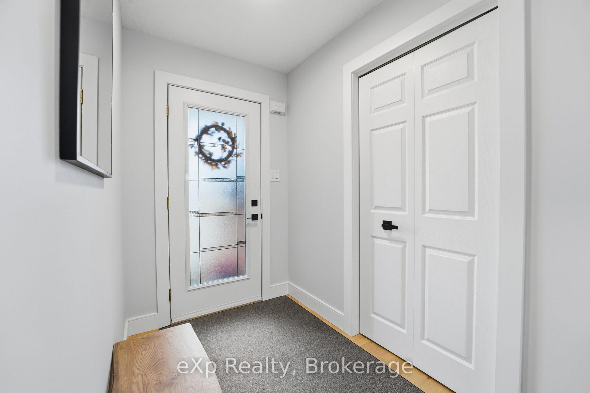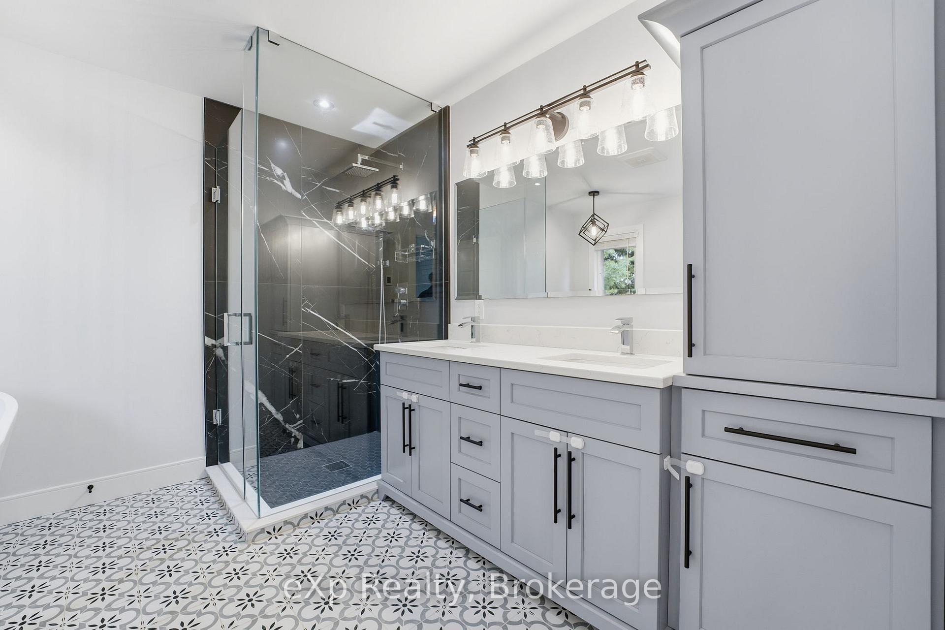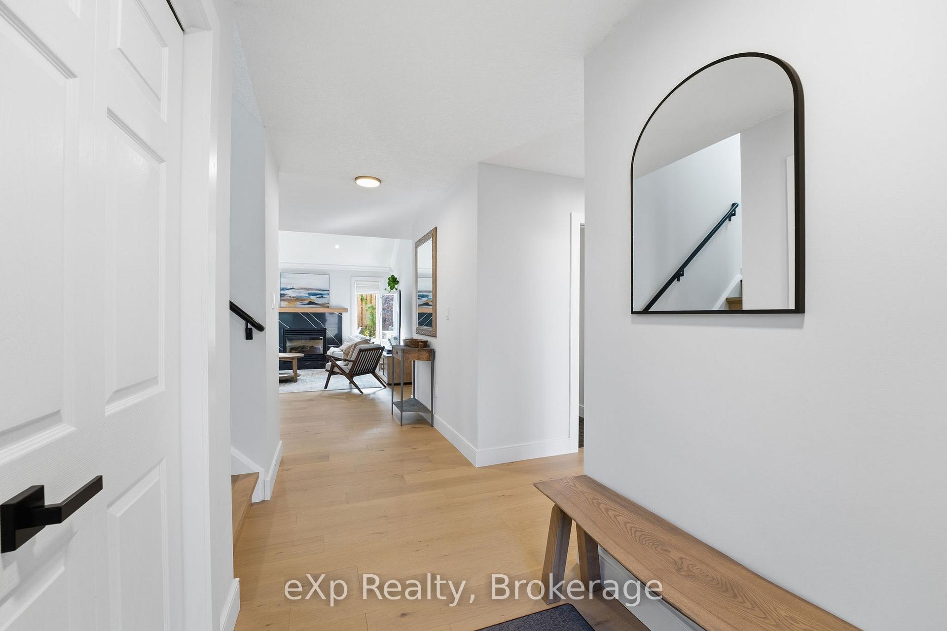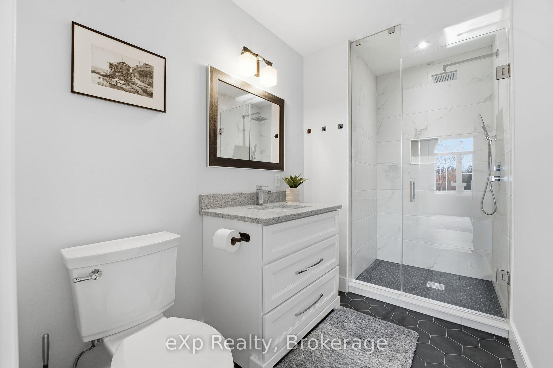 This elegant, fully upgraded raised bungaloft offers over 3,000 sq ft of finished living space, ideally situated on a quiet cul-de-sac in the desirable south end of Elora. Set on a private, mature lot with 108′ of frontage and surrounded by established trees, this home delivers the perfect blend of comfort, space, and location.The open-concept main floor features a modern kitchen with quartz countertops, wide-plank engineered hardwood flooring, and elevated ceilings, all anchored by a cozy gas fireplace (2021). The main level includes three spacious bedrooms, highlighted by a stunning primary suite complete with a 5-piece ensuite, soaker tub, and heated floors.The fully finished lower level offers exceptional versatility with two additional bedrooms, a 3-piece bathroom with heated floors, and generous space for entertaining, a home gym, or family retreat.A bright and functional loft provides endless possibilities, ideal as a sixth bedroom, home office, playroom, or creative space. Professionally landscaped in 2024, the backyard features a lush lawn, a spacious deck (2023), elegant flagstone pathways, custom fencing, and natural stone steps leading toward the pedestrian bridge and downtown. All of this within walking distance to scenic trails, shops, and the charm of downtown Elora.