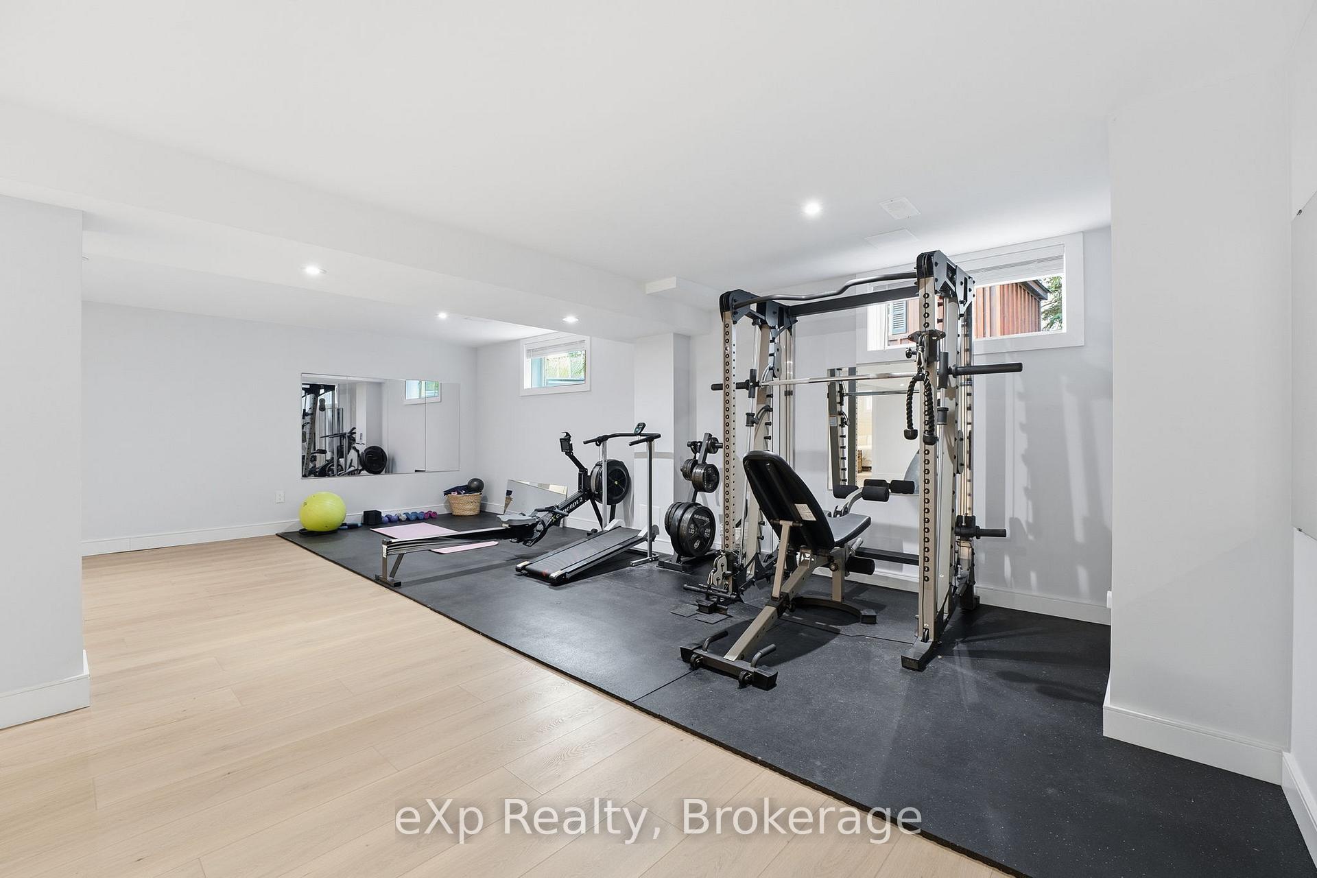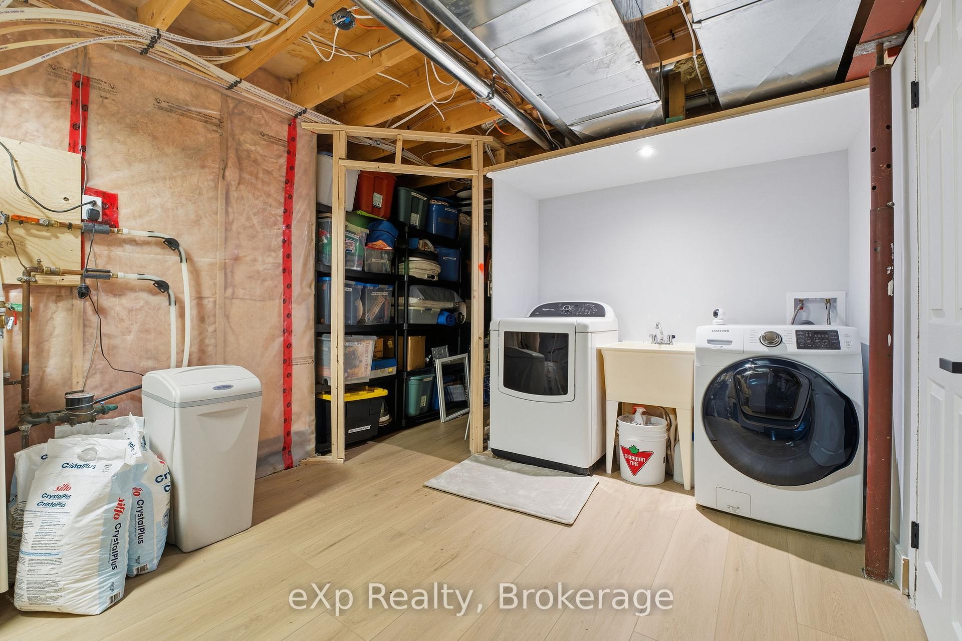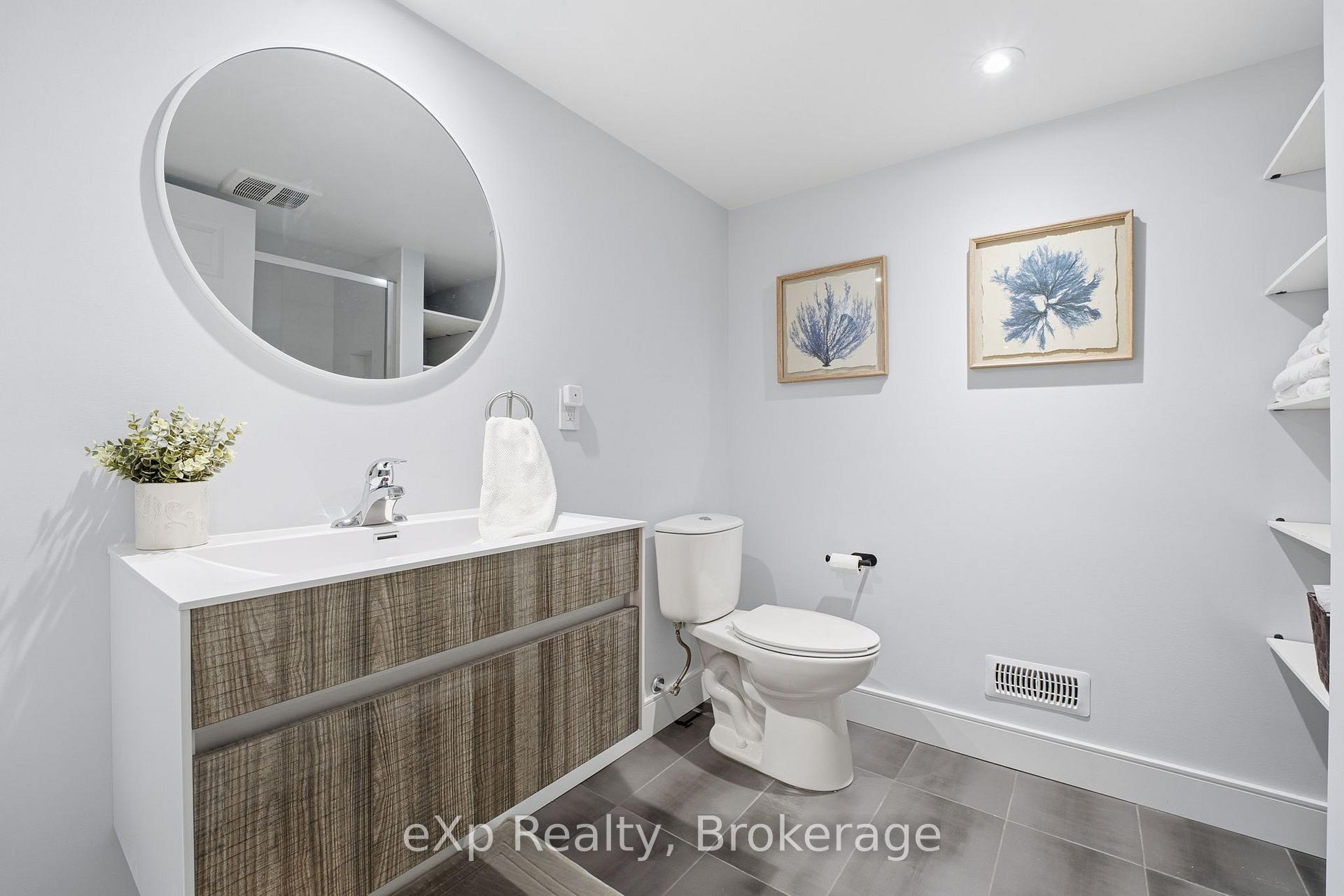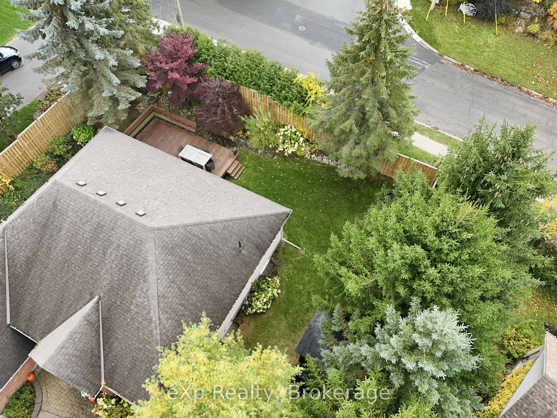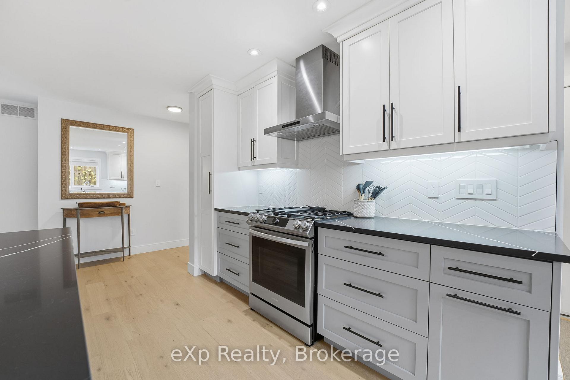 This elegant, fully upgraded raised bungaloft offers over 3,000 sq ft of finished living space, ideally situated on a quiet cul-de-sac in the desirable south end of Elora. Set on a private, mature lot with 108′ of frontage and surrounded by established trees, this home delivers the perfect blend of comfort, space, and location.The open-concept main floor features a modern kitchen with quartz countertops, wide-plank engineered hardwood flooring, and elevated ceilings, all anchored by a cozy gas fireplace (2021). The main level includes three spacious bedrooms, highlighted by a stunning primary suite complete with a 5-piece ensuite, soaker tub, and heated floors.The fully finished lower level offers exceptional versatility with two additional bedrooms, a 3-piece bathroom with heated floors, and generous space for entertaining, a home gym, or family retreat.A bright and functional loft provides endless possibilities, ideal as a sixth bedroom, home office, playroom, or creative space. Professionally landscaped in 2024, the backyard features a lush lawn, a spacious deck (2023), elegant flagstone pathways, custom fencing, and natural stone steps leading toward the pedestrian bridge and downtown. All of this within walking distance to scenic trails, shops, and the charm of downtown Elora.