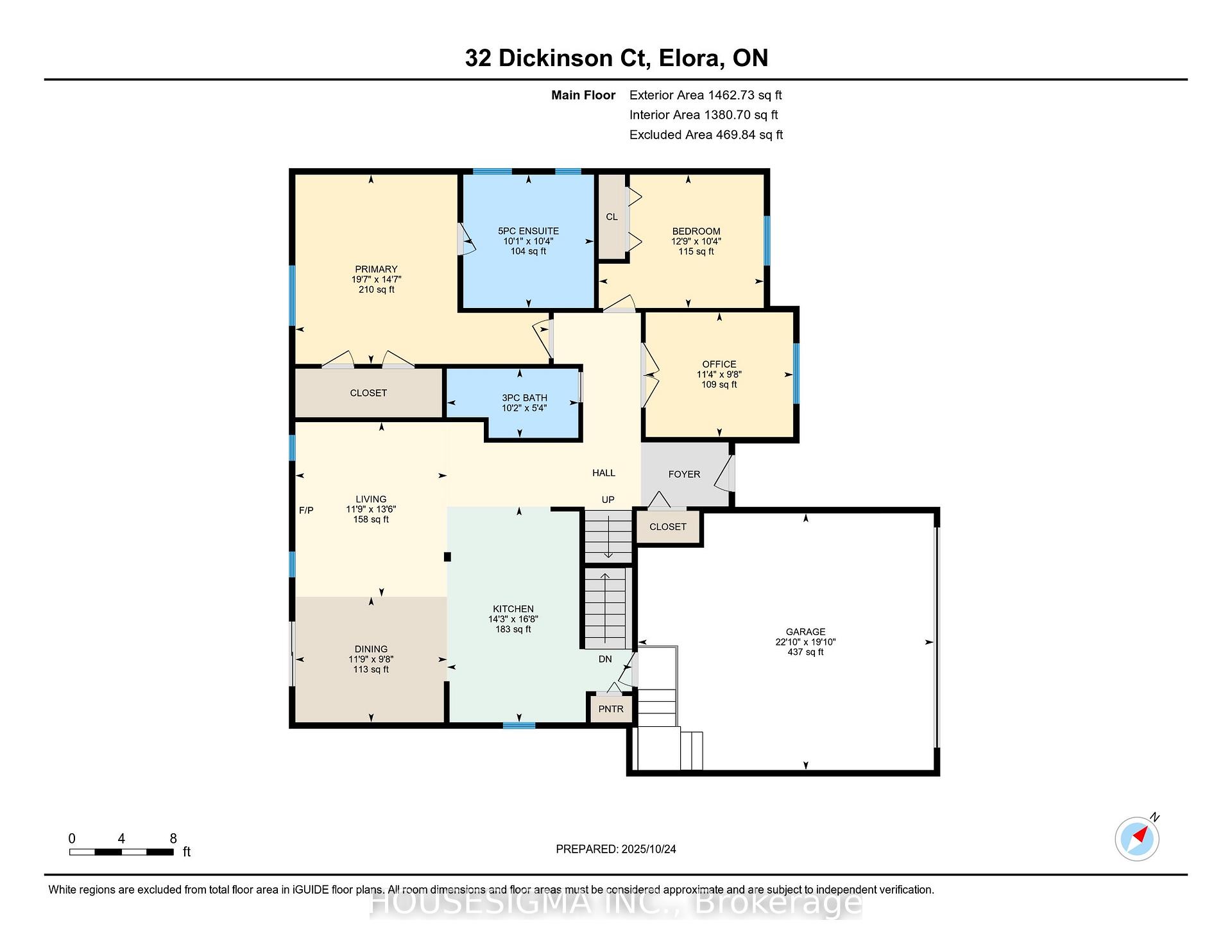 Top five (5) features of this home. (1) Over 3,000 ft2 of living space and 108′ frontage on a quiet cul-de-sac, this home welcomes you to a totally private mature lot. (2) Pride and Quality workmanship evident throughout. Enter through a new modern door into an open concept modern kitchen/dining/living area with wide plank engineered hardwood, quartz countertops, elevated ceiling and gas fireplace (2021). (3) Great-sized 3+2 bedrooms complete with a Gorgeous primary complete w/5 pc ensuite including soaker tub and heated floors. (4). Completely finished lower level with lots of room (1,308 ft2) to make your own complemented by 2 simple and and beautiful bedrooms with 3-pc WR w/heated floors. (5) Professionally landscaped backyard (July 2024) with new topsoil, grading, drainage, and lush sod for a vibrant, low-maintenance lawn. Elegant flagstone pathway along the home and custom fence with natural stone steps (Grand River Stone) offering direct access to the pedestrian bridge and downtown. Refinished custom wood shed with new footings, roof, and stain. Spacious wood deck, beautifully sanded and re-stained in 2023, perfect for outdoor entertaining and relaxation..Decadent. Charming. Home. Don’t miss it.