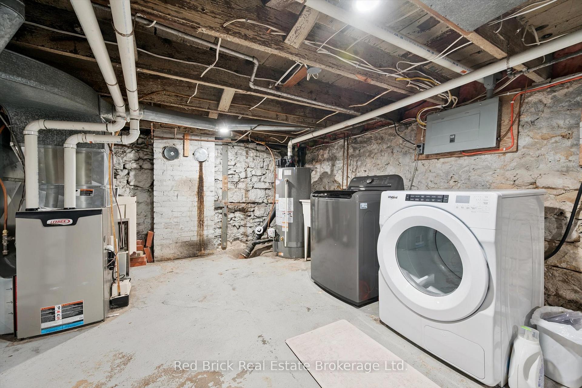 This charming stone semi-detached home is located in the heart of Downtown Guelph, steps from shopping, restaurants, pubs, cafés, riverside trails, and numerous other amenities. When you step inside, you’ll immediately notice how quiet and peaceful the home feels, despite its central location. You’ll appreciate the timeless character of this historic property, thoughtfully complemented by modern updates throughout. The main level offers a light-filled living space, a spacious dining area perfect for entertaining, and an updated kitchen complete with stainless steel appliances. Upstairs, you’ll find three generously sized bedrooms, including a bright and spacious primary, along with a chic 4-piece bathroom. The basement provides a significant amount of storage space in addition to a dedicated laundry area. This property also features a bonus mudroom, parking for two cars, and a fenced backyard. Major updates include electrical (2024), new roof and sheathing (2020), and washer, dryer, fridge, and stove (2024).