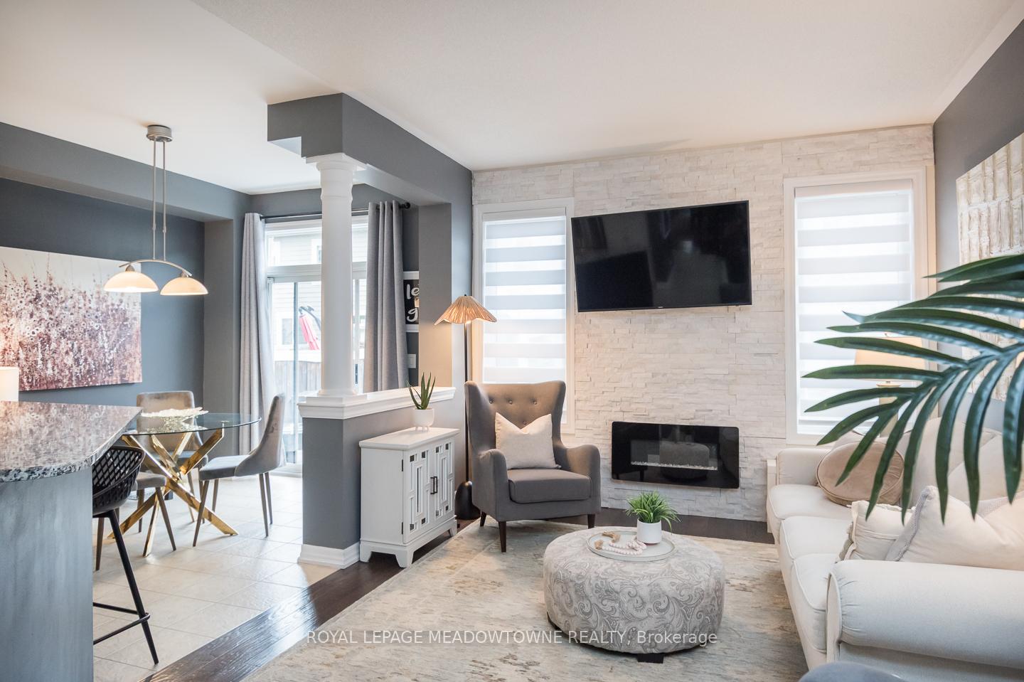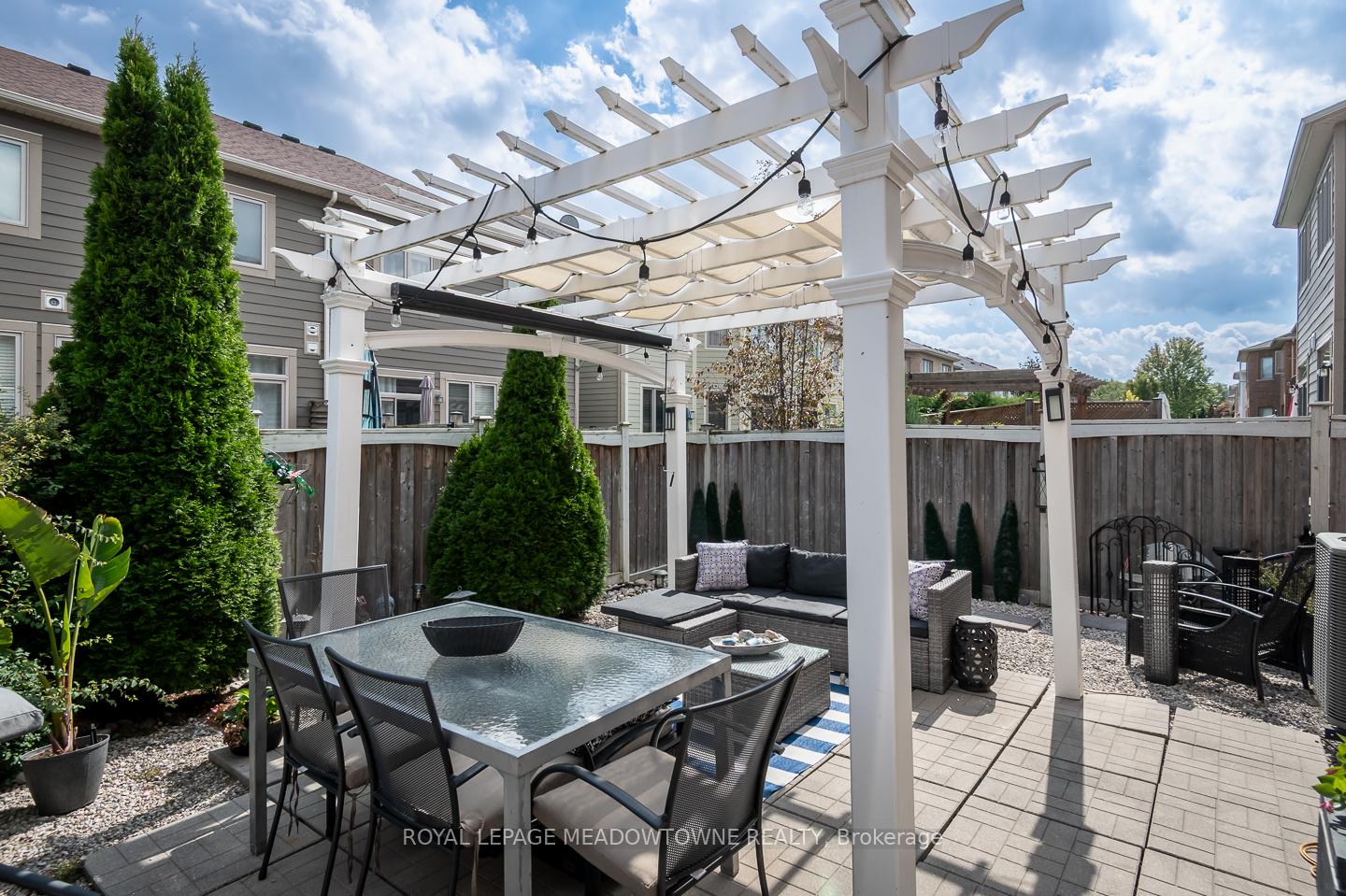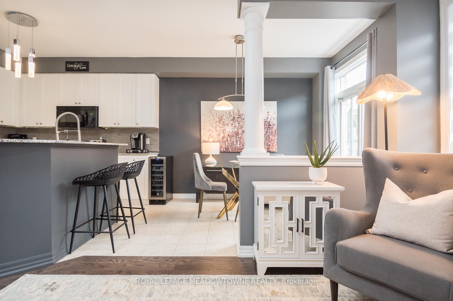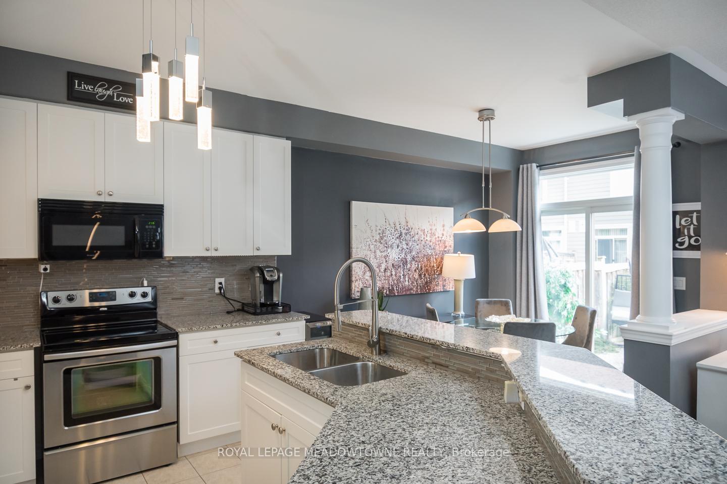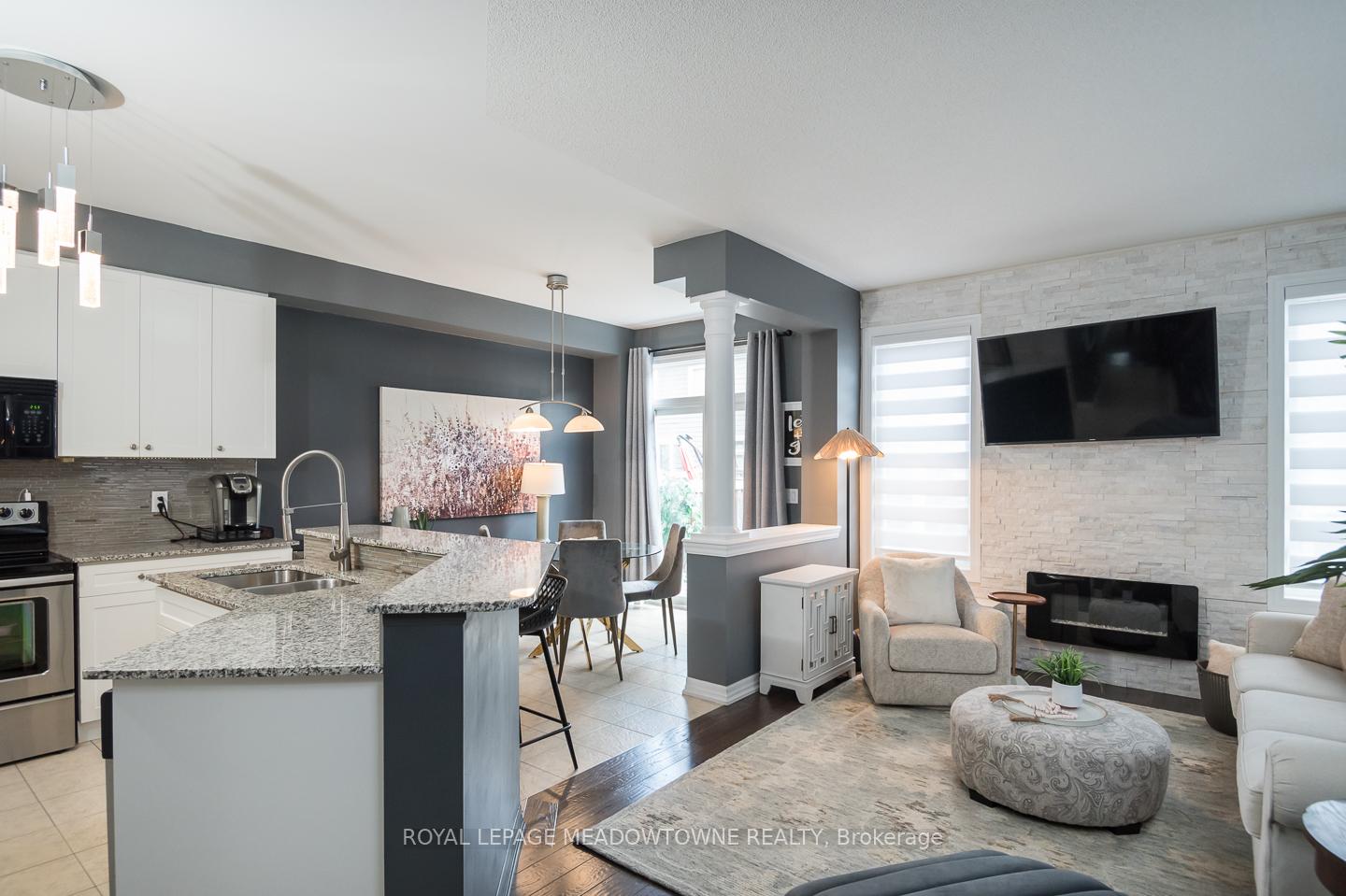 Welcome to 32 Forbes Terrace, a Heathwood-built freehold townhome in Miltons prestigious Scott neighbourhood. Renowned for their superior craftsmanship, Heathwood delivers a home that blends sophistication, comfort, and thoughtful design. A rare find among townhouses, this residence offers soaring 9 ft ceilings on the main flooradding light, volume, and a sense of luxury you simply dont see every day. Even better, the home is connected only at the garage, with no shared interior walls, offering privacy that sets it apart. Inside, engineered hardwood runs throughout, complementing an open-concept layout anchored by a chefs kitchen with granite counters, stainless steel appliances, and a large breakfast bar. Step directly from the kitchen into a low-maintenance backyard complete with patio stones, river rock, a pergola, and gas line to BBQ. The living room features a striking stone-surround electric fireplace, while the distinct dining room and bonus second-floor office nook provide versatile living space. Upstairs youll find three spacious bedrooms, including a primary retreat with double closets and a spa-like 5pc ensuite. Laundry on the bedroom level and a 4pc main bath add everyday convenience. An unfinished basement with oversized windows offers endless potential. With parking for two (one in garage, one in driveway), premium finishes, and a setting among diverse, upscale homes, this Heathwood townhome is a rare opportunity in one of Miltons most desirable communities.