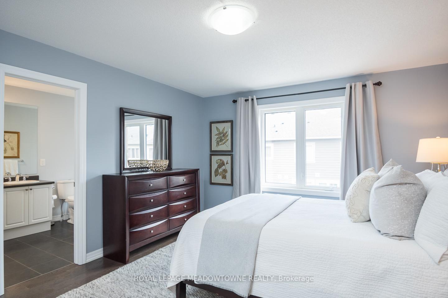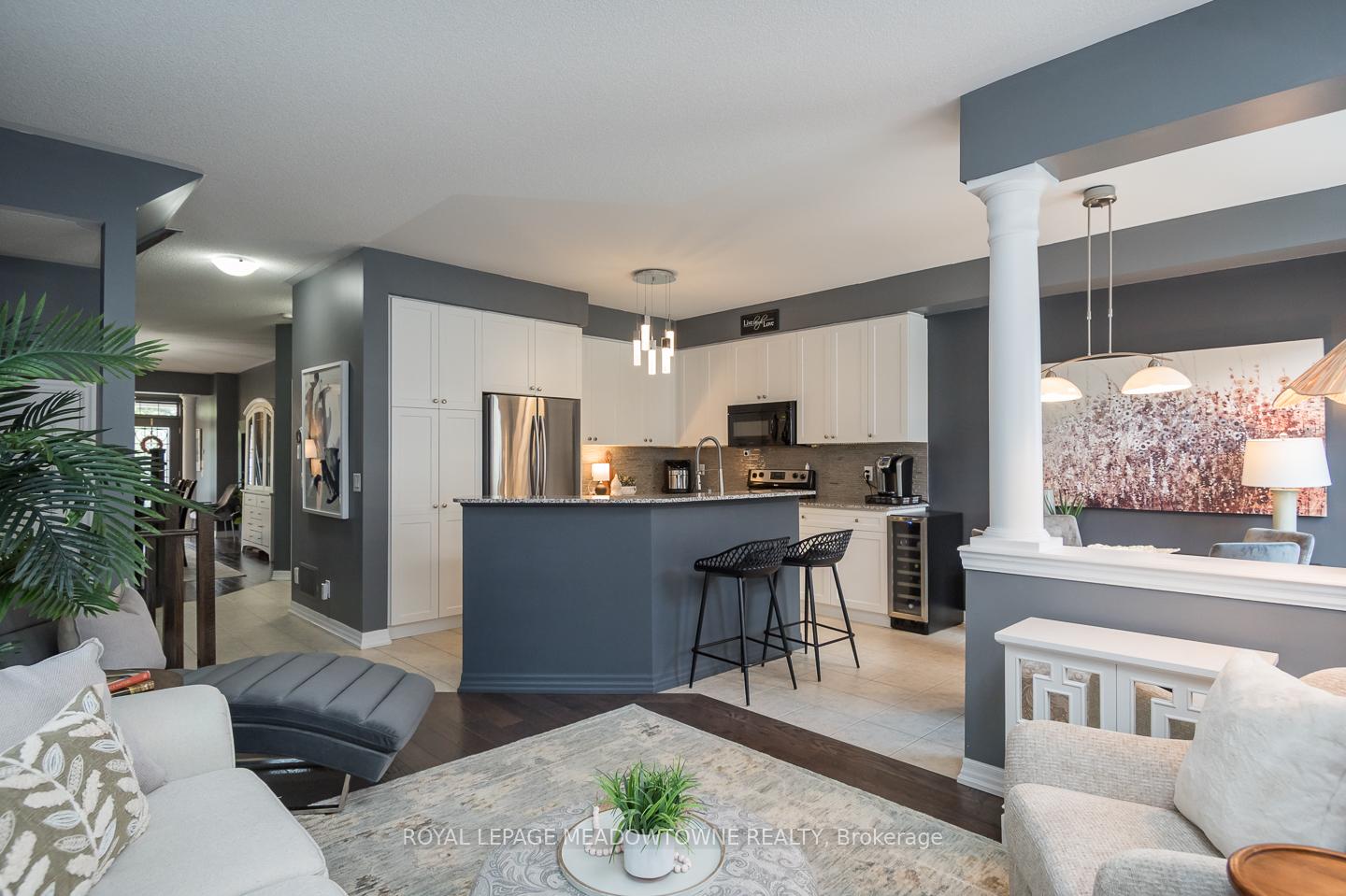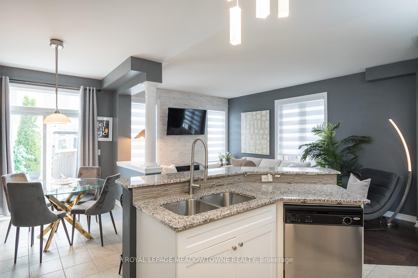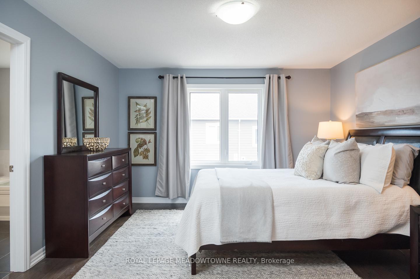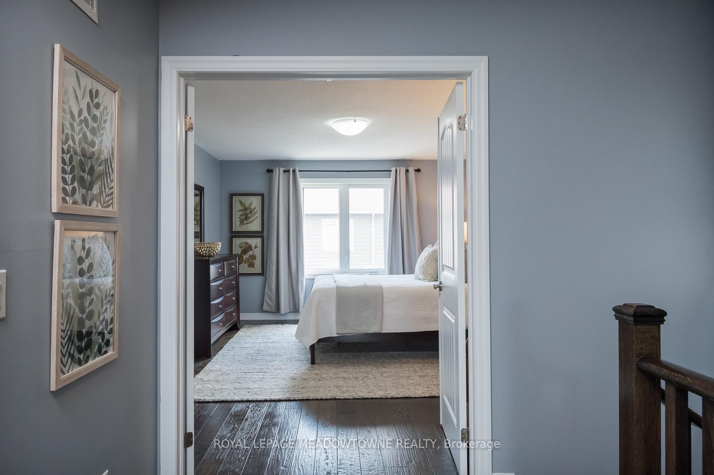 Welcome to 32 Forbes Terrace, a Heathwood-built freehold townhome in Miltons prestigious Scott neighbourhood. Renowned for their superior craftsmanship, Heathwood delivers a home that blends sophistication, comfort, and thoughtful design. A rare find among townhouses, this residence offers soaring 9 ft ceilings on the main flooradding light, volume, and a sense of luxury you simply dont see every day. Even better, the home is connected only at the garage, with no shared interior walls, offering privacy that sets it apart. Inside, engineered hardwood runs throughout, complementing an open-concept layout anchored by a chefs kitchen with granite counters, stainless steel appliances, and a large breakfast bar. Step directly from the kitchen into a low-maintenance backyard complete with patio stones, river rock, a pergola, and gas line to BBQ. The living room features a striking stone-surround electric fireplace, while the distinct dining room and bonus second-floor office nook provide versatile living space. Upstairs youll find three spacious bedrooms, including a primary retreat with double closets and a spa-like 5pc ensuite. Laundry on the bedroom level and a 4pc main bath add everyday convenience. An unfinished basement with oversized windows offers endless potential. With parking for two (one in garage, one in driveway), premium finishes, and a setting among diverse, upscale homes, this Heathwood townhome is a rare opportunity in one of Miltons most desirable communities.