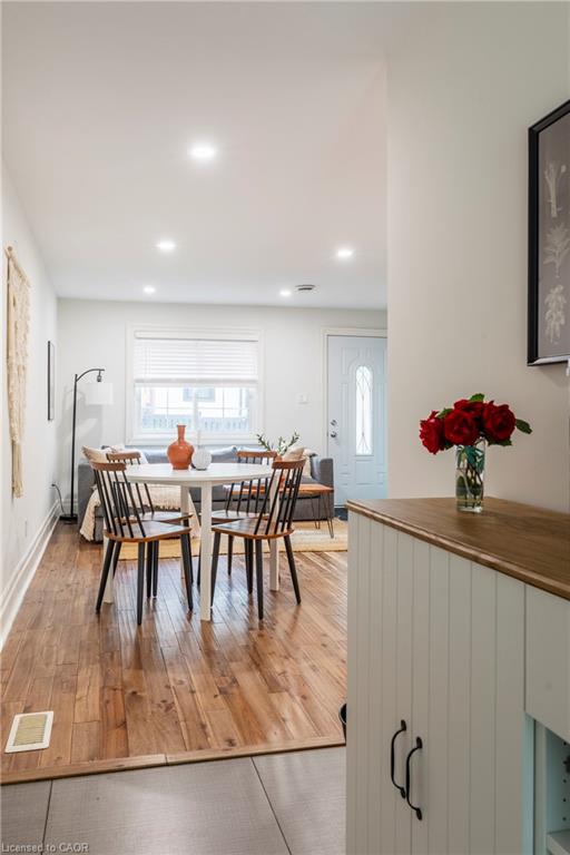This lovely bungalow provides the perfect blend of modern updates with cottage-in-the-city charm. Walking up to 32 Pearl St S you are welcomed by incredible curb appeal thanks to the wood siding, rose bushes and beach grass. Stepping in you’ll find an open concept and freshly painted living and dining space with decorative fireplace, new pot lights and lots of natural light. This home features two full-sized bedrooms and a 4-piece bath, updated kitchen with a pot-filler, laundry and room for storage. Through the kitchen you’ll find sliding doors leading to a large backyard with room to garden, BBQ, relax and entertain. Strathcona South is a charming and connected neighbourhood offering convenient proximity to Locke St, Victoria Park, transit routes and shopping. 32 Pearl St S could be the perfect starter home or downsize and represents one-floor living at its best – compact and manageable without feeling small. Lots of updates, no rentals and lovingly maintained.