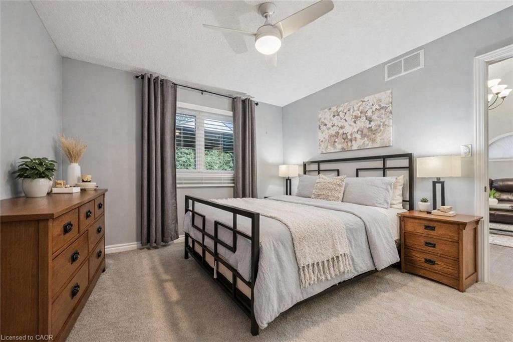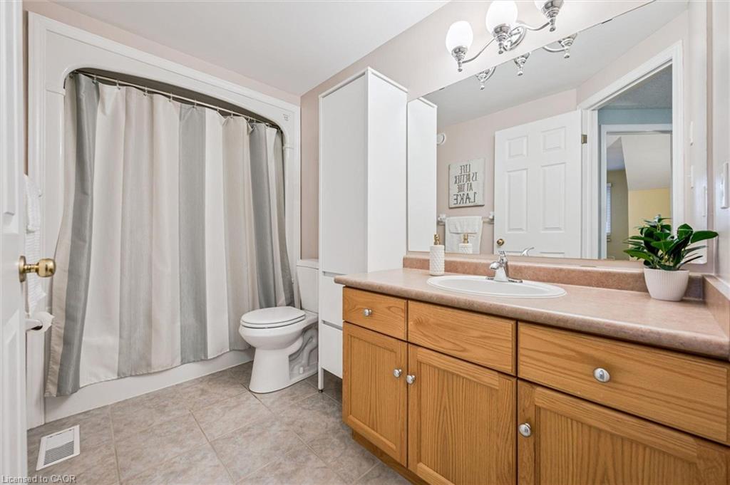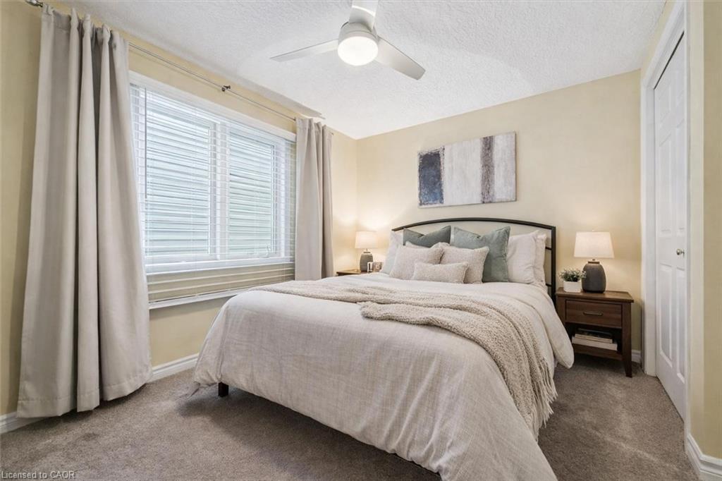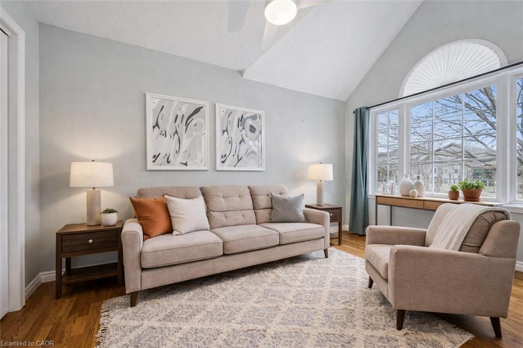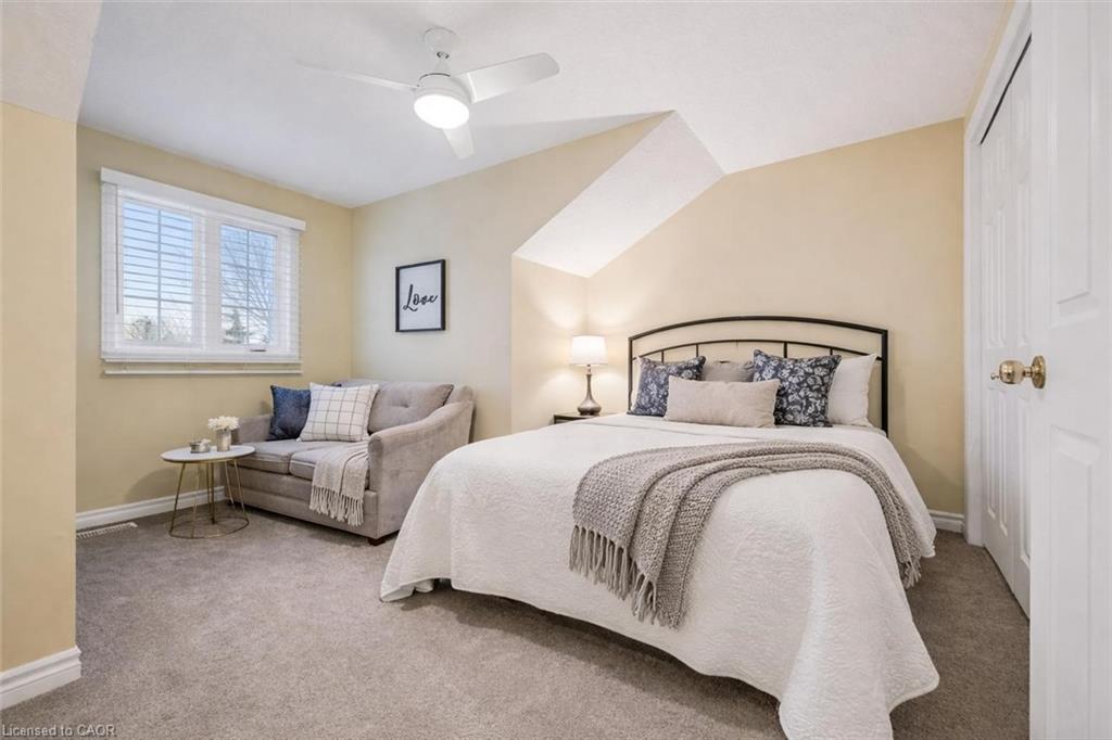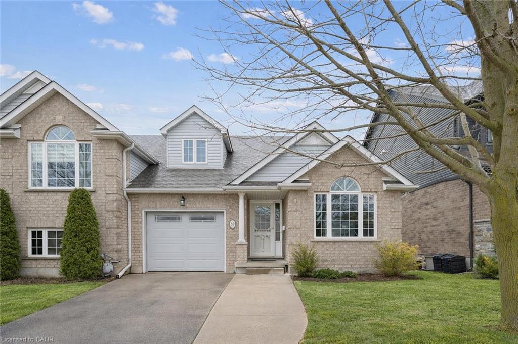 32 Scott St is a spectacular 4-bdrm end-unit bungaloft townhouse backing onto greenspace, offering the perfect blend of low-maintenance living, functional space & unbeatable location in the heart of Fergus! Step inside to bright & inviting eat-in kitchen W/timeless subway tile backsplash, high-end S/S appliances & ample counter space—designed for both everyday living & effortless entertaining. The adjacent living room is truly the heart of the home W/engineered hardwood floors, vaulted ceilings and an abundance of natural light pouring in through large windows & sliding doors—seamlessly connecting your indoor & outdoor living spaces. Main floor is thoughtfully designed for both convenience & flexibility. Spacious primary bdrm W/double closet & 4pc ensuite with shower/tub combo. At the front of the home, an add’l bdrm W/vaulted ceilings, large window & double closet provides incredible versatility—perfect as a home office, formal dining area or sitting room. You’ll also find convenient main-floor powder room with oversized vanity, along with main-floor laundry to simplify day-to-day living. Upstairs you’ll find 2 add’l bdrms both with double closets—along with 4pc bathroom making this an ideal setup for families, guests or multi-generational living. Unfinished basement offers excellent potential complete with a bathroom rough-in & ready for your finishing touches. Notable updates: new water softener, furnace (2023) & roof (approx. 2015). Step outside to private back deck where mature trees create a peaceful low-maintenance outdoor space. Backing directly onto J.D. Hogarth Public School, you’ll enjoy added privacy with no rear neighbours & wide-open greenspace behind. Around the corner from Millburn Park Splash Pad—perfect for summer days with the kids & mins from shopping centres offering all the essentials. Plus enjoy everything downtown Fergus has to offer from charming shops & local restaurants to scenic river walks. A true small-town feel with a vibrant community