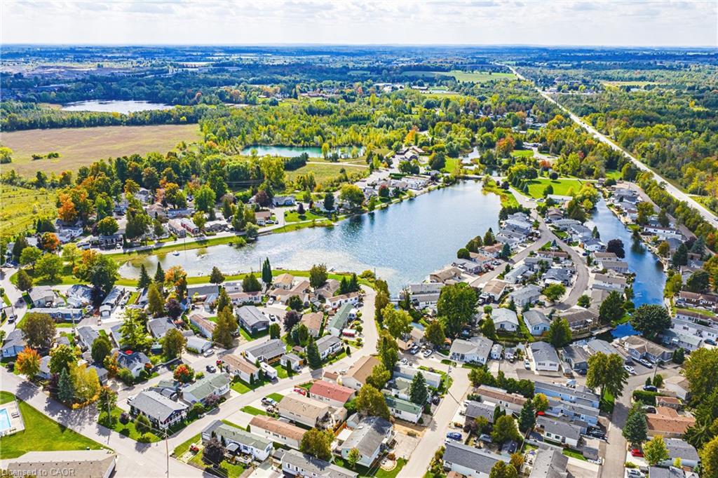Designed for easy living, this modular home feels just like a traditional detached bungalow. Inside, you’ll find spacious bedrooms, two full bathrooms, and an inviting layout perfect for both everyday comfort and entertaining. Start your mornings on the welcoming front porch and unwind in the evenings on your private rear deck, surrounded by peaceful community surroundings. Practical features include a double-wide driveway with plenty of room for cars, trucks, or visiting guests. Located just 5 minutes from the south end of Guelph, you’ll have quick access to shopping, dining, and everyday essentials. Commuters will appreciate the easy connection to Hwy 401 via Hwy 6, making trips to Kitchener, Milton, and the GTA simple and convenient. Mini Lakes offers a lifestyle that’s hard to match, with spring-fed lakes, fishing, a heated outdoor pool, recreation centre, bocce courts, walking trails, garden plots, and an active, welcoming community. Peaceful. Convenient. Connected. A place where you can truly feel at home.