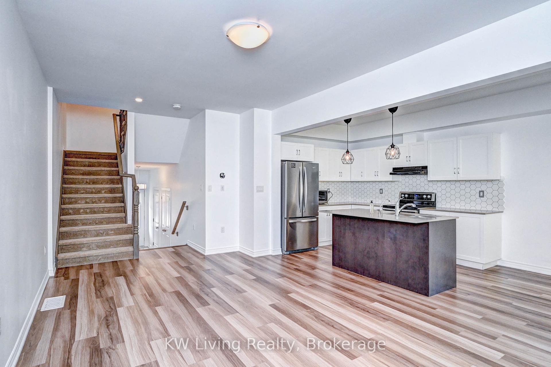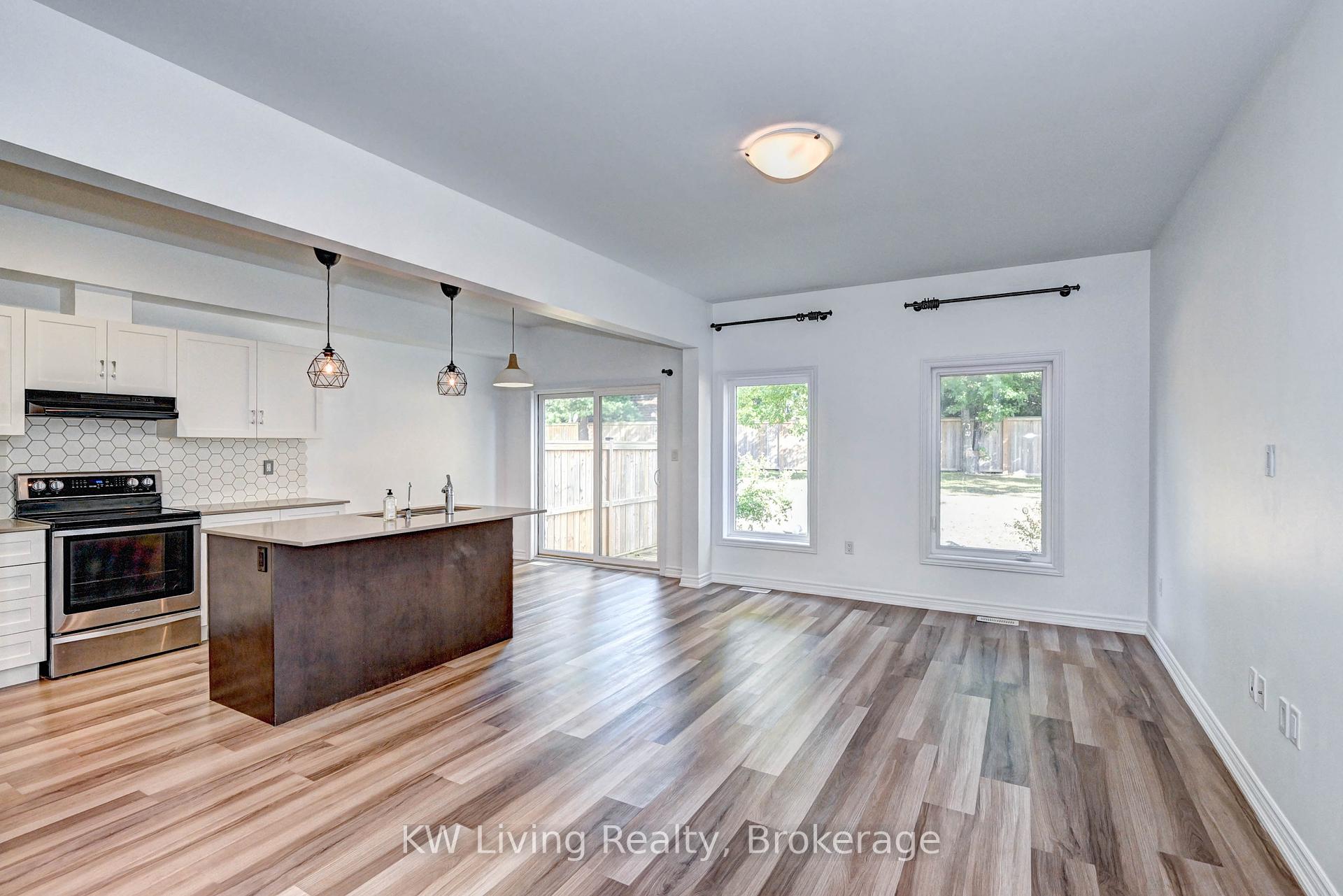 Move-In Ready! Rarely Offered Traditional Townhouse Backing On Green Field With a Large Deck. Freshly Painted & The Whole House Has Been Well Maintained Like New. This Spacious Home Have a Very Functional Floor Plan With Good Size 3Beds And 3Washrooms, Open Concept Kitchen With Modern White Cabinet Combined With Living Room, S/S Appliances, Double Door Fridge, Beautiful Designer Light Fixtures, Centre Island With Breakfast area, Quartz Countertops & Backsplash, Big basement Space Can be Used As Storage Room Or Playroom, Minutes to Hwy401, Schools,Library, Cambridge Downtown Plaza. Extras: S/S Appliances: Fridge, Stove, Dishwasher; W/D,, Water Softener Is Owned, Water Filter Installed for whole House water system.