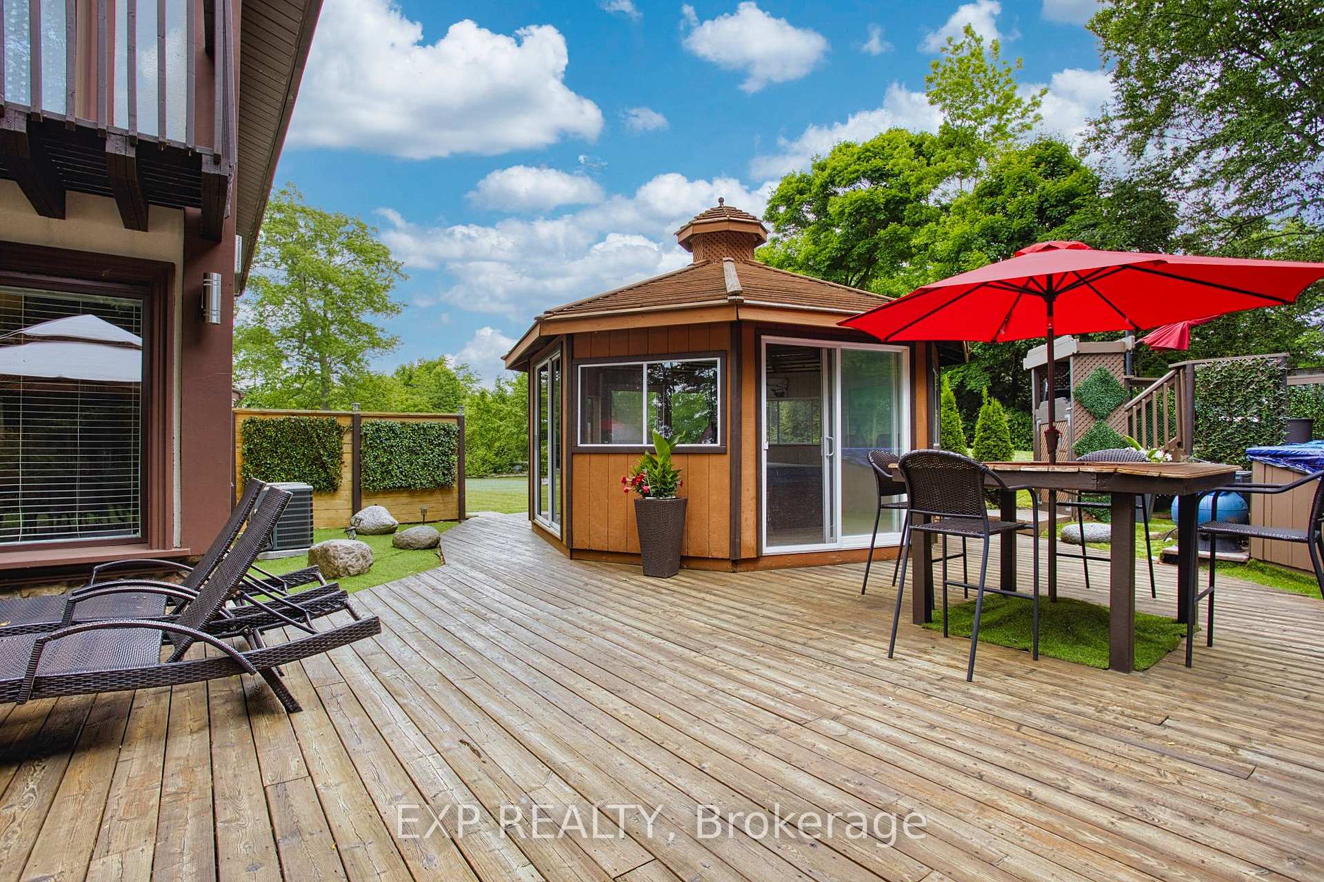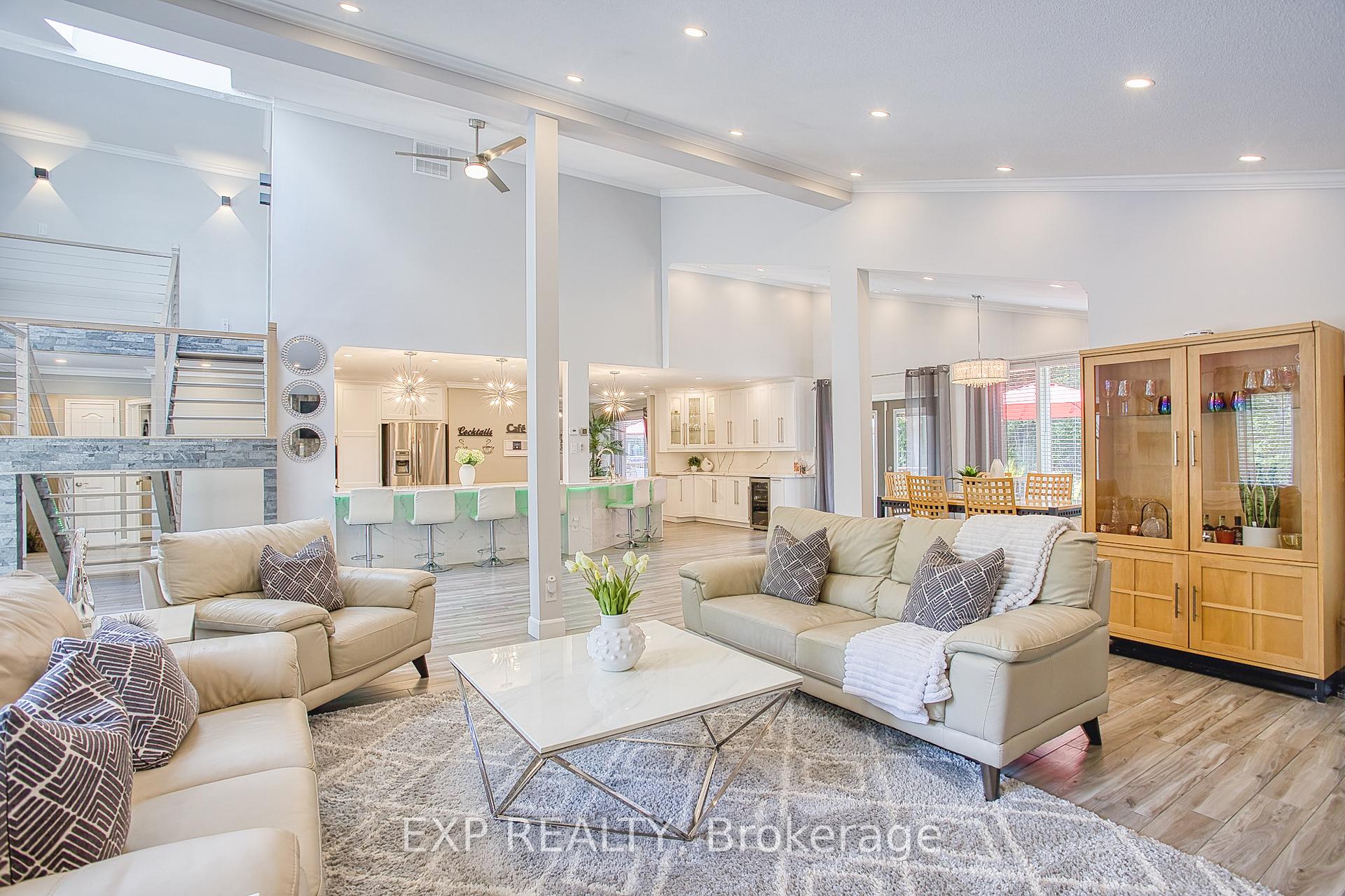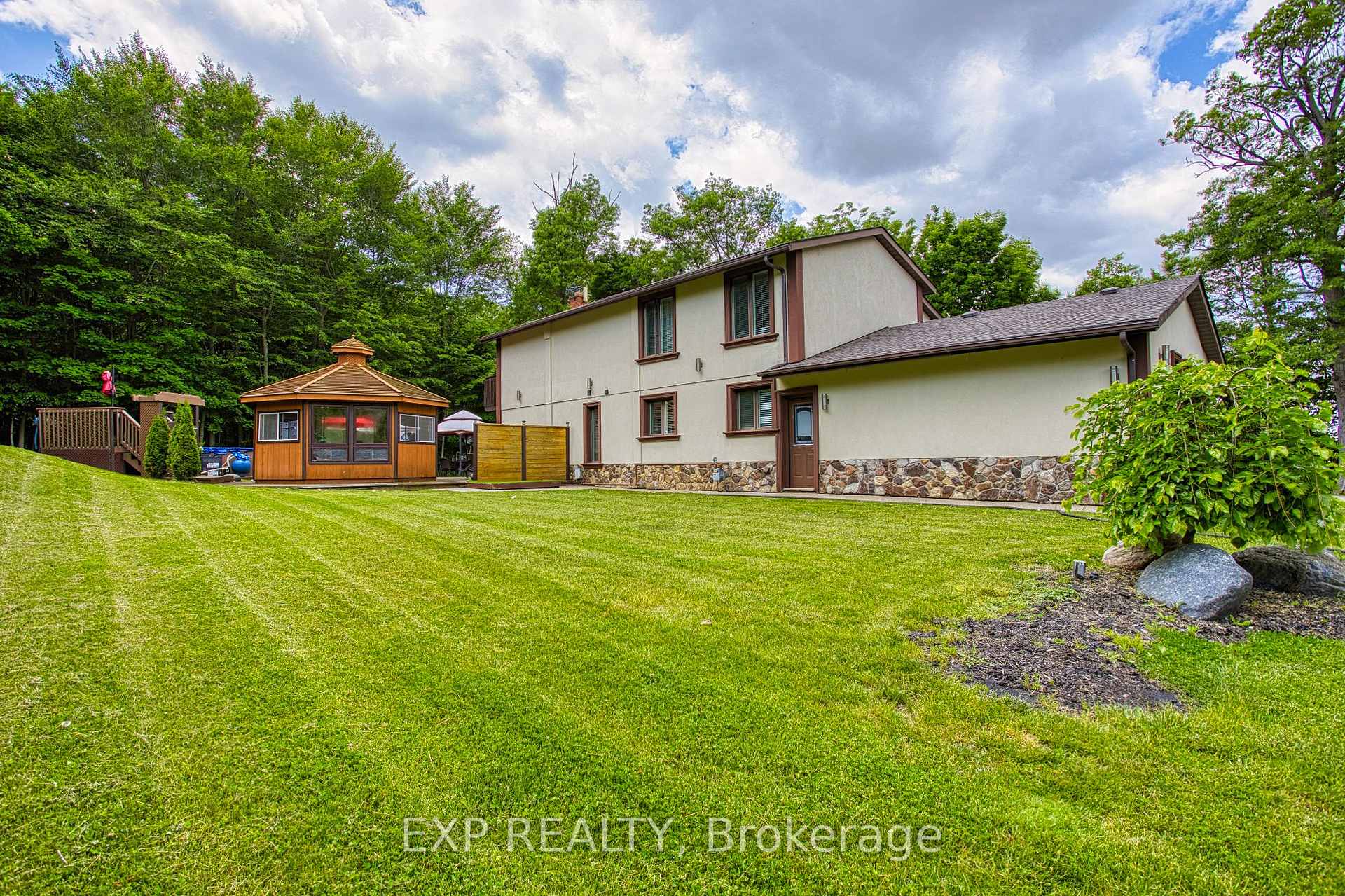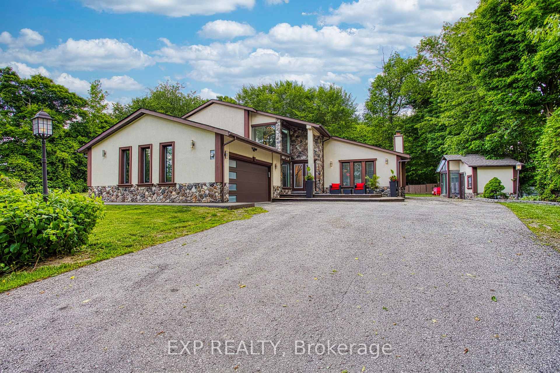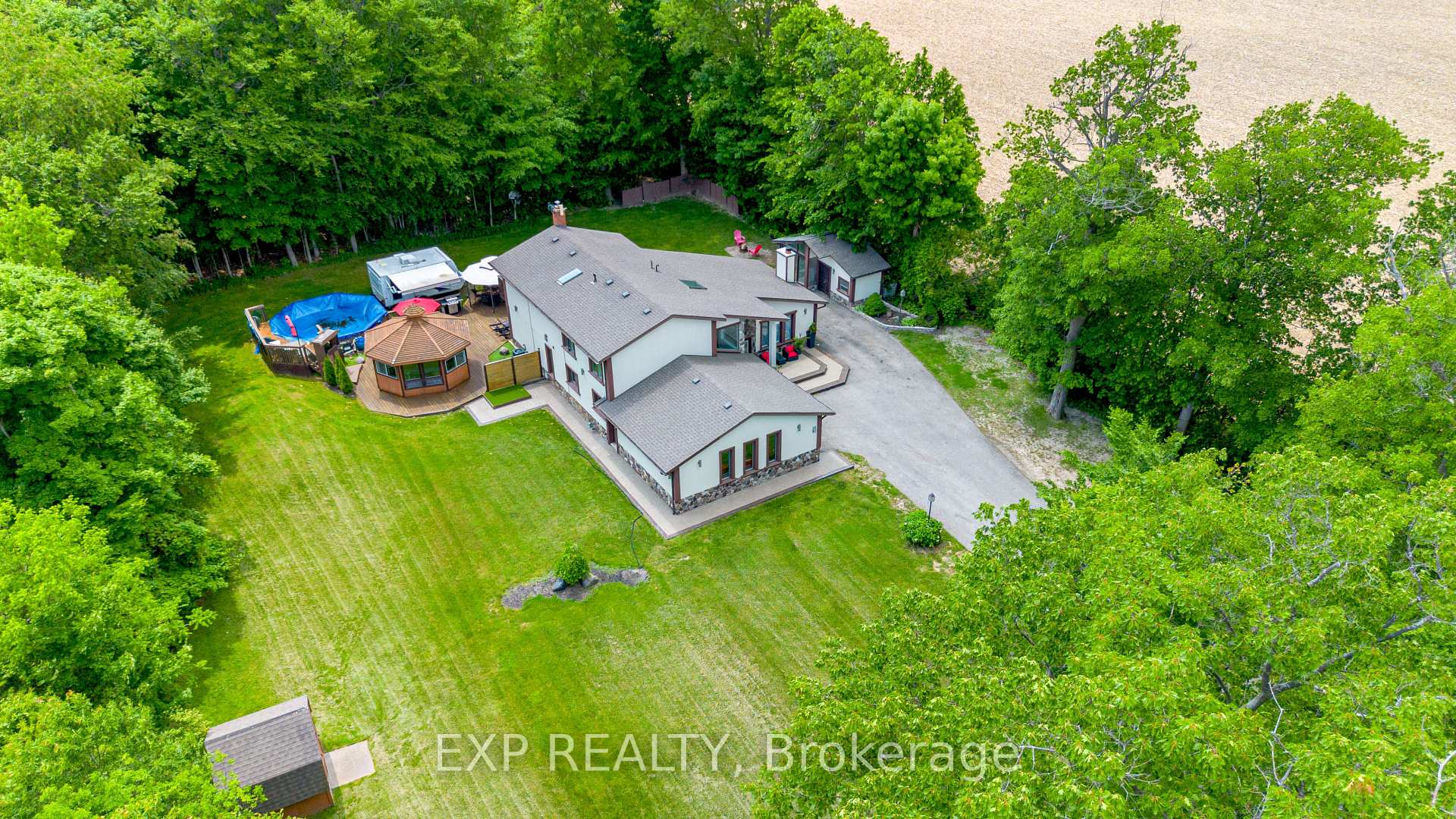 Welcome to 3263 Guyatt Road a truly unique rural retreat just minutes from the heart of Binbrook. Nestled on a large, private lot with no rear neighbours and no neighbour to one side, this custom home backs directly onto a serene forest, offering ultimate privacy and a peaceful, nature filled setting. This thoughtfully designed, newly renovated, home features a full bathroom for every bedroom, with three of the four bedrooms offering private ensuites perfect for families or hosting guests in comfort. The primary suite is a luxurious escape, complete with a private balcony, spa-like ensuite, and a dry sauna for the ultimate in-home relaxation. With two furnaces and two air conditioners, year-round comfort is ensured. 3 fireplaces: gas, electric, and Wood(perfect for winter) will add to the coziness. The home also features a 2-car garage, a large driveway with ample parking, and a stone and stucco exterior that offers timeless curb appeal, and a fully finished basement for entertaining. The backyard is a dream come true for outdoor living. Enjoy a swim in the above-ground pool, relax under the gazebo, retreat to the detached sunroom/shed, or unwind in the hot tub gazebo with an outhouse-style setup all while surrounded by tranquil green space. Located just a short drive to Binbrook’s town centre, this property offers the best of both worlds: peaceful country living with convenient access to amenities. A rare and special find in one of the areas most desirable rural pockets.