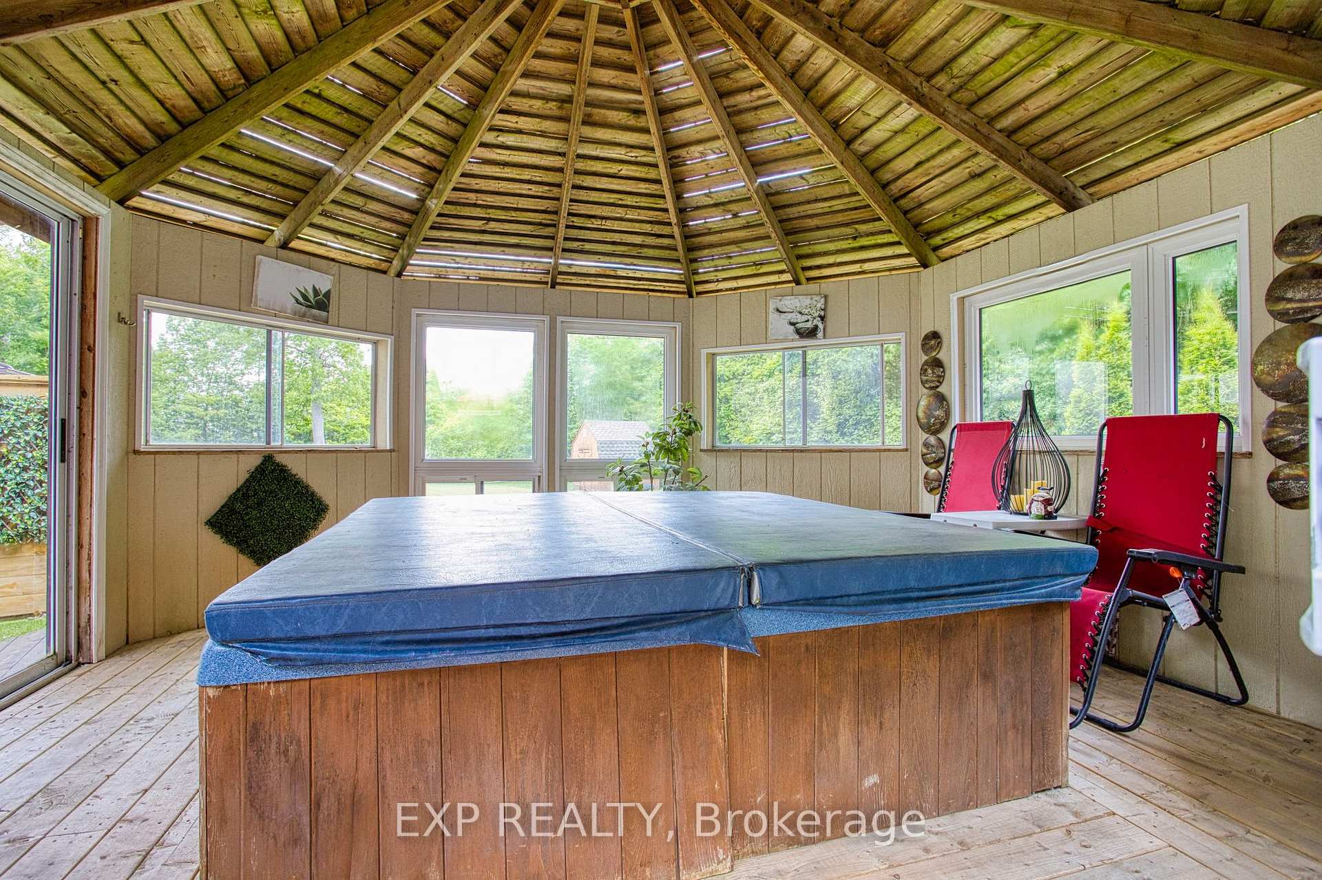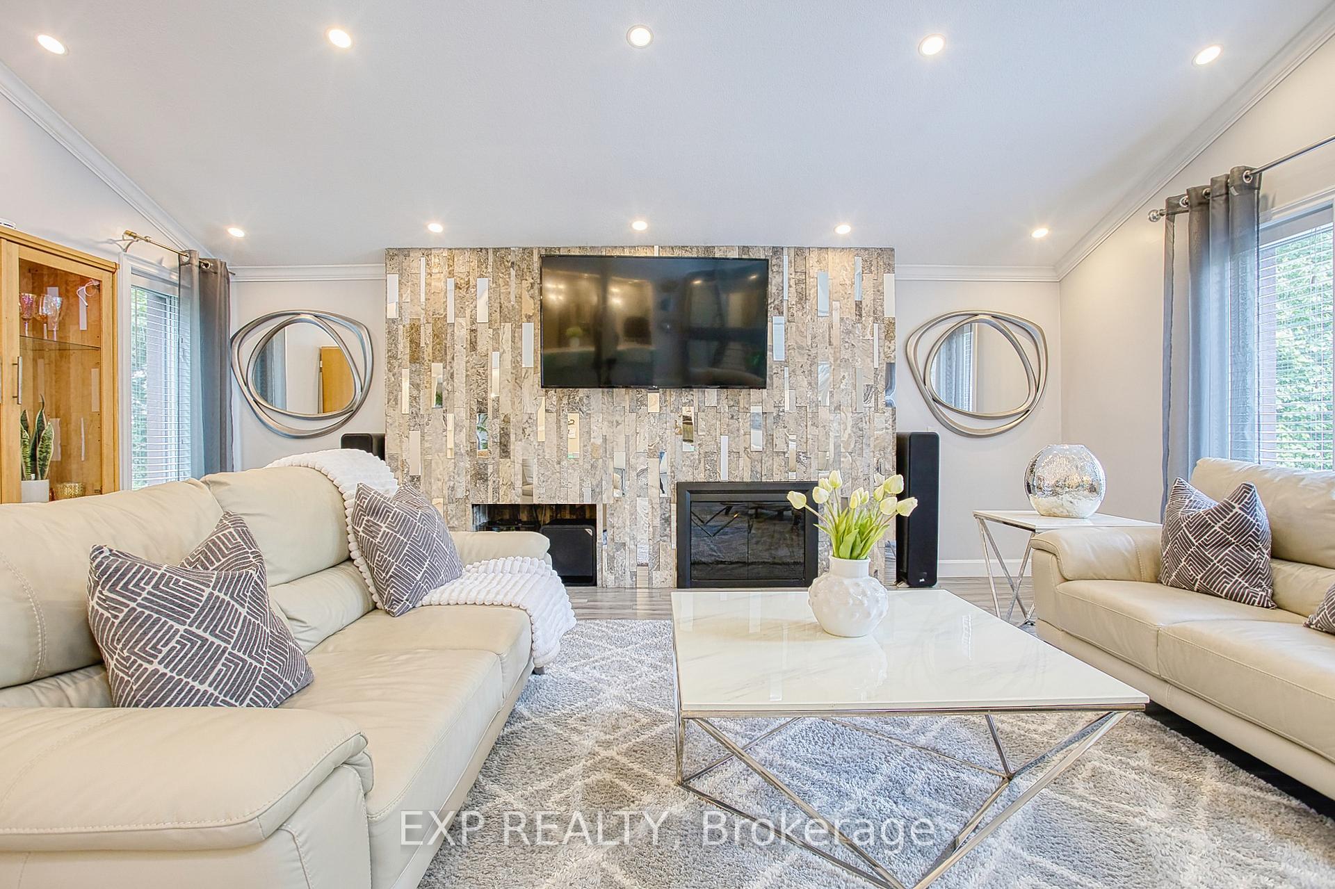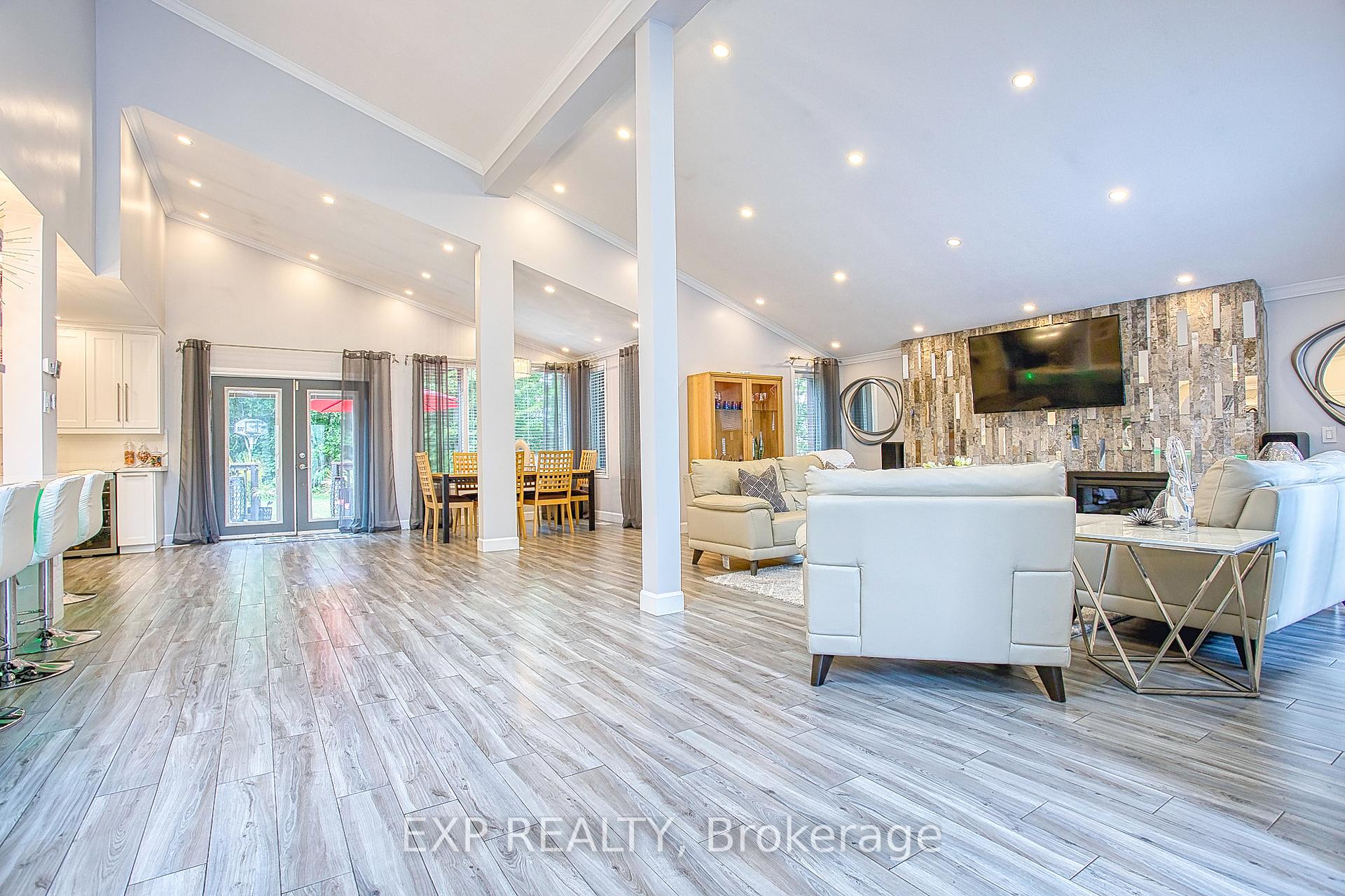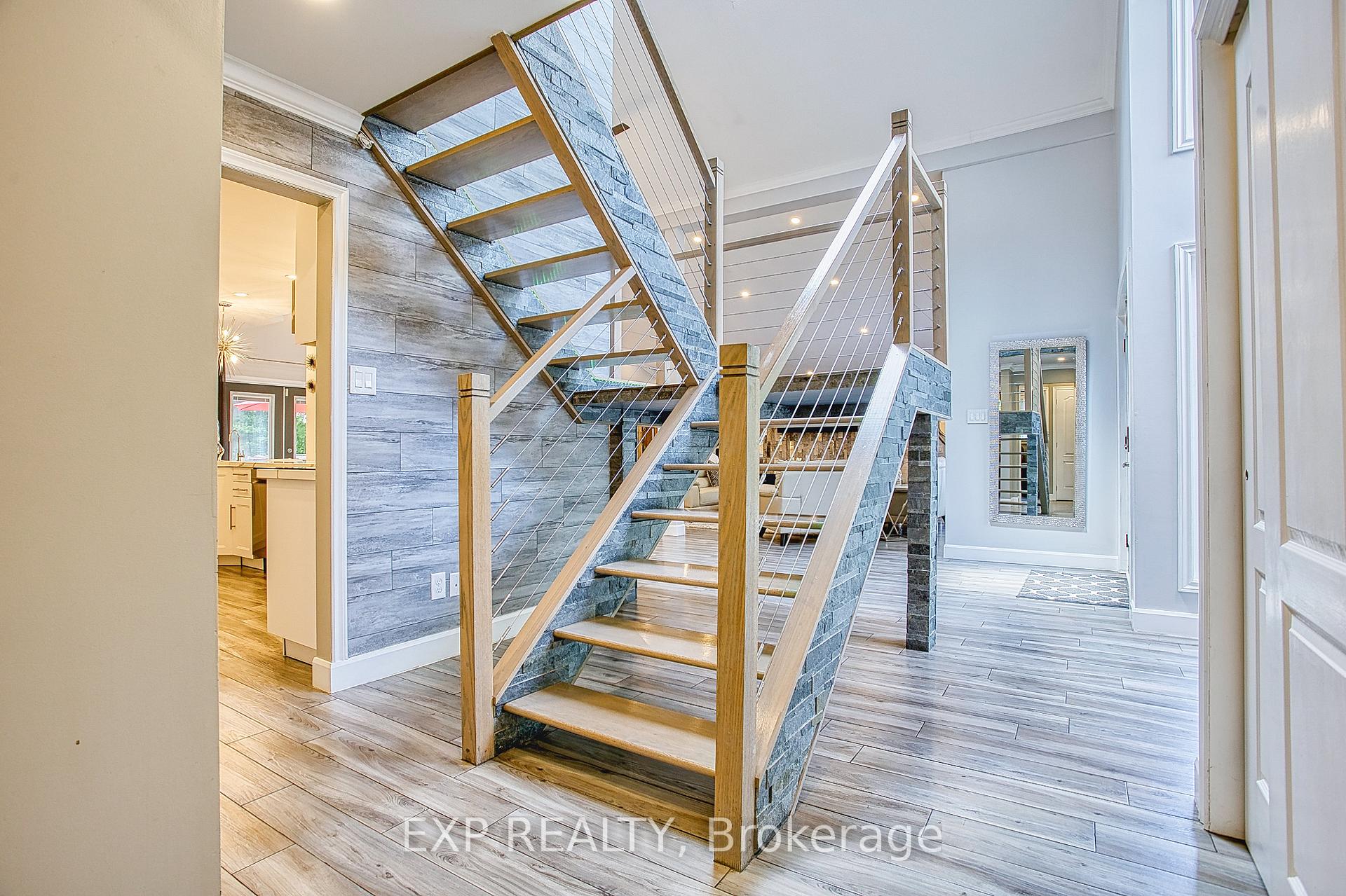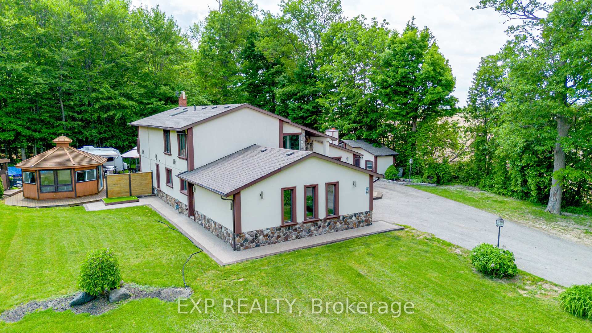Welcome to 3263 Guyatt Road a truly unique rural retreat just minutes from the heart of Binbrook. Nestled on a large, private lot with no rear neighbours and no neighbour to one side, this custom home backs directly onto a serene forest, offering ultimate privacy and a peaceful, nature filled setting. This thoughtfully designed, newly renovated, home features a full bathroom for every bedroom, with three of the four bedrooms offering private ensuites perfect for families or hosting guests in comfort. The primary suite is a luxurious escape, complete with a private balcony, spa-like ensuite, and a dry sauna for the ultimate in-home relaxation. With two furnaces and two air conditioners, year-round comfort is ensured. 3 fireplaces: gas, electric, and Wood(perfect for winter) will add to the coziness. The home also features a 2-car garage, a large driveway with ample parking, and a stone and stucco exterior that offers timeless curb appeal, and a fully finished basement for entertaining. The backyard is a dream come true for outdoor living. Enjoy a swim in the above-ground pool, relax under the gazebo, retreat to the detached sunroom/shed, or unwind in the hot tub gazebo with an outhouse-style setup all while surrounded by tranquil green space. Located just a short drive to Binbrook’s town centre, this property offers the best of both worlds: peaceful country living with convenient access to amenities. A rare and special find in one of the areas most desirable rural pockets.