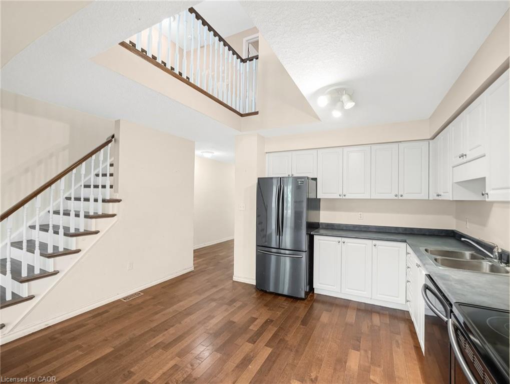 Welcome to West Galt’s Best-Kept Secret! Discover this stunning 3-bedroom, 4-bathroom condo townhouse, a true gem in the highly sought-after Blair Crossing community. With exceptionally low condo fees, this home offers incredible value and a lifestyle of comfort and convenience. Step inside the above-grade more than 1,375 sq ft property to find a bright and open-concept main floor. The spacious kitchen is a chef’s delight, offering plenty of cabinetry and counter space, while the living room, with its beautiful flooring, provides a welcoming space for gatherings. Sliding doors lead you to your private backyard and patio, the perfect spot for relaxing and entertaining outdoors. Upstairs, the expansive primary bedroom suite is your private retreat, featuring a large walk-in closet and a full ensuite bathroom. Two additional generously sized bedrooms and a full bathroom complete this level, providing ample space for family or guests. The finished basement adds incredible flexibility with a cozy