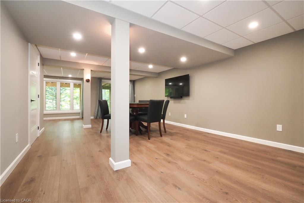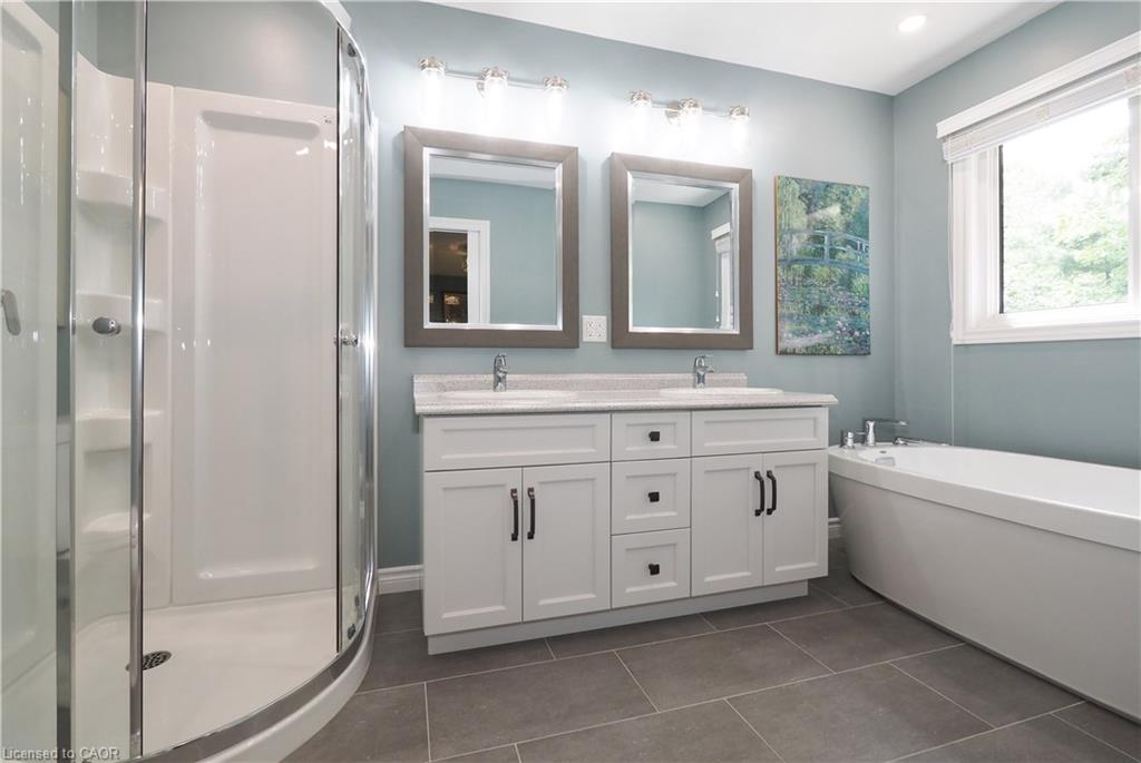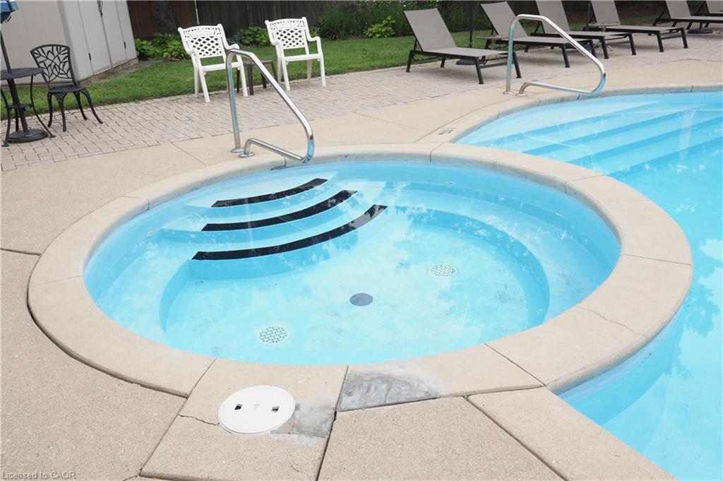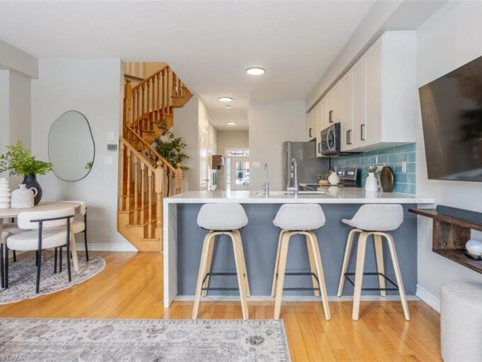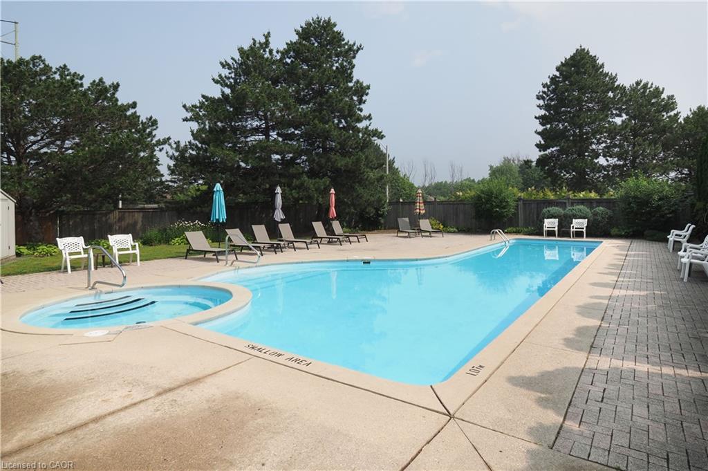 Upstairs, you’ll find two spacious bedroom suites, each with its own spa-inspired ensuite, ensuring both comfort and privacy. A second-floor laundry adds to the effortless flow of daily living. The fully finished walk-out basement is nothing short of spectacular — a retreat of its own with luxury vinyl plank flooring and an additional bath, perfect for hosting, entertaining, or unwinding in style. This home has been meticulously updated leaving nothing to do but move in and indulge. Step outside to enjoy the sparkling community inground pool, or simply lock the door and escape to a lifestyle free of lawn care and endless upkeep.