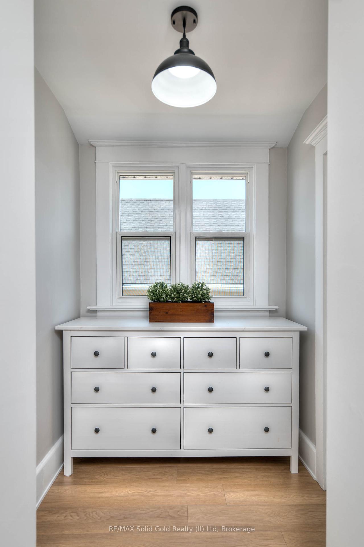 33 Bloomingdale Rd N – Charm, Character & Modern Comfort. Welcome to this beautifully refinished 2-bedroom home where timeless character meets modern updates. Enter through the spacious, refinished sunroom-a functional and flexible space perfect for any family. Inside, you’ll find an abundance of natural light, and an open concept living space recently finished with stunning blonde vinyl flooring throughout. Every inch of this home has been thoughtfully designed and utilized-from the original trim to the butlers pantry to the custom built-in closets and stylishly updated bathroom. On the upper floor you will find two large bedrooms, bonus nooks and a bathroom! The home features a durable metal roof built to last a lifetime, along with an attached single car, drive-through garage-perfect for parking, storage, or hobby space. Set on a rare extra-large 50 x 133 ft lot, the outdoor potential is endless. Whether it’s entertaining, gardening, there’s room to make it your own. This home has been meticulously cared for with all the major items new and ready to go! Located just minutes from Kitchener, Waterloo, and with quick access to major highways, 33 Bloomingdale Rd N combines small-town charm with unbeatable convenience. This is a move-in ready gem you won’t want to miss!