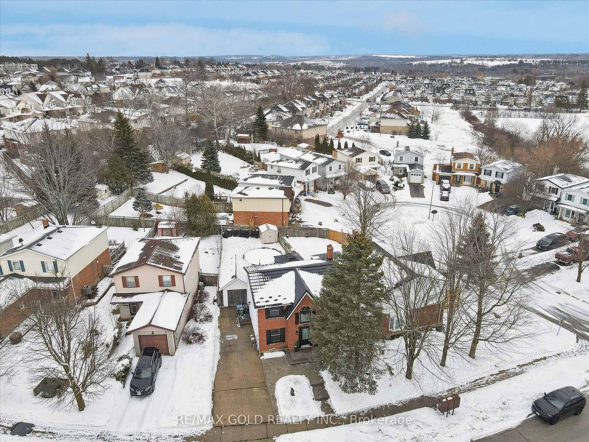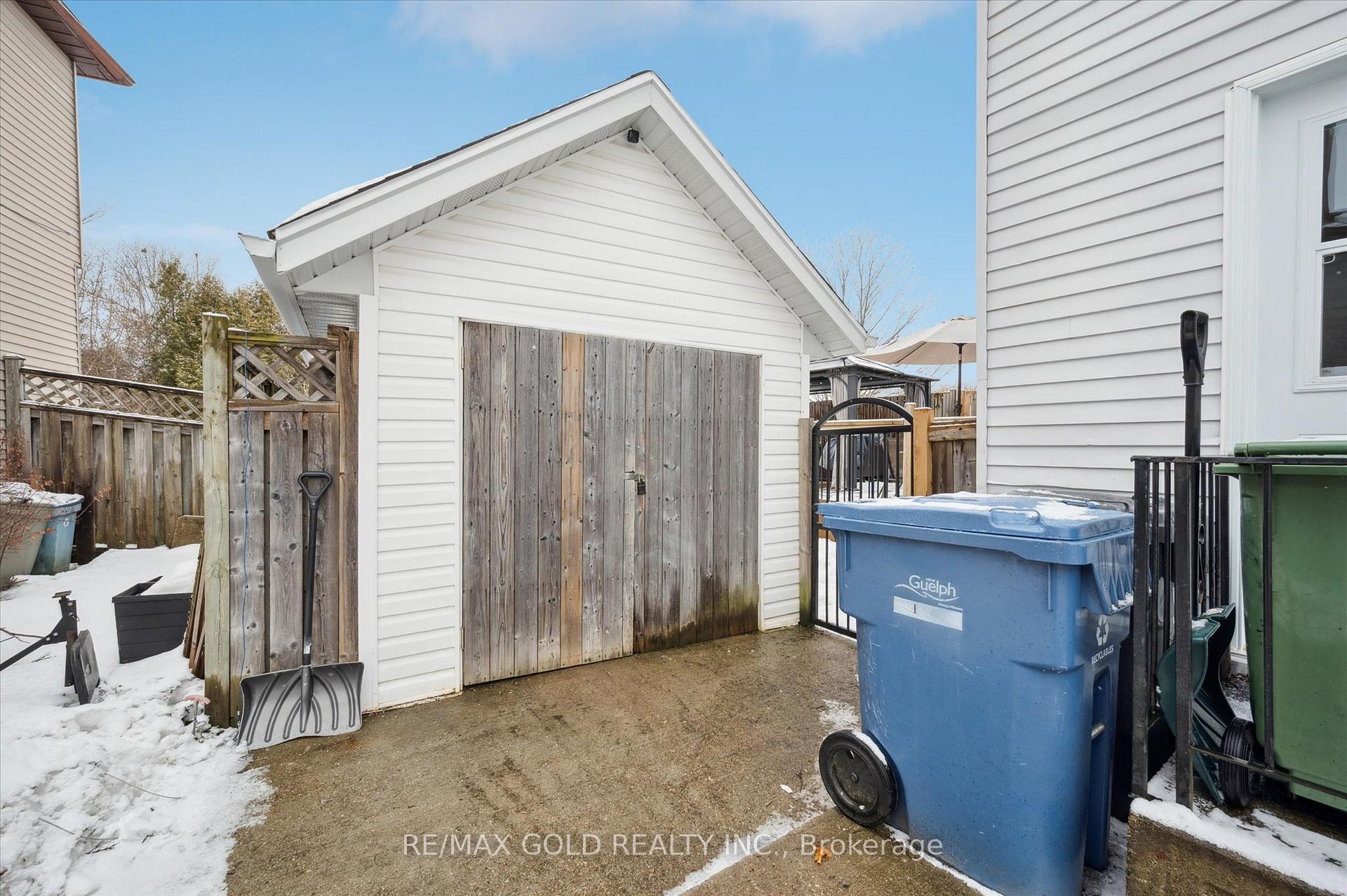 Beautifully maintained 2-storey home offering approximately 1,458 sq ft of comfortable living plus finished basement, in a desirable neighborhood of Guelph. This move-in-ready property features extensive upgrades throughout and an outdoor space designed for both relaxation and entertaining. Enjoy a large backyard complete with an above-ground pool, spacious deck, and BBQ gazebo with natural gas hookup. The deck provides direct access to the pool, creating the perfect setup for summer gatherings. Additional outdoor highlights include a powered workshop, utility shed, concrete driveway with parking for 4-5 vehicles, and roughed-in services for a future hot tub and pool heater. Inside, the home offers a bright open-concept main floor with a gas fireplace that helps heat both the main and upper levels. The modern kitchen was fully updated in 2024 with quartz countertops, subway tile backsplash, and excellent storage. Flooring and carpet were updated in2025, along with newer windows and attic insulation (2022) and a durable steel roof (2018).The second floor features three well-sized bedrooms, including a spacious primary with room for a sitting or workspace area. The finished basement adds valuable living space with a cozy family room, built-in bar, gas stove, laundry with 3-piece bath, and plenty of storage. Additional highlights include dual gas heating sources plus electric baseboard backup, a large10′ x 18′ powered workshop with loft storage, and a well-maintained above-ground pool with newer liner (2024).A fantastic opportunity to own a thoughtfully upgraded home offering comfort, functionality, and exceptional indoor-outdoor living.