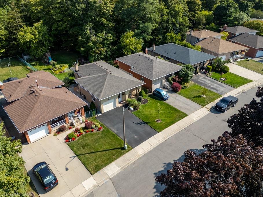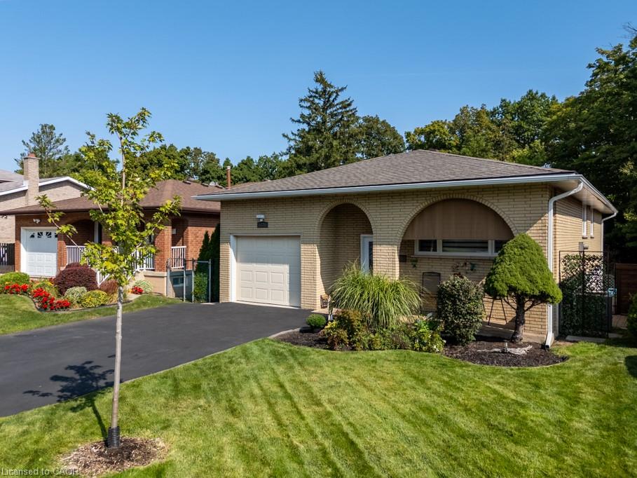 Meticulously maintained brick raised ranch in East Hamilton! Nestled on a quiet street, this home backs onto Davis Creek a beautiful green space with ravine, no rear neighbours. Home boasts amazing curb appeal with lovely perennial gardens and welcoming front terrace. The bright and spacious layout is filled with natural light from large windows throughout. Main floor offers large living space, separate dining area, and eat-in kitchen (appliances included) with walk out, 3 large bedrms and updated 4-pc bath. The lower level features a huge rec room with cozy fireplace, walk-out sliding patio door leading to covered patio / gazebo and zen park-like fully fenced backyard. Bonus-hurricane blinds are included on rear lower level window and patio door! Lower level also features large den (has previously been used as a bedroom), updated 3 pc bath, dedicated workshop-perfect for hobbies, storage, or projects, spacious laundry and convenient cold storage space. Complete double wide asphalt driveway with an attached garage (19’9 deep x 10’5 wide and 11’3 high) which offers enough space for a car hoist, and evident pride of ownership inside and out, this home combines comfort, functionality, and a peaceful natural backdrop that offers a sense of seclusion and tranquility, all while being just minutes from highway access and city conveniences. Central vac. Updates include roof shingles 2019, soffit/eaves/facia 2021 and windows, patio door and front door 2022. Nothing to do but move in!!