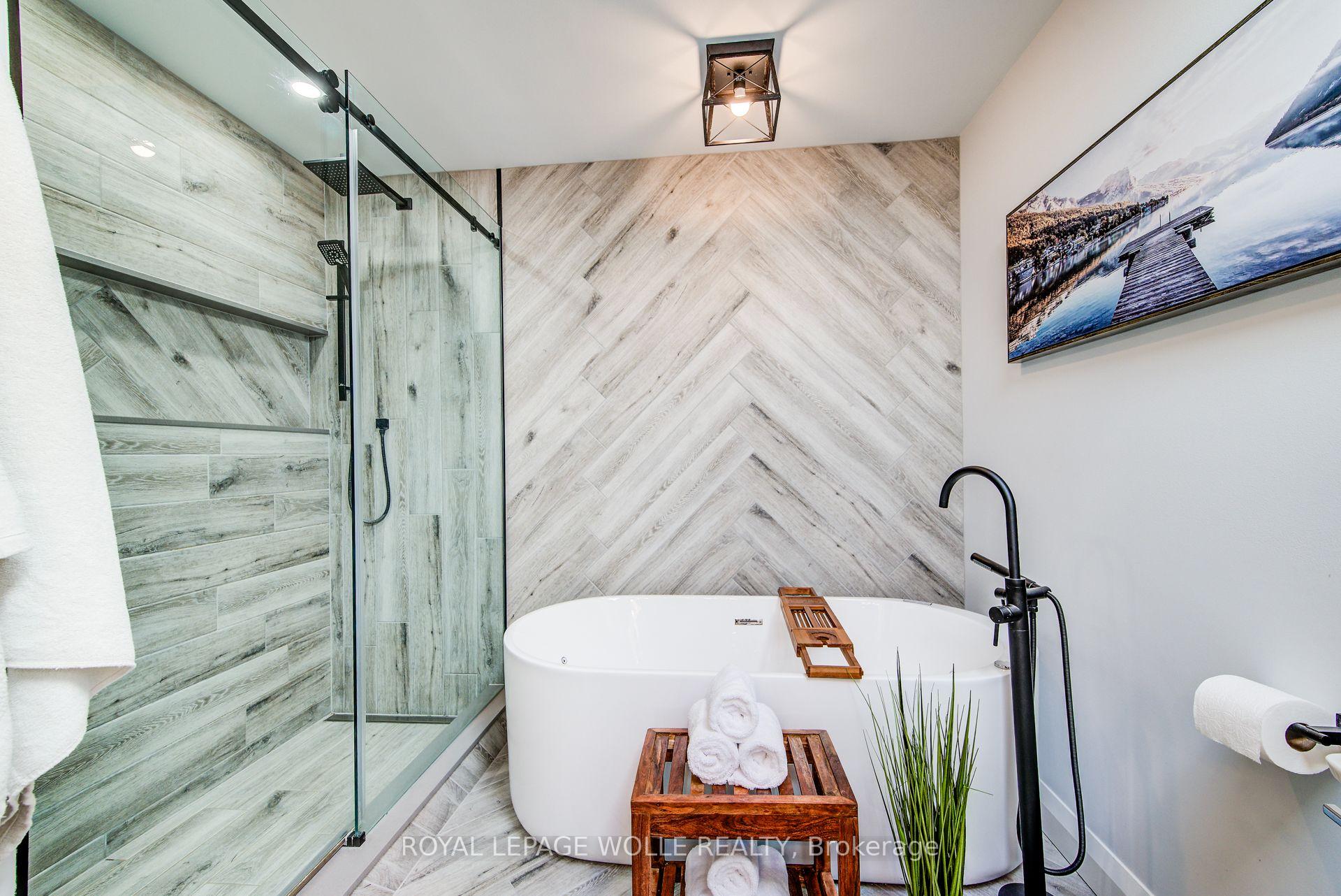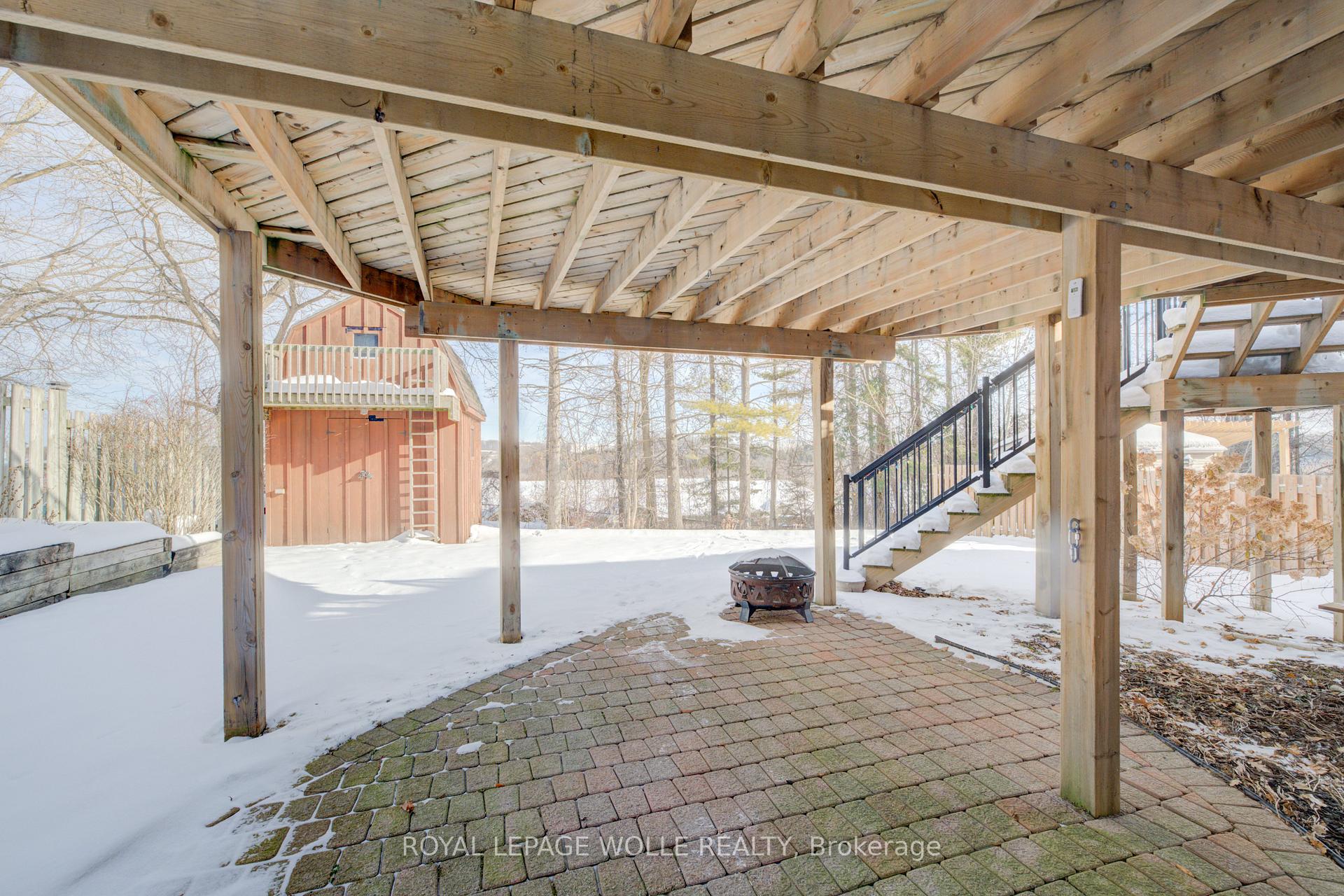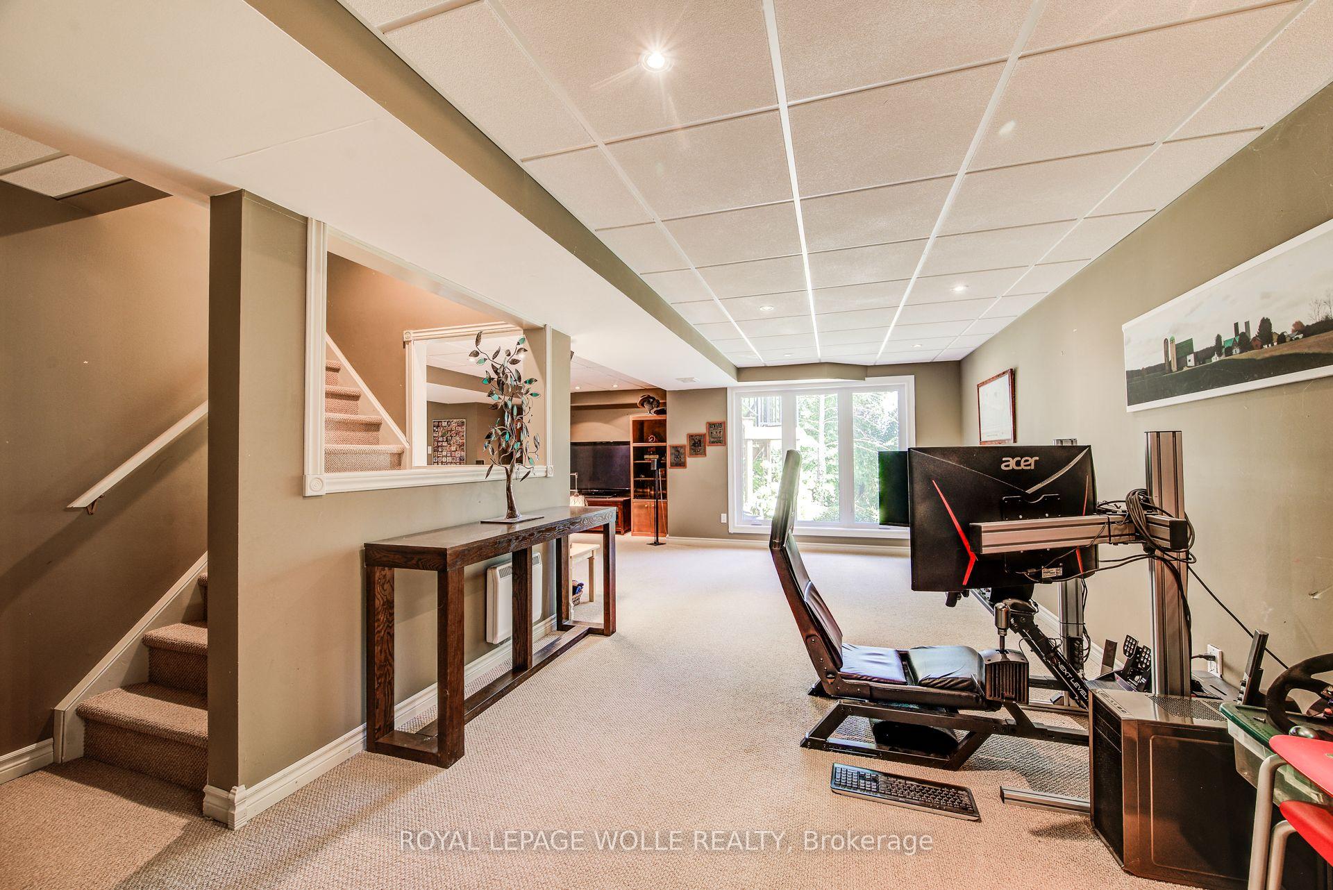 Prime, Chicopee Court Executive Home backing onto Nature, Walter Bean Trail! Welcome to this tastefully decorated home nestled on a quiet, family-friendly, choice court in Kitchener. This beautifully maintained property offers picturesque views of the mature treed greenbelt and the Grand River, with direct access to the Walter Bean Trail, making it a nature lover’s dream. Inside, you’ll find a renovated kitchen featuring high end cabinetry, built-ins, and gleaming hardwood floors, seamlessly connected to a spacious eat-in area and open-concept family room adorned with built in cabinetry. Step out from the family room with wood fireplace through French doors and onto the extra-large deck (six years young) with elegant glass panels, perfect for entertaining or relaxing while enjoying the tranquil surroundings. Upstairs, the oversized primary bedroom (20′ x 12′) serves as a luxurious retreat, complete with a modernized ensuite boasting a soaker jet tub, contemporary tiling and glass shower enclosure all beneath a skylight for the ultimate spa-like experience. Note primary bedroom’s spacious walk in closet featuring an organization system by California Closets. The finished walkout basement features oversized windows and French doors, offering abundant natural light and flexible living space. Wet bar and large, open rec room provide additional entertaining options. The home is professionally landscaped, enhancing its curb appeal and outdoor enjoyment. Note the shed in back yard – ideal for additional storage with mezzanine level perfect for children adventures. This is a rare opportunity to own a home that combines comfort, style, and stunning natural beauty in one of Kitchener’s most desirable neighbourhoods.