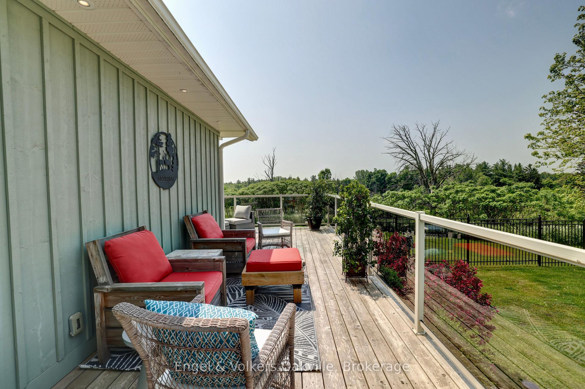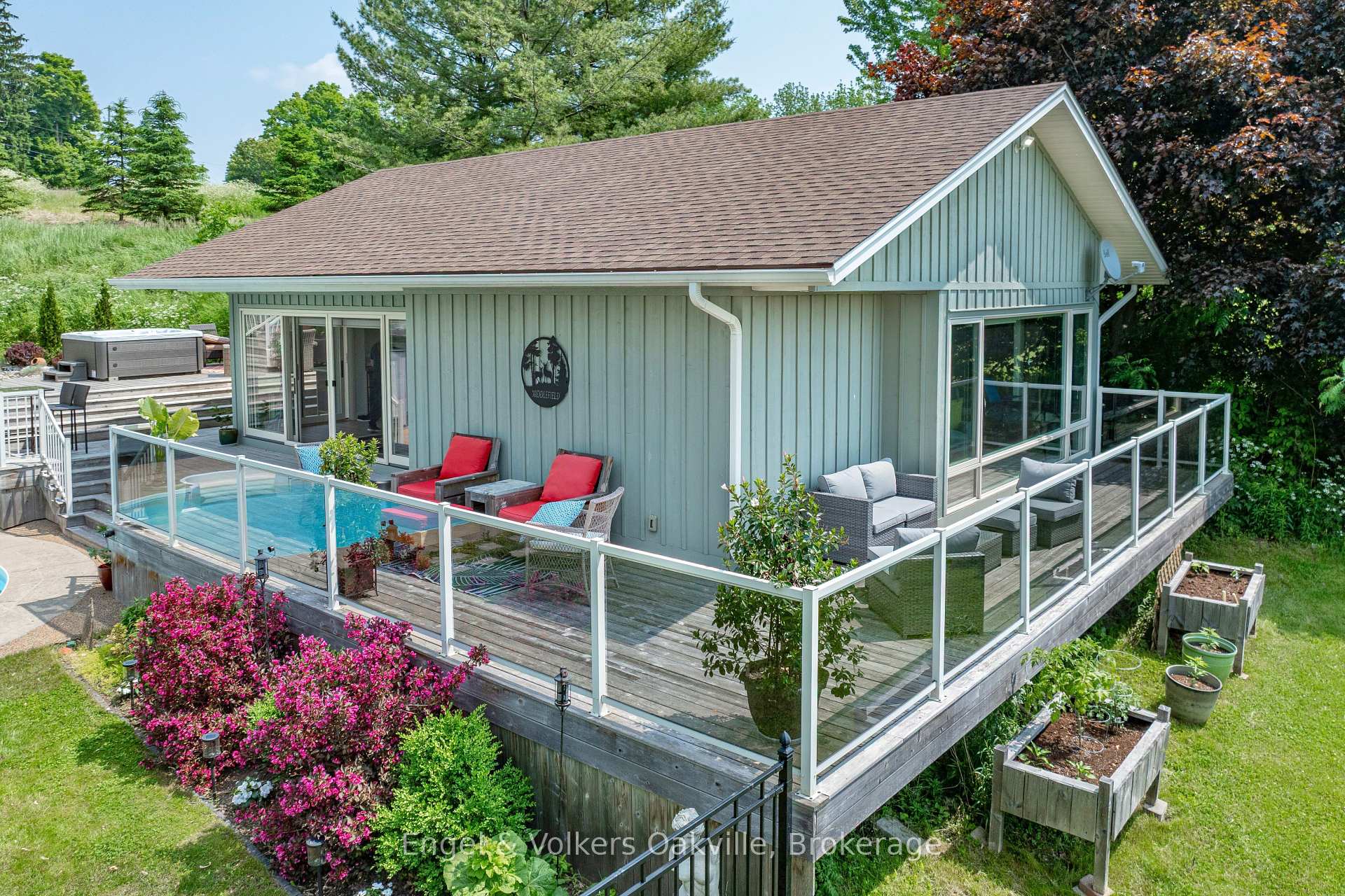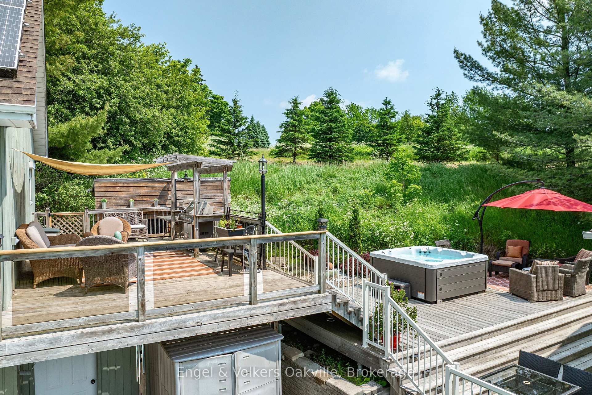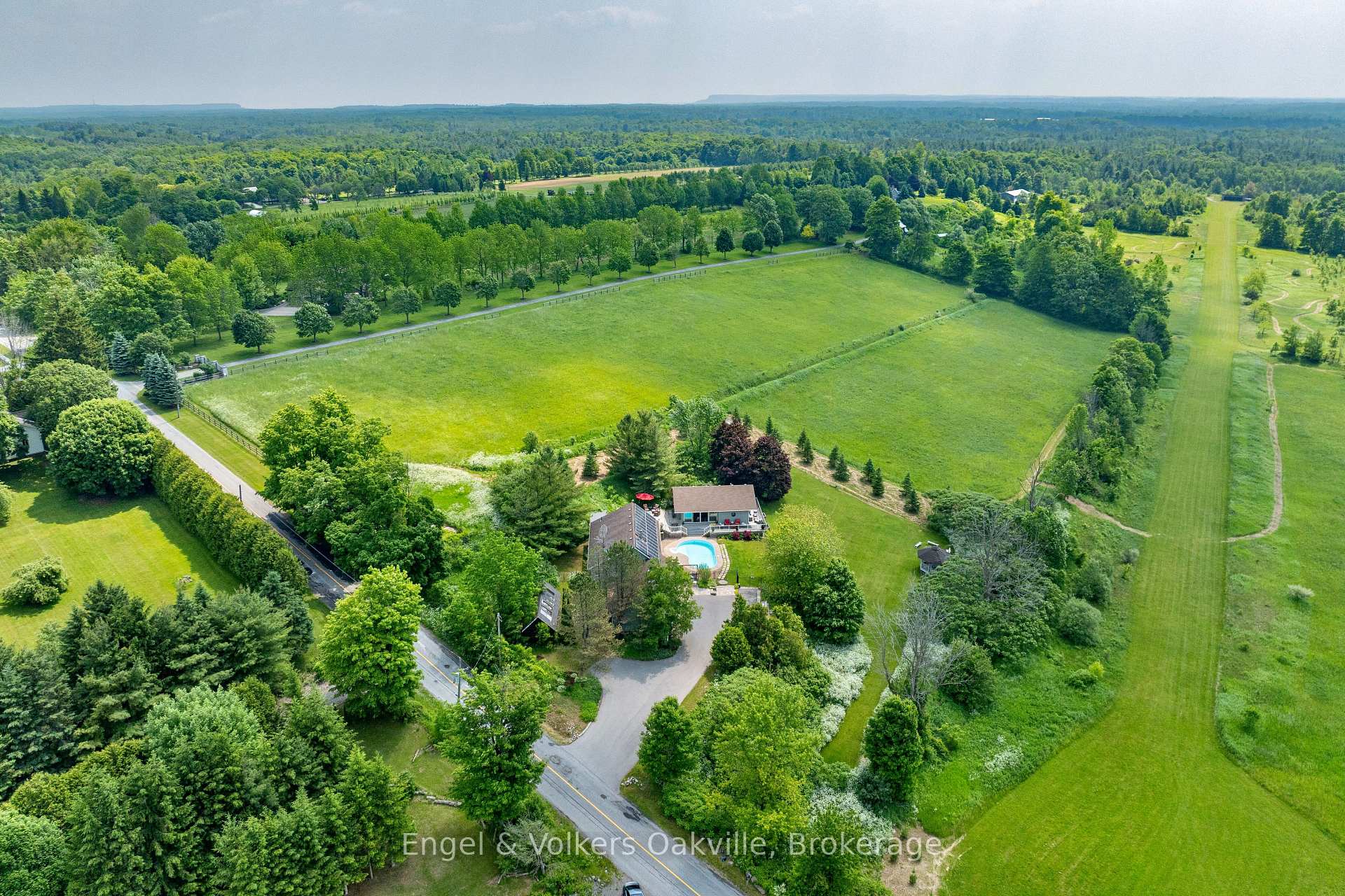 Experience country living on over 1 acre, just 40 min from Pearson Airport, with close proximity to the GTA & all amenities. This stunning 3 bed, 3 bath home + separate pool house with almost 3,700 sq ft of living space, offers panoramic southwestern exposure with spectacular elevated views & infinite countryside from oversized windows on all levels. Abundant natural light floods the open-concept top floor living & dining areas, creating a serene atmosphere year-round. The heart of the home is the expansive chefs kitchen. Ideal for entertaining; offering ample counters for food prep, a separate pantry for storage, & seamless flow for gatherings, both large & small. Want some quiet time, simply open the secret bookcase door & discover a sumptuous den to relax in, or watch your favourite movie. The above grade lower level provides flexibility with 3 bedrooms, 5 piece bath with soaker tub, walk-out to the inground pool from the primary bedroom, & generous storage spaces. Step outside the main house on any level & you will find extensive multi-level cedar decking & rubaroc patio poolside as you make your way to a newly built fully winterized pool/guest house with kitchenette, 3 piece bath & walkouts to hot-tub, pool & deck overlooking the gazebo & firepit. Whether you’re hosting summer soirées or enjoying cozy seclusion in winter, this property offers the ultimate in lifestyle & comfort. Don’t miss this rare opportunity.