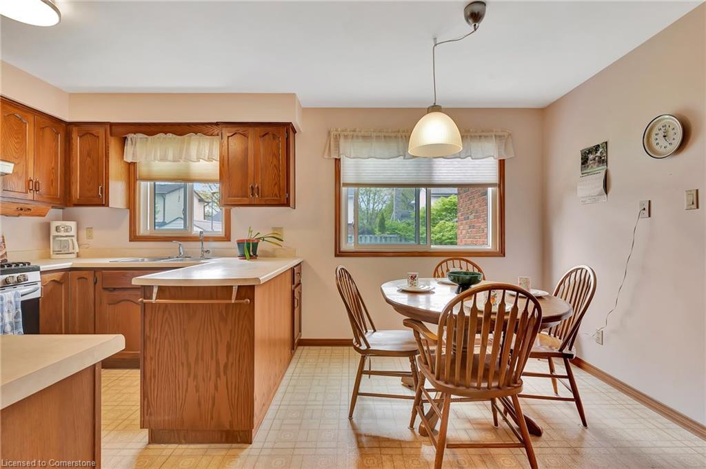 Welcome to this 3-bedroom, 3-bathroom home located in the quiet and mature neighbourhood of Lexington/Lincoln Village. This area is known for its tree-lined streets, friendly atmosphere, and convenient location near trails, Bechtel Park, and Conestoga Mall. The main floor greets you with a spacious front entry and lots of windows and natural light. There’s a good-sized living room with a bay window, a formal dining room for hosting family meals, a large eat-in kitchen and a powder room. At the back of the home, a generous rec-room with a gas fireplace and sliding doors leads out to the backyard. Upstairs, you’ll find three bedrooms and a full 4-piece main bathroom. The primary bedroom includes a walk-in closet and a private 3-piece ensuite. The basement is unfinished, offering loads of potential. There’s a rough-in for a bathroom, a large cold room, and enough space to add a rec-room, extra bedrooms, a home office, or whatever best suits your needs. The fully fenced backyard has plenty of room for kids or pets to run around, and a shed provides extra storage. Whether you’re hosting a barbecue or just enjoying time outdoors, the yard offers both space and privacy. This home is close to schools, shopping, public transit, and parks, with quick access to the expressway and Highway 85. Don’t miss out living in a great neighbourhood and book your showing today.