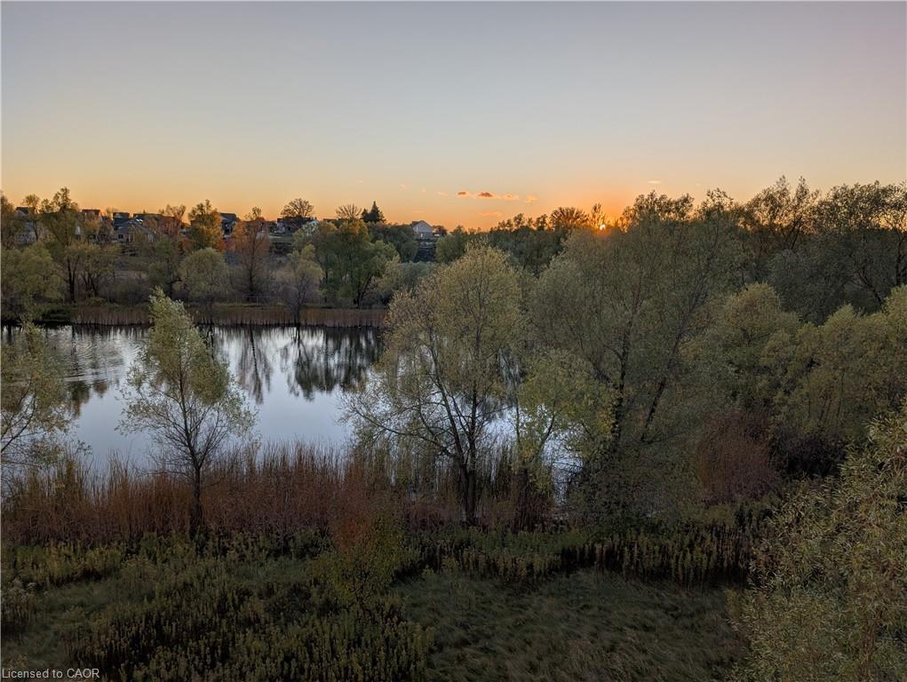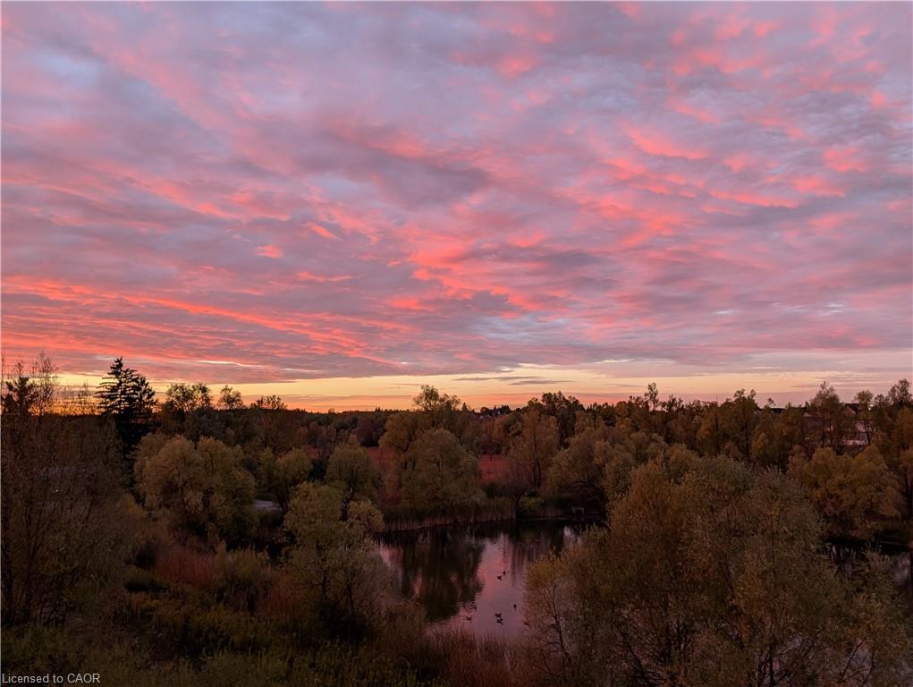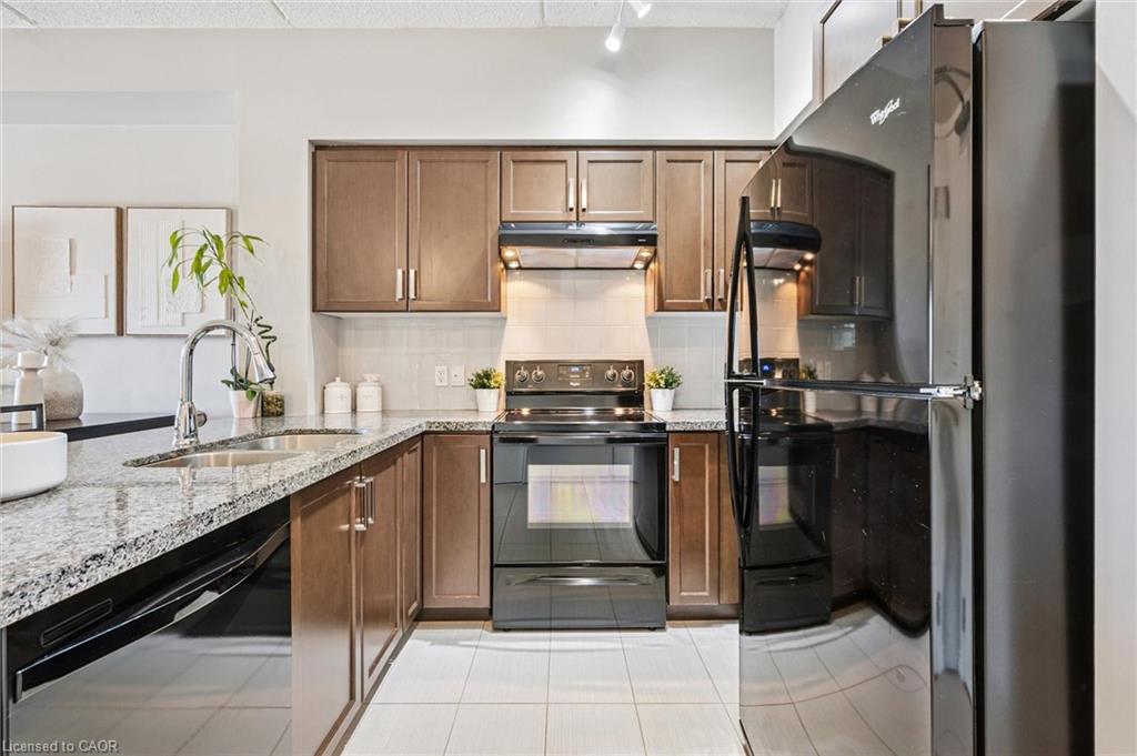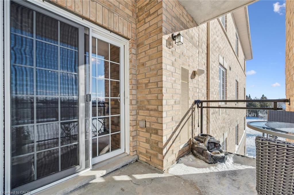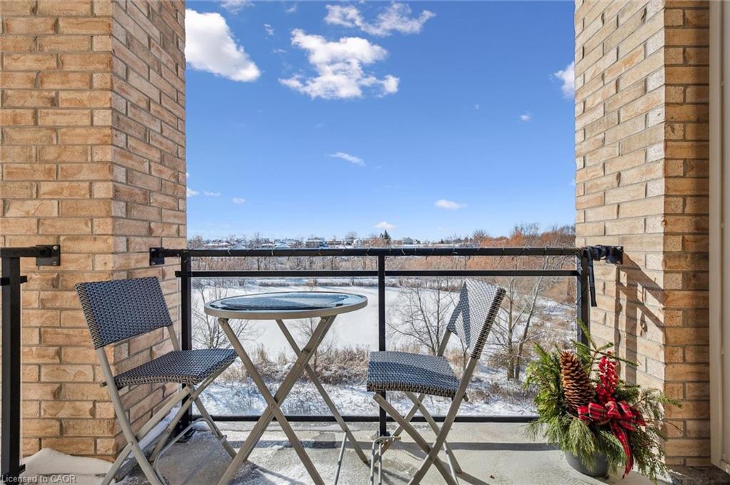 Welcome to this stunning and meticulously maintained one bedroom plus den condo in Guelph’s sought-after south end, complete with a dedicated parking space and a convenient storage locker located on the same floor. This sunlit unit boasts 9 ft ceilings, oversized windows, and tastefully updated hardwood flooring in the living area and carpet in the bedroom creating a bright and welcoming atmosphere. The open concept layout is flooded with natural light, making the space feel airy and spacious. The versatile den offers endless possibilities as a home office, study, or guest room, catering to your specific needs. The modern kitchen offers plenty of space and is fitted with granite countertops, a breakfast bar, updated appliances, backsplash, and seamless access to the stackable laundry closet. Enjoy your morning coffee or unwind after a long day on the private balcony that overlooks serene green space, providing a peaceful retreat right at home. The prime location is unbeatable, just minutes away from the University of Guelph, Stone Road Mall, grocery stores, restaurants, and the bus station, with easy access to the 401 for commuters. Whether you’re a first-time buyer, downsizing, or investing, this well-appointed condo offers a fantastic opportunity in a highly desirable south-end location, with every convenience at your fingertips. Don’t miss your chance to call this beautiful condo your new home!