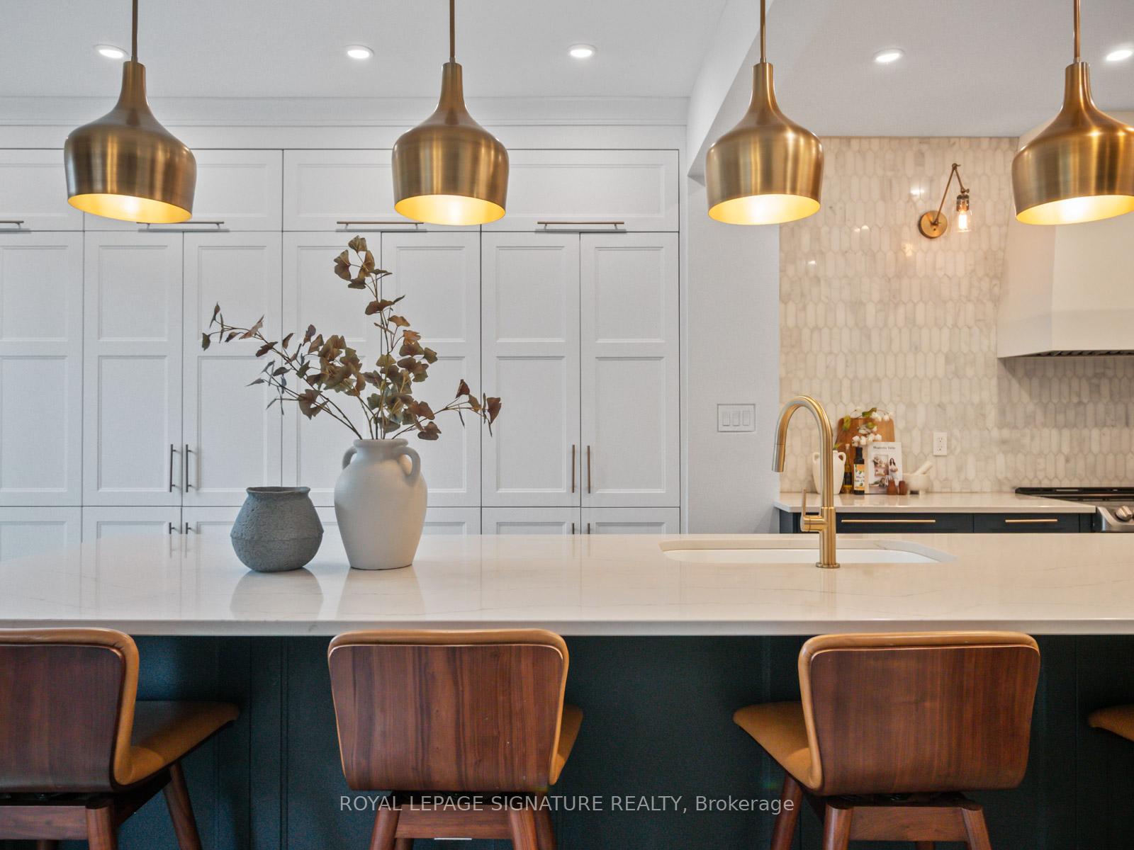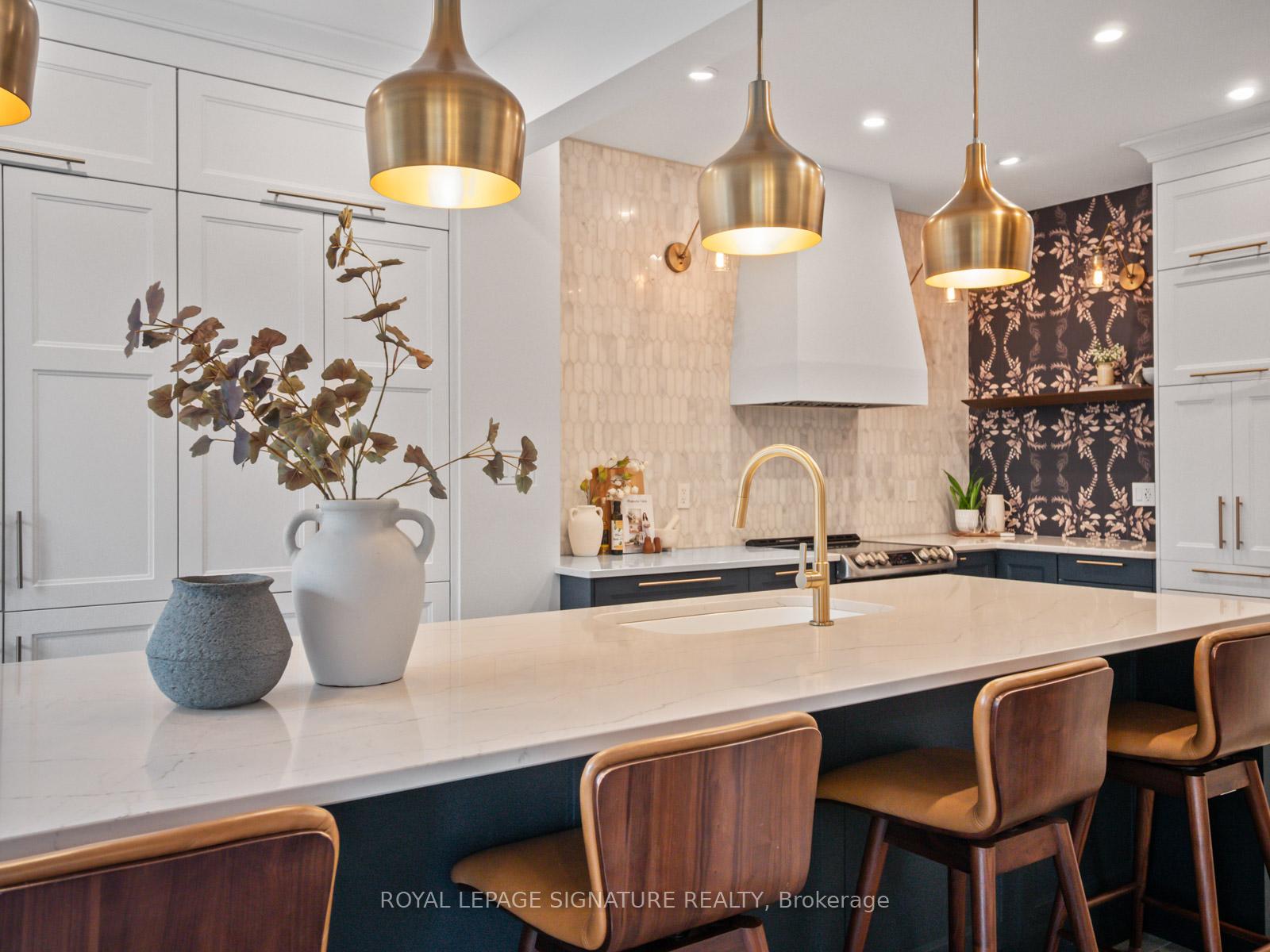 Welcome to 334 Inman Heights, a stylish and well-appointed three bedroom, four bathroom detached home in Milton’s coveted and quiet Scott neighbourhood. Situated on a desirable south facing, no-sidewalk lot in the family friendly neighbourhood, this residence offers gorgeous curb appeal and hassle-free parking in the garage or on the widened driveway for side-by-side parking. Inside, walk through the sun-filled open layout with hardwood flooring, through to the completely reimagined Chef’s Kitchen – the showpiece of the property. This Heart of the Home is outfitted with Stainless Steel appliances and includes a wine fridge, Cambria Quartz Countertops, and an extended kitchen island with breakfast bar. Accented with matching brass pendant lighting and kitchen fixtures, custom tile backsplash, and custom cabinetry, it is a delight for cooking or entertaining. The main floor is rounded out with a spacious living room complete with fireplace, an upgraded powder room, a foyer appointed with custom millwork and a solid walnut bench, along with well-sized dining and office areas. Upstairs, the primary suite is a true retreat, featuring a large walk-in closet and a private ensuite. Two additional well-sized bedrooms and a four-piece bathroom provide plenty of space for family or guests. A convenient upstairs laundry room with custom cabinetry adds everyday ease. Downstairs, the professionally finished basement with high ceilings includes a stylish 3-piece bathroom and offers flexible space for a media room, play area, gym, or guest suite with storage galore. Step outside to the landscaped and low maintenance backyard oasis with a large deck that is perfect for summer barbecues, gardening, or simply unwinding. Only minutes to Sherwood Community Centre or the Escarpment and parks like Kelso, Rattlesnake Point, and more.