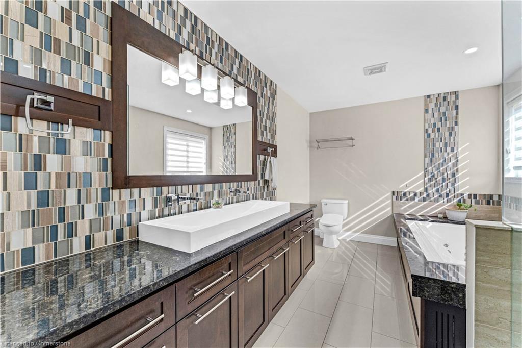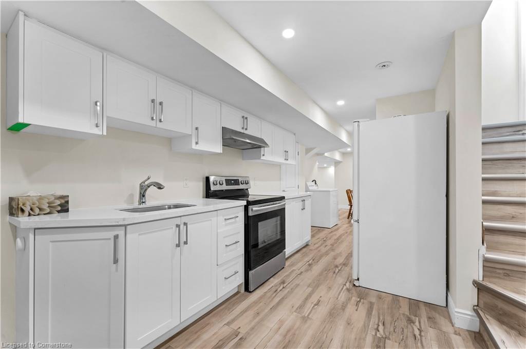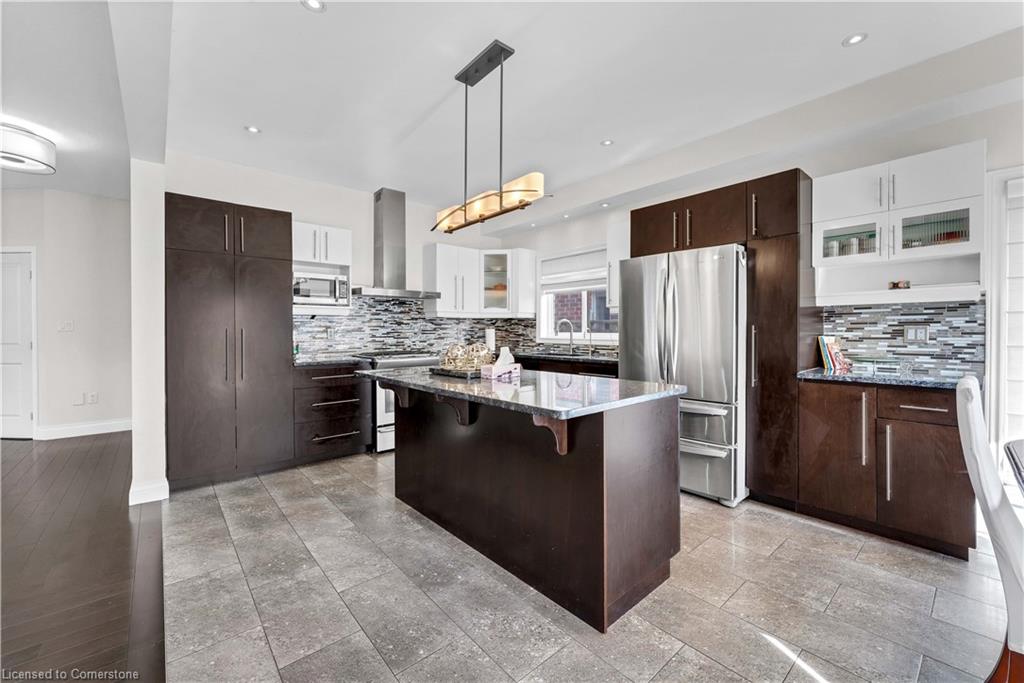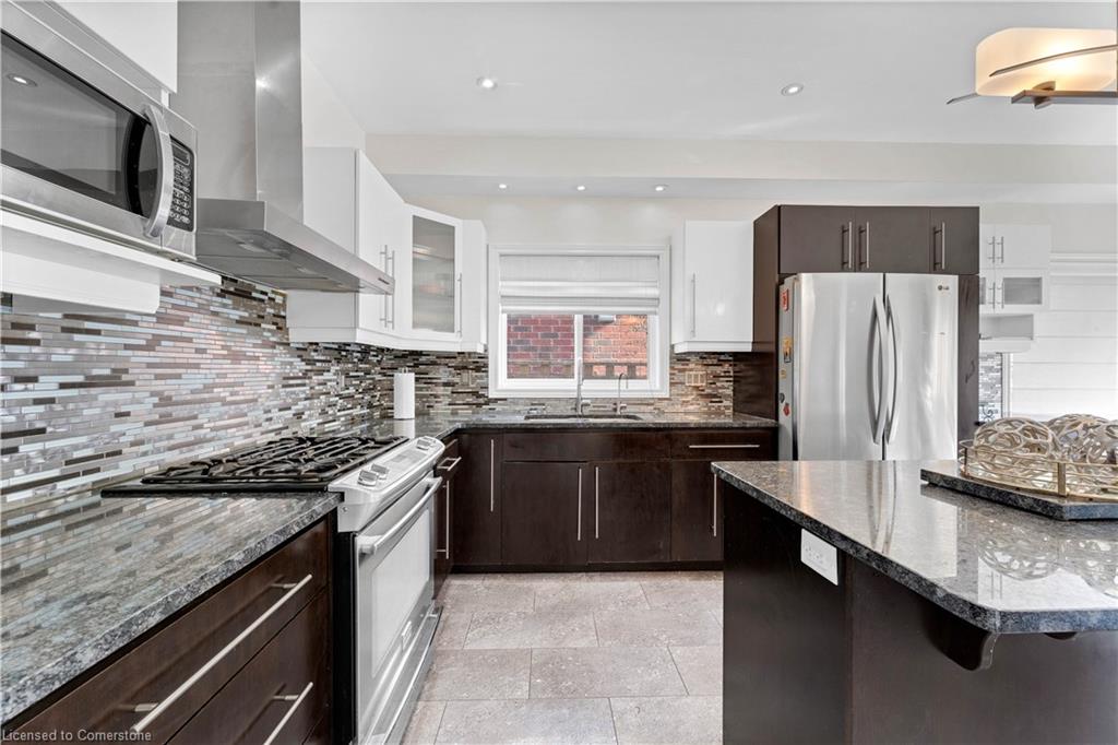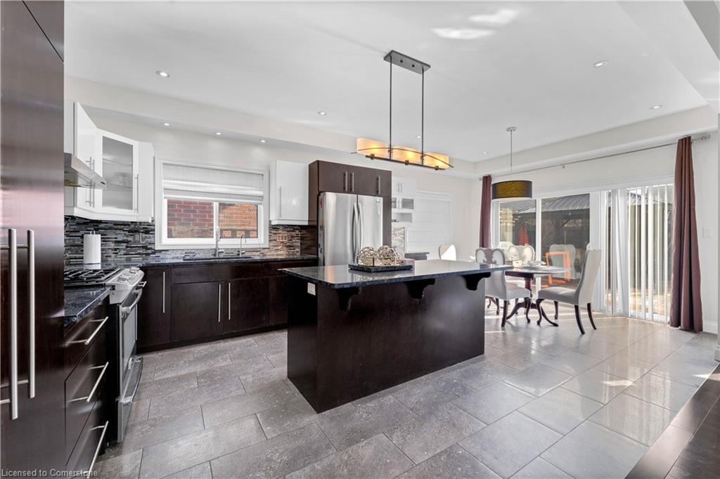 Welcome to 34 Adencliffe St, Kitchener — a stunning 6-bedroom, 3-full bath, 2-half bath home nestled on a quiet street, offering the perfect blend of luxury, practicality, and modern updates. Freshly painted throughout, this elegant home immediately impresses with soaring ceilings, a sweeping staircase, and expansive living areas that set a grand tone. The main floor features a family room, a home office, a powder room, two inviting sitting areas, and a bright, modern kitchen outfitted with sleek stainless steel appliances, stylish two-tone cabinetry, stone countertops, and a large central island — all overlooking a beautifully landscaped, fully fenced backyard. The open-concept family room off the kitchen provides the ideal space for gatherings and entertaining. Upstairs, the spacious primary bedroom retreat offers a walk-in closet with custom built-ins, a skylight, and a spa-like ensuite. Three additional generously sized bedrooms share a well-appointed 4-piece bath, while a convenient upper-level laundry room with storage and a laundry sink adds extra ease to daily living. The finished basement, freshly painted and featuring a separate entrance, is filled with natural light from large windows and offers excellent in-law suite potential. It includes a full kitchen, a spacious rec room, a large bedroom, and a luxurious ensuite bath, and fire sprinklers, gas safety unit as safety features — a perfect setup for extended family or guests. Located within walking distance of top-rated schools, parks, grocery stores, shopping, and public transit, and with quick access to Conestoga College and Highway 401, this beautiful home offers the ultimate in comfort, luxury, and convenience for growing families.
