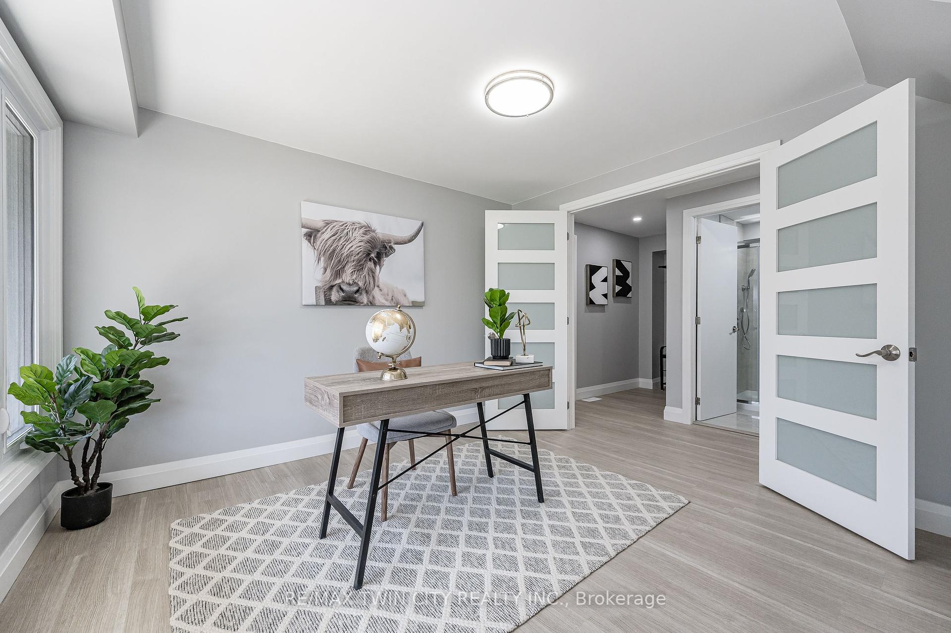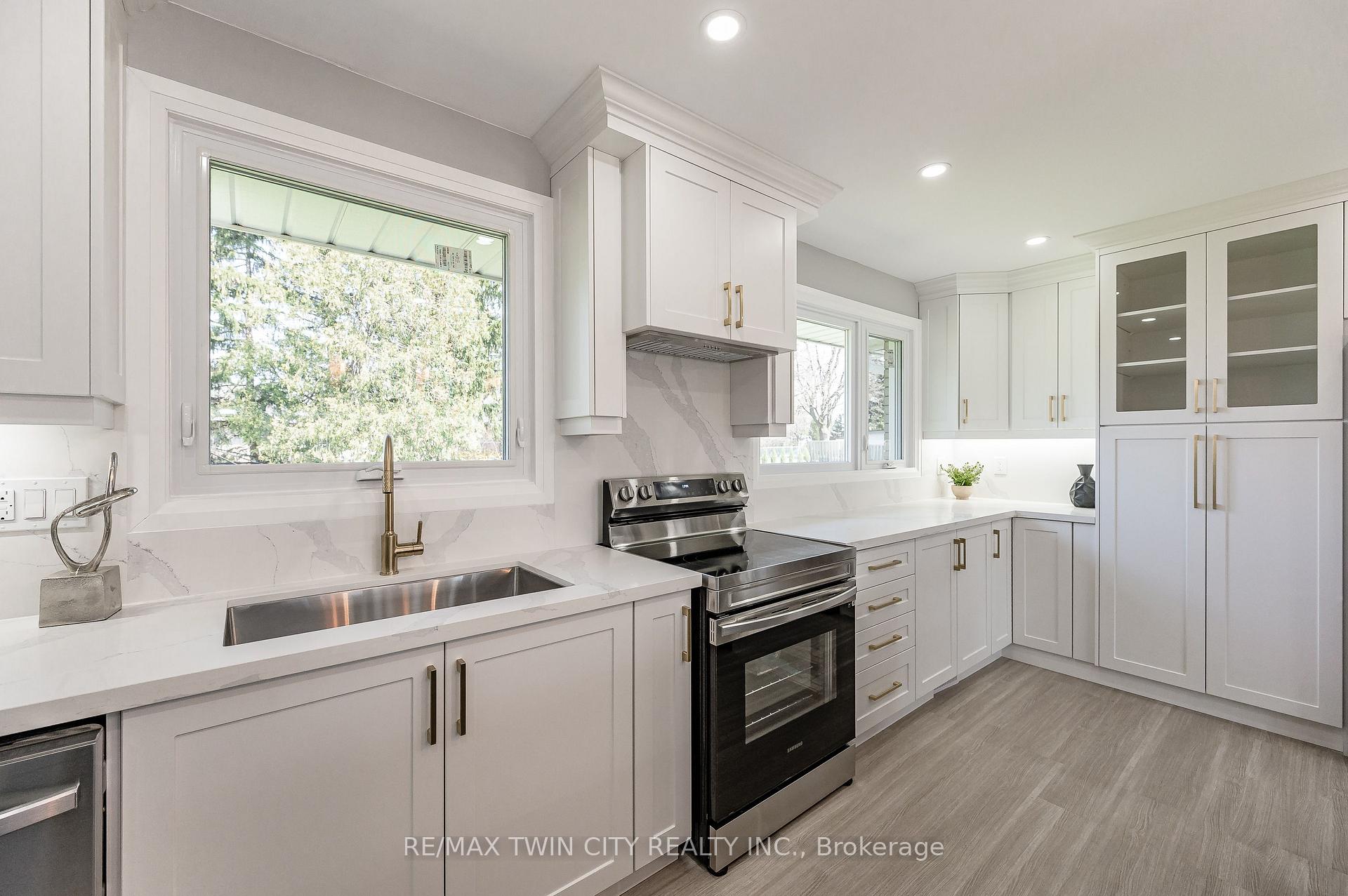 WELCOME TO 34 BRADLEY! This beautifully renovated side split has been re-imagined and is ready for you to be its next owner. The open concept main floor is an entertainers dreams featuring a huge kitchen with new cabinets, stainless steel appliances, quartz counter tops, and a massive waterfall island. There’s also new vinyl flooring throughout and brand new sliding doors leading to your oversized back yard. The bedrooms are all generous in size, and you’ll love the new cheater ensuite with glass shower. The lower level has been redesigned to provide a new den/home office, a mud room and full 3pc bathroom with glass shower. As you walk into the basement you’ll be greeted with another full bathroom, a large bedroom and a walk-up to the backyard. All windows and doors have been updated, along with new pot lights inside and out, new vinyl sliding, new gutters and a new electrical panel (ALL RENO’s and UPDATES COMPLETED In 2022). The home is also located in beautiful Stanley Park, on a mature tree-lined street and close to schools, shopping, HWY 401, HWY 7/8, walking trails, Chicopee Ski Hill, and many other amenities. Call your favourite realtor and book your private showing today.