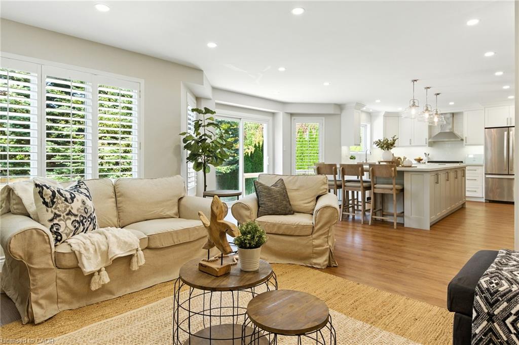 Stunning, fully updated executive detached home in a highly sought-after neighbourhood, offering the perfect balance of elegance, comfort and family living. Bright and open living spaces make it easy to spend time together, while still offering room to spread out. The heart of the home is the fabulous renovated kitchen, complete with a large centre island and plenty of space for gathering — ideal for both everyday family meals and entertaining. The open-concept design flows seamlessly into the bright family room with a gas fireplace. Upstairs, the large primary bedroom offers two walk-in closets and a spa-like bathroom. Three other generously sized bedrooms provide ample space for the whole family. The finished basement with additional bathroom adds even more space for recreation, a home office, or movie nights. Complete with built-in sauna! Step outside to a private backyard designed for fun and relaxation, with an inground pool, cabana bar and peaceful ravine views — perfect for summer days and weekend get-togethers. Located in a high-demand community close to top-rated schools, parks, trails, and all amenities, this home is a rare opportunity to own a move-in ready property with premium finishes and a one-of-a-kind setting.