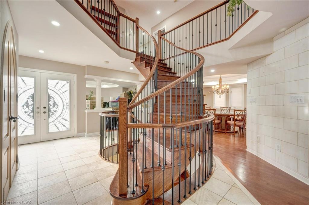 Welcome to this exceptional luxury residence nestled in a highly sought-after, family-friendly neighbourhood. From the moment you arrive, the grand entrance with a stunning spiral staircase sets the tone for the elegance found throughout the home. Designed with both comfort and entertaining in mind, this property offers expansive principal rooms, including a separate family room and an abundance of windows that fill the space with natural light. The inviting living room is highlighted by a striking two-way fireplace, creating a warm and sophisticated atmosphere. The upgraded kitchen is a chef’s dream, featuring granite countertops, ample cabinetry, and plenty of workspace for everyday living and hosting. Upstairs, you’ll find four generously sized bedrooms, including a luxurious primary retreat complete with a beautifully appointed 5-piece ensuite. Two additional 4-piece bathrooms provide convenience for family and guests alike. The fully finished basement extends the living space with a large recreation room, an additional bedroom, and a 3-piece bathroom, ideal for guests or extended family. Step outside to your own private oasis. The fully fenced backyard showcases interlock pavers, an in-ground pool, and is surrounded by lush greenery, offering the perfect setting for relaxation and summer entertaining. Taxes estimated as per city’s website. Property is being sold under Power of Sale. Sold as is, where is. Seller makes no warranties or representations.