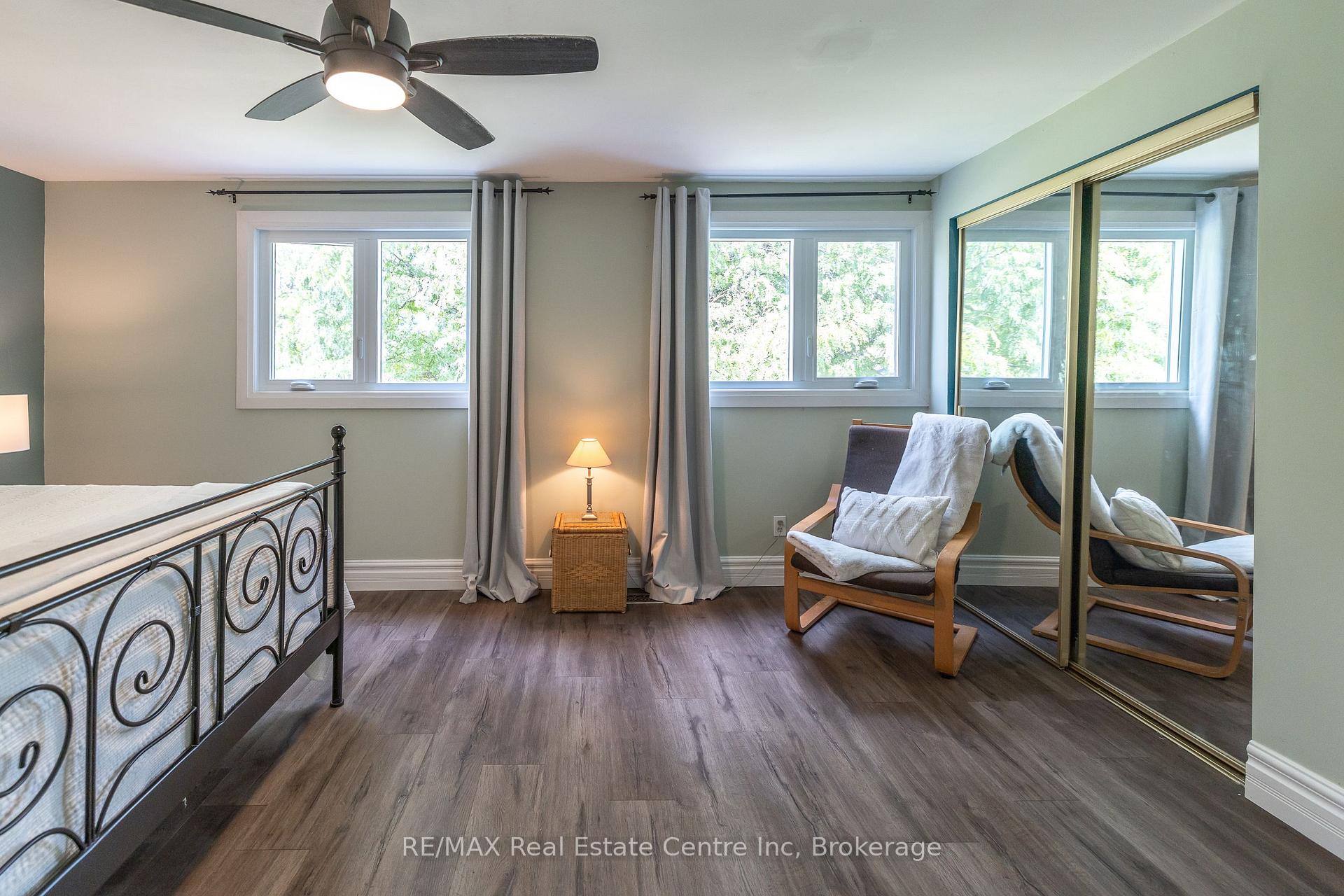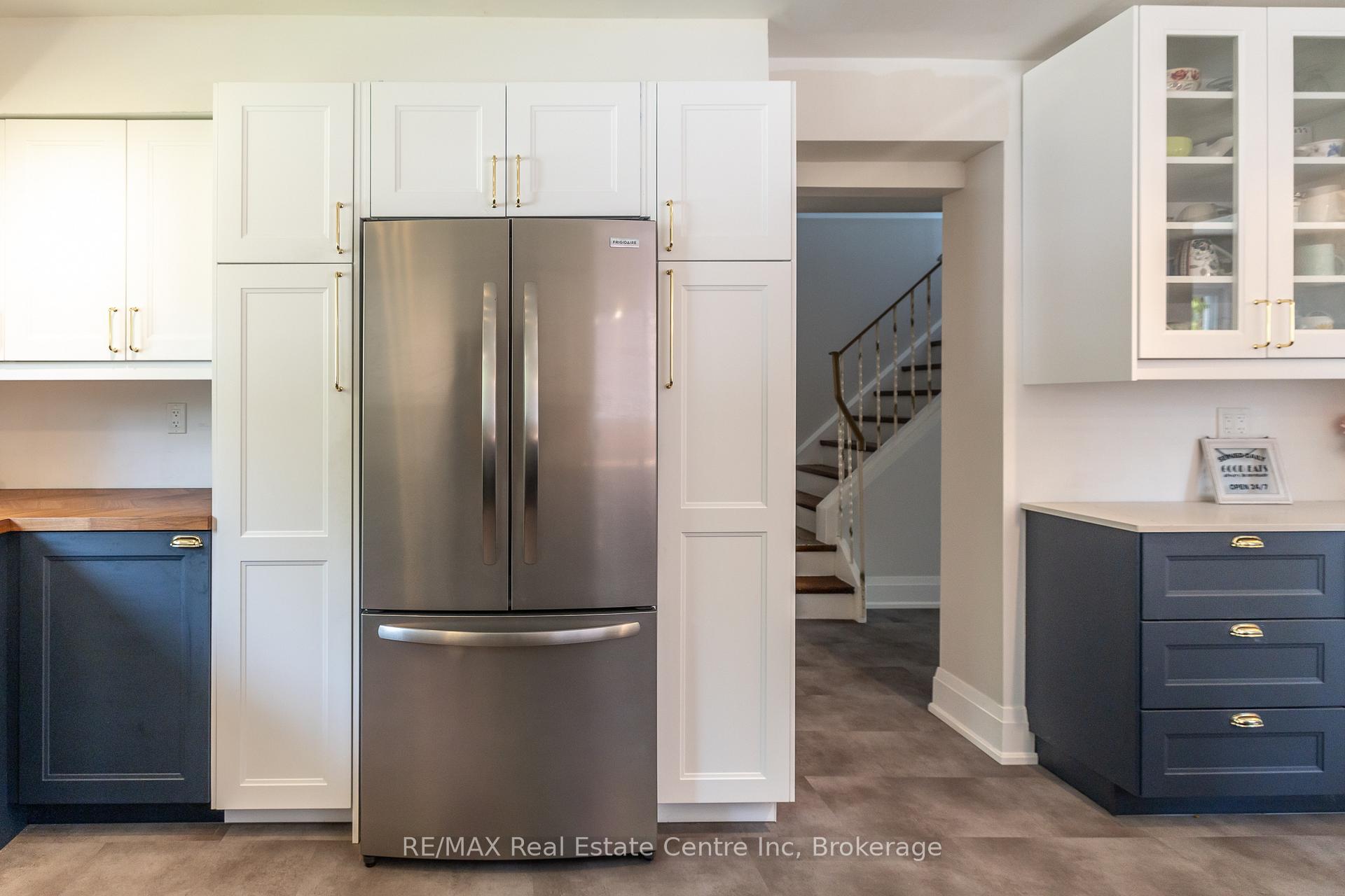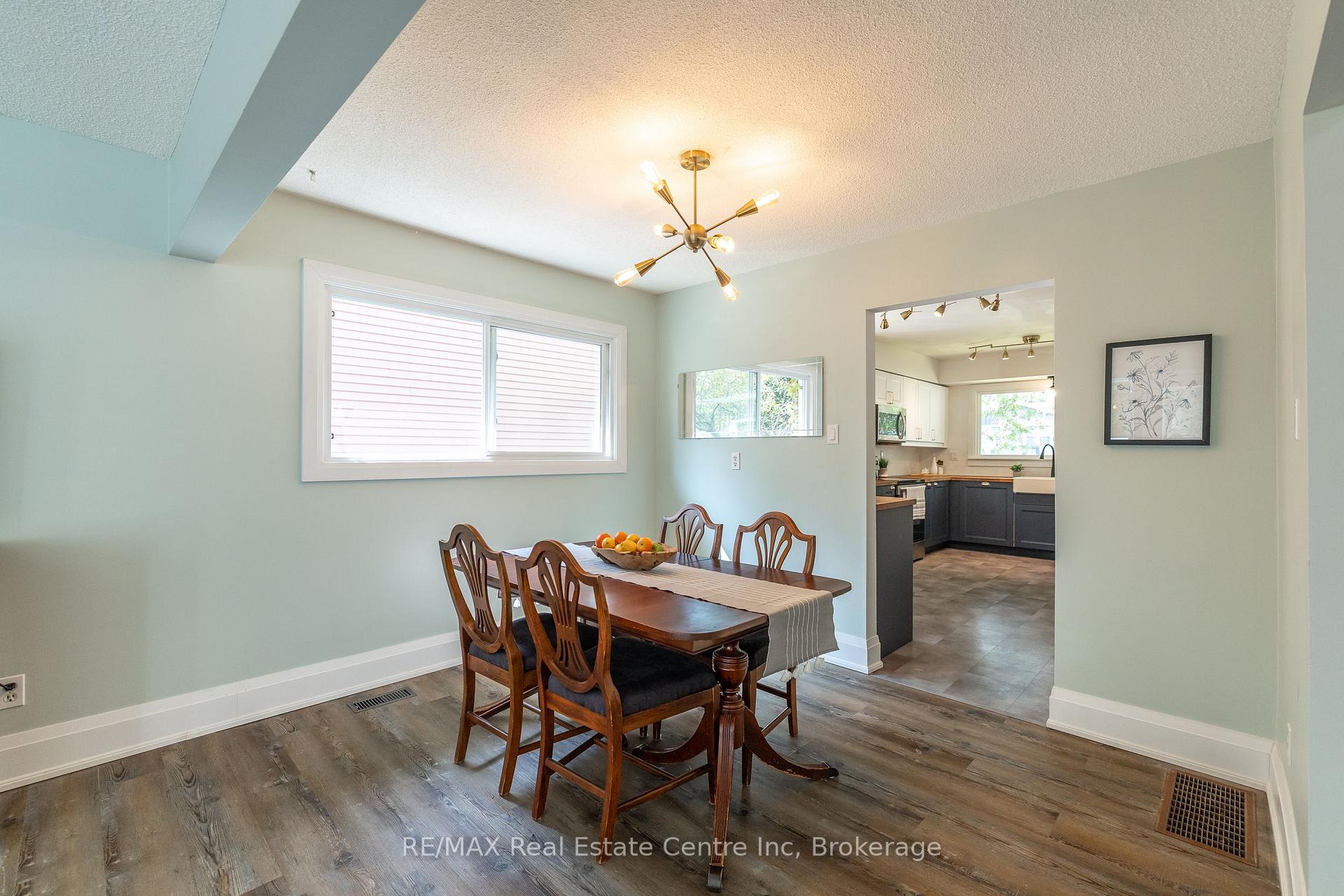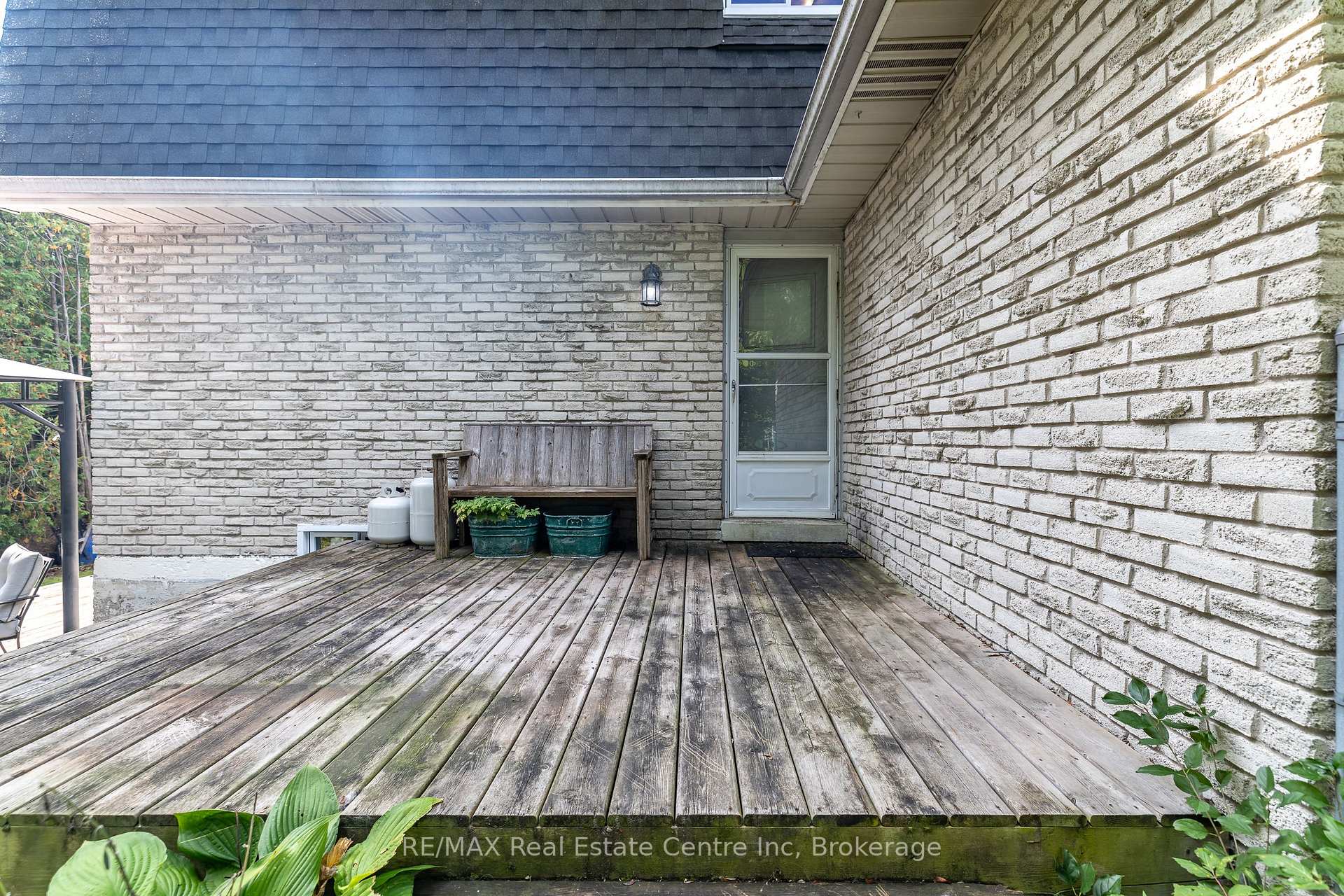 Welcome to 34 Woodridge Crescent! Tucked away in one of Guelph’s well-established neighbourhoods, this charming 2-storey home offers 4 bedrooms, 3 bathrooms and over 2,225 sq. ft. of living space. Just steps from shopping (Costco, Zehrs), banks, the West End Rec Centre, schools and parks. Quick access to HWY’s 6, 7 & 124 makes commuting much easier. As you step inside you’ll be welcomed by a spacious, fully renovated chef’s kitchen, featuring ample custom cabinetry, expansive wood countertops, and a bright breakfast nook, all thoughtfully designed. Oversized windows throughout the home flood the space with natural light. The dining area flows seamlessly into a spacious living room highlighted by a cozy wood-burning fireplace, ideal for family time. A convenient side entrance provides direct access to the walk-up basement and the deck-ideal for multi-generational living, teenagers or those in need of added privacy. As you go up the stairs, you’ll find 3 very spacious bedrooms and a full 4-piece bathroom. The primary bedroom is exceptionally large, featuring a deep closet for ample storage. The fully finished basement features a generous Rec room, an additional bedroom/den, a 3-piece bathroom, and a large utility room that includes the laundry area. You’ll enjoy relaxing and entertaining loved ones in the fully fenced backyard, which features a large main deck and a convenient side deck. As a bonus, the hot tub and two storage sheds are also included. List of upgrades: professionally renovated kitchen 2023 with luxury vinyl plank flooring (new insulation, studs, drywall and wiring), new windows by Nordik Windows 2023, shingles Nov 2019 by Platinum Roofing (50 yr transferable warranty), upstairs bath/shower & basement shower by Bath Fitter Feb 2025, new electrical panel Jan 2023, wood stove by Fergus Fireplace 2009 (triple wall pipe, fire rated wood stove tile pad) and SS appliances. One car garage and the driveway that can fit 2 cars complete this cute family home.
