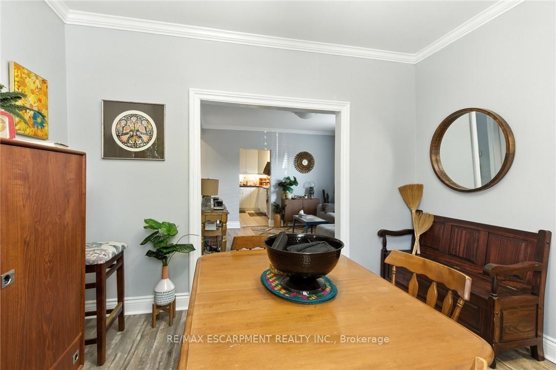 Detached century home in the Locke Street neighbourhood. Located steps from shops, cafes, and restaurants on Locke Street South. Main floor features open-concept living and dining areas, an eat-in kitchen, and main-floor laundry. Upstairs offers a primary bedroom with walk-in closet, a second bedroom, and full bath. Side yard and driveway parking. Walk to GO station, quick access to Highway 403. Updated gas furnace, 100 amp electrical panel, and copper wiring.