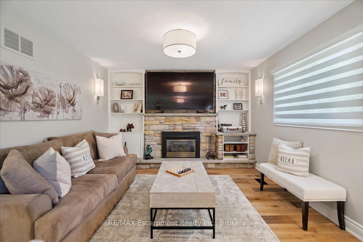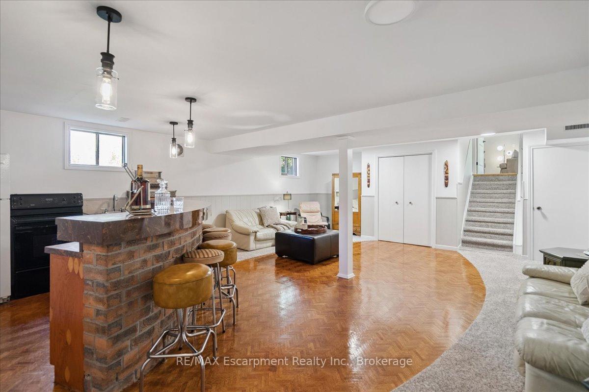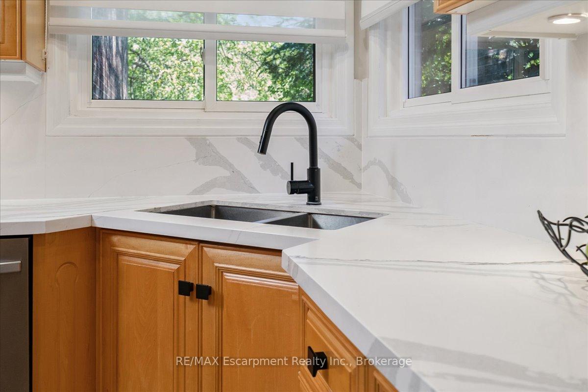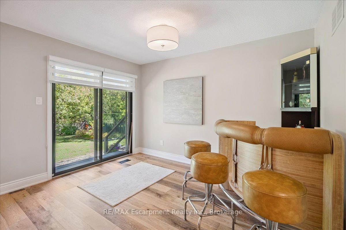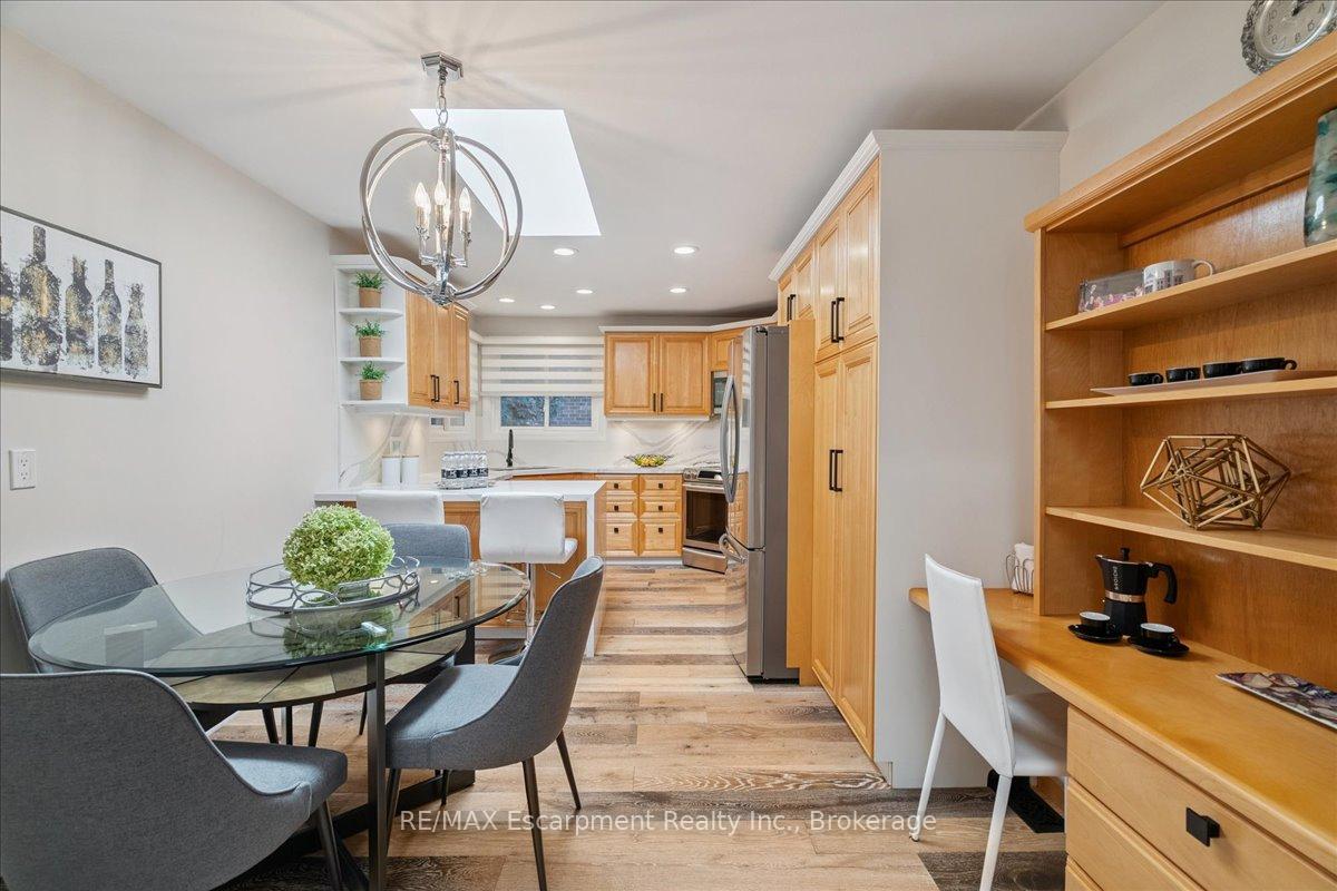 Step into the charm of this beautifully updated four-level backsplit, perfectly situated in the heart of Old Milton. This is where tranquility meets convenience, just a short walk to historic downtown, schools, trails, shopping and more! Backing onto the picturesque 16 Mile Creek and surrounded by lush forest, this home provides a serene retreat right in your own backyard. Inside, you’ll find app 3,300 total square feet of thoughtfully designed living space. The interior boasts a fabulous, functional layout with skylights, large windows, engineered hardwood flooring, and ample storage. The modern eat-in kitchen features sleek quartz counters and backsplash, stainless appliances, a built-in workstation, and stylish lighting. The open flow from the living to dining room is ideal for large gatherings, creating an inviting setting for unforgettable holiday celebrations! A few steps down, the family room is the heartbeat of the home, highlighted by a custom stone feature wall with a cozy gas fireplace, built-in bookshelves to showcase your cherished memories and direct access to the private, pool-sized yard – perfect for outdoor relaxation! This level also includes a fourth bedroom that can easily be used as a den, and ideal for in-laws or a nanny. Additional features include a powder room, laundry room, bonus flex room and access to the side yard. On the upper level, three spacious bedrooms await, including the primary with a private four-piece ensuite and balcony that overlooks stunning natural views… indeed, a tranquil spot to start or end your day. With a total of four bedrooms, four bathrooms, including a versatile den/office, this home offers ample space for family life and remote work. The finished lower level features a custom built 15′ bar, a cedar sauna, a cantina for your preserves and wine, a large crawl space and a 3-piece bath. All this to offer and located on one of the most desireable enclaves in town, this is a rare find and your dream come true!